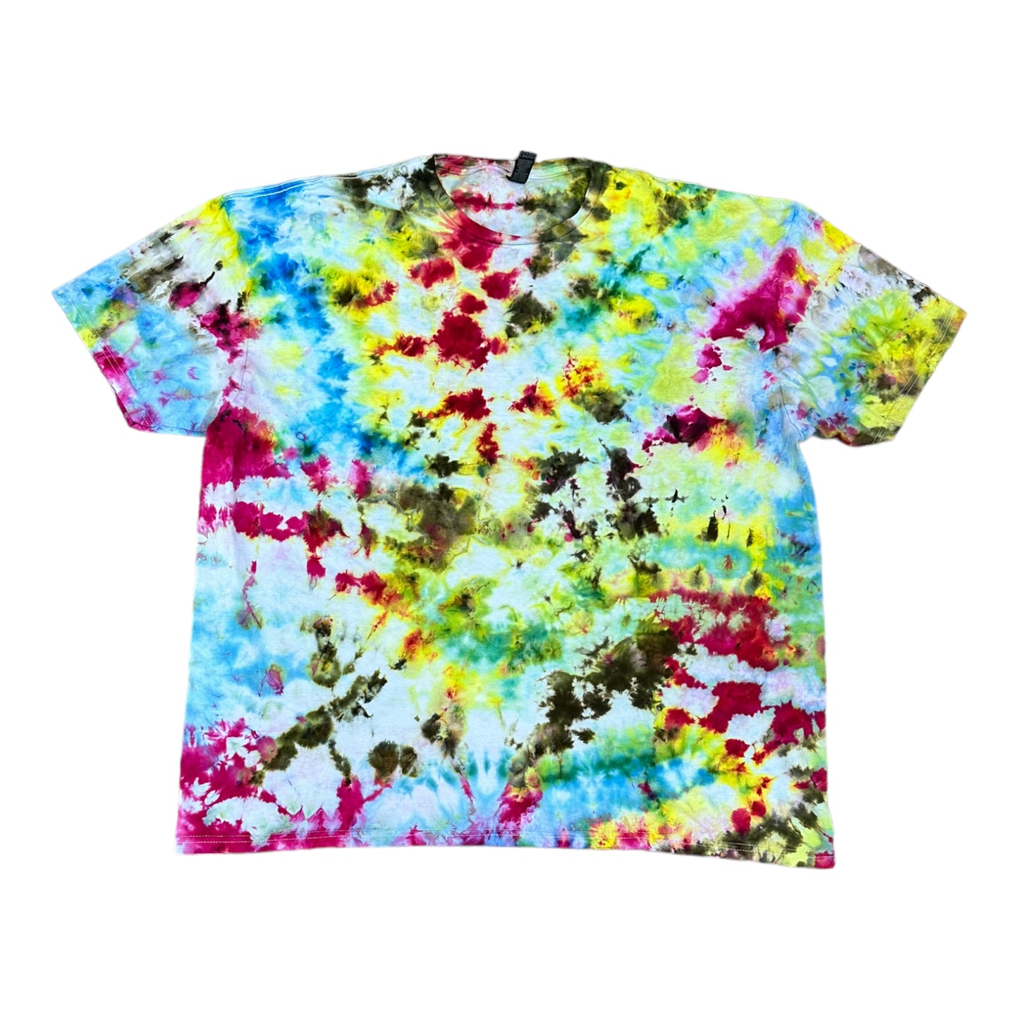 Adult 3XL Yellow Purple Blue and Green Scrunch Ice Dye Tie Dye Shirt