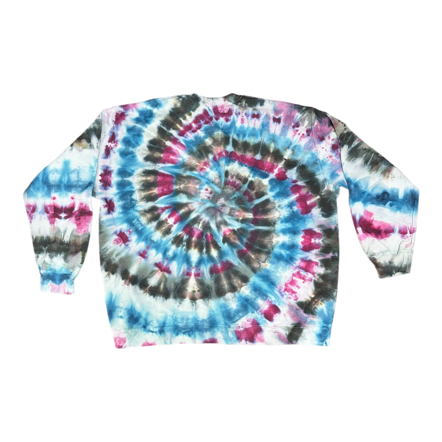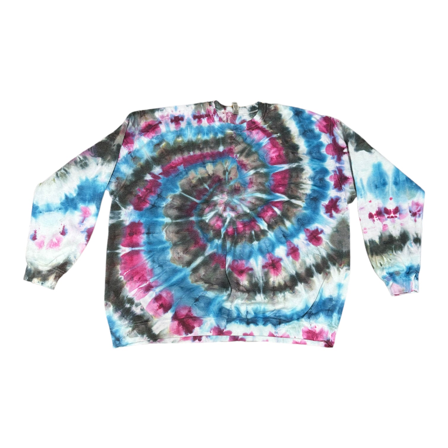 Adult 4XL Blue Purple and Black Spiral Ice Dye Tie Dye Crewneck Sweater