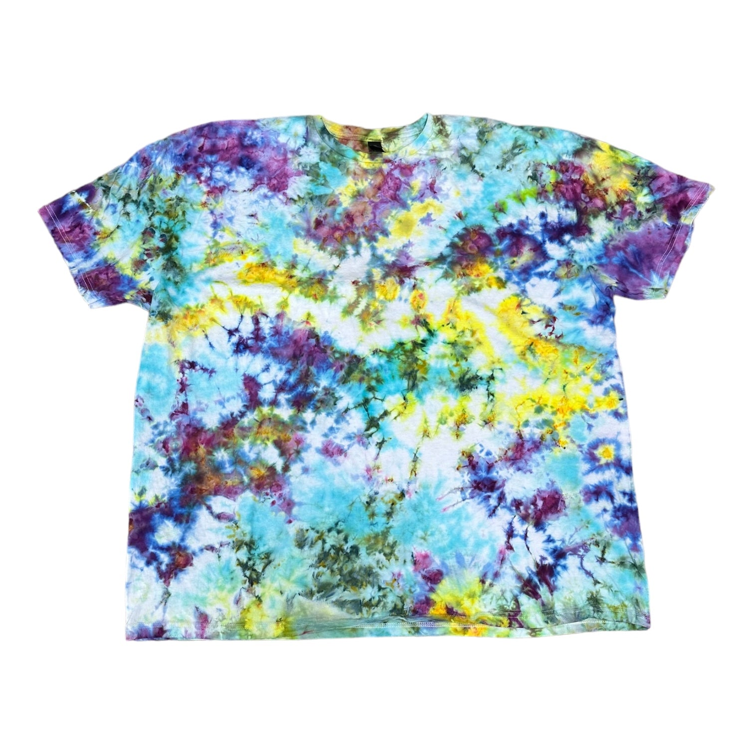 Adult 4XL Purple Aqua Blue and Yellow Scrunch Ice Dye Tie Dye Shirt