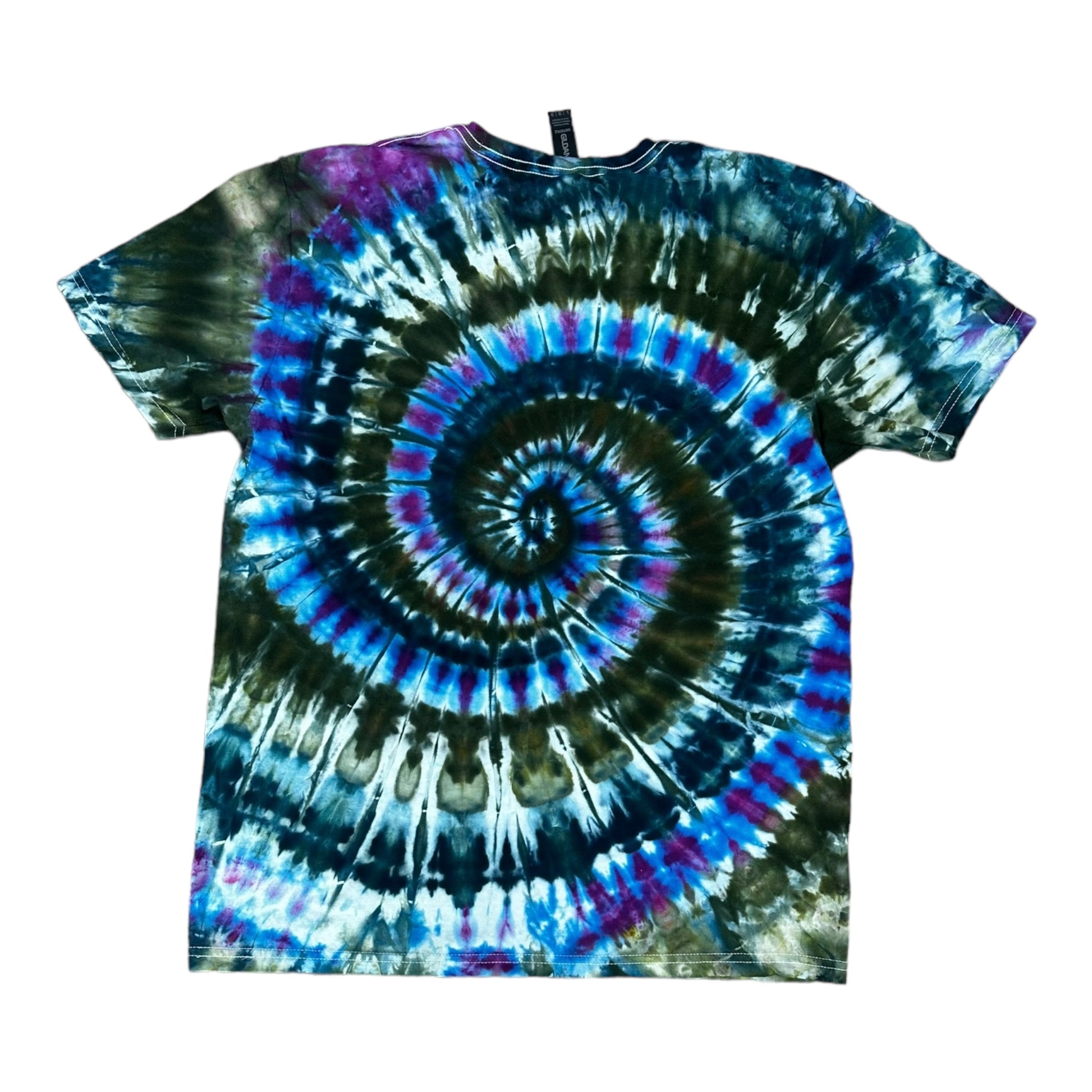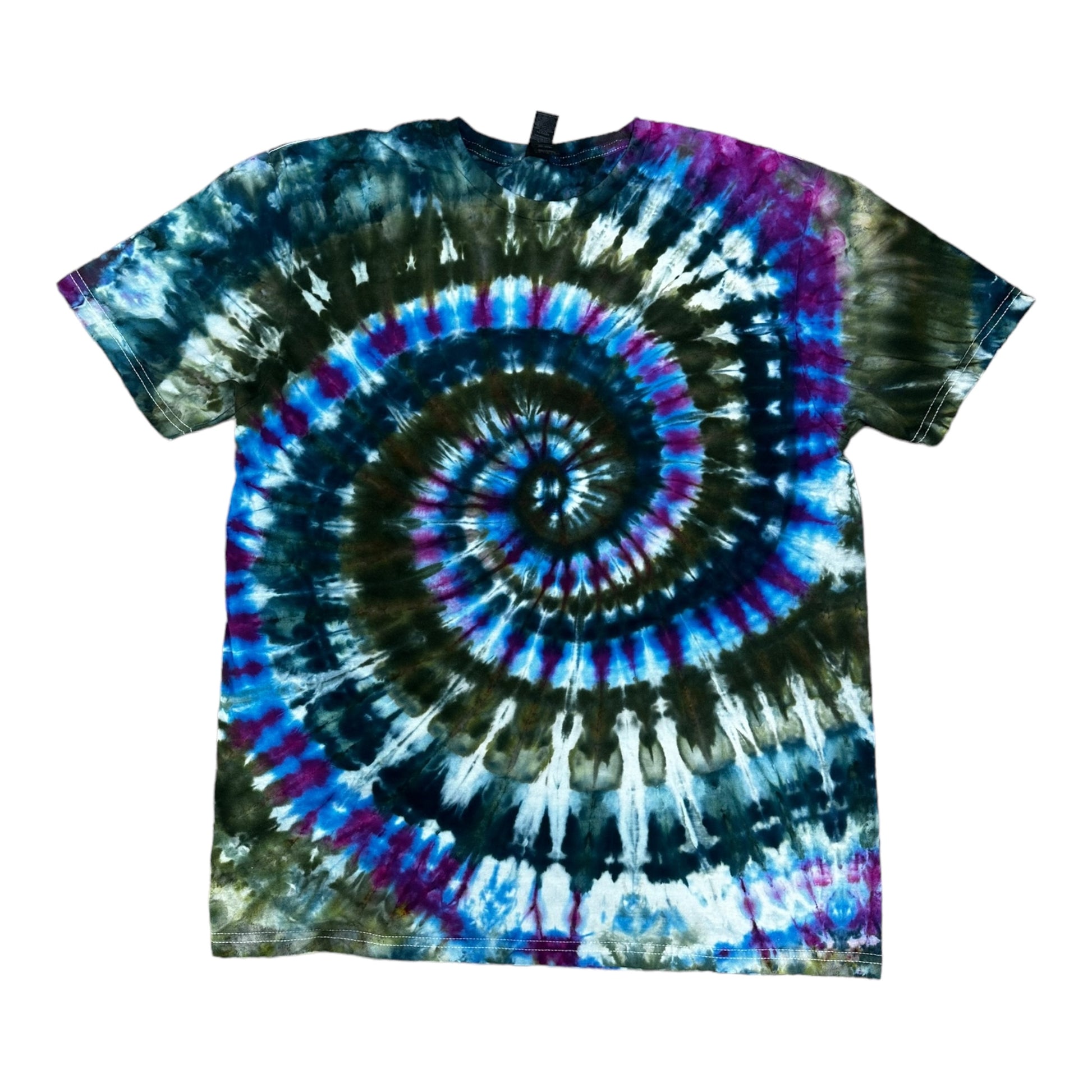 Adult Large Blue Purple and Green Spiral Ice Dye Tie Dye Shirt
