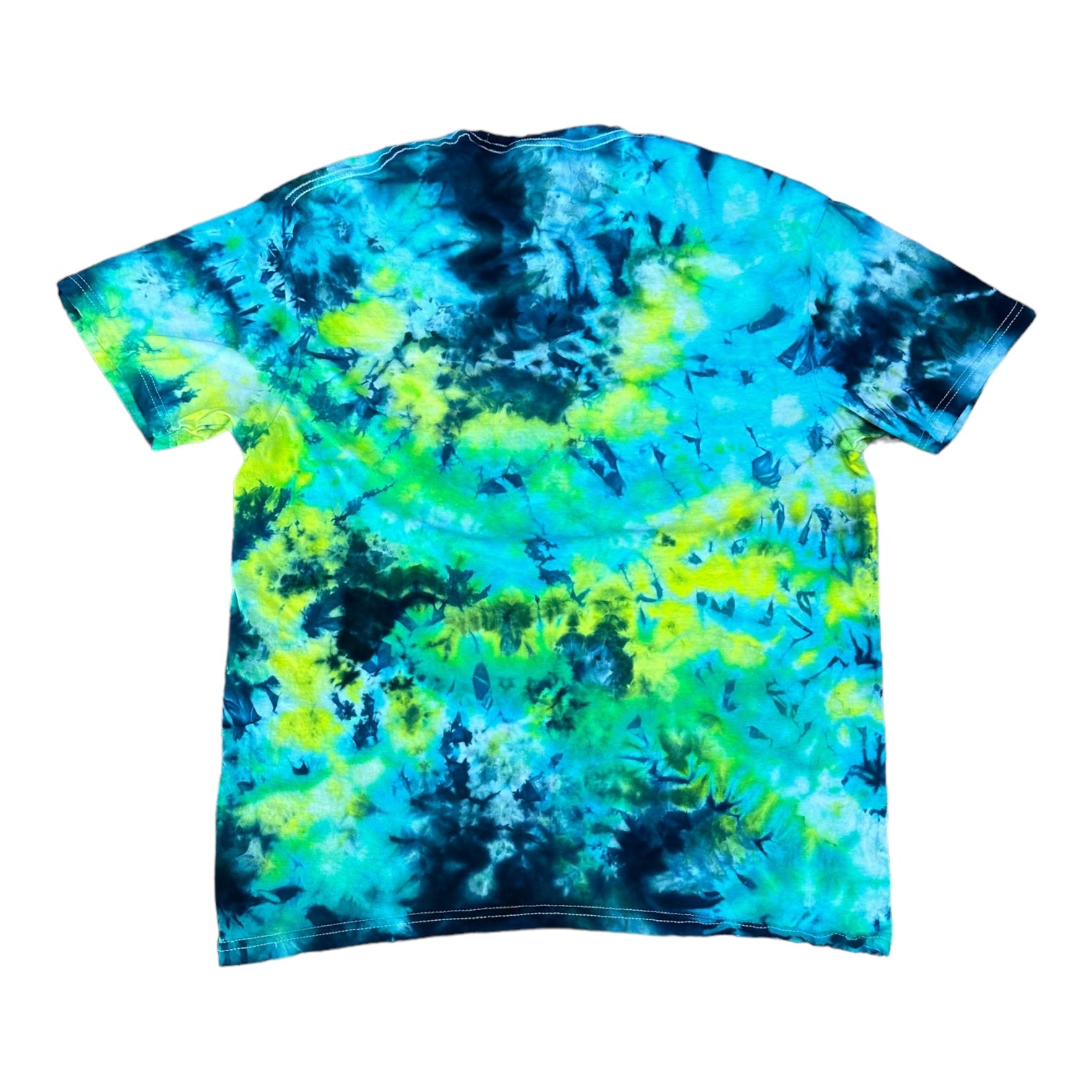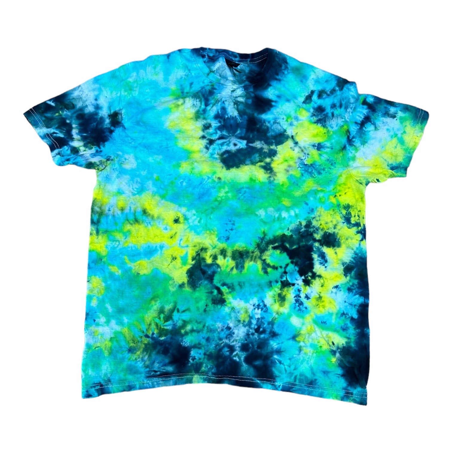 Adult Large Blue Black and Yellow Green Scrunch Ice Dye Tie Dye Shirt