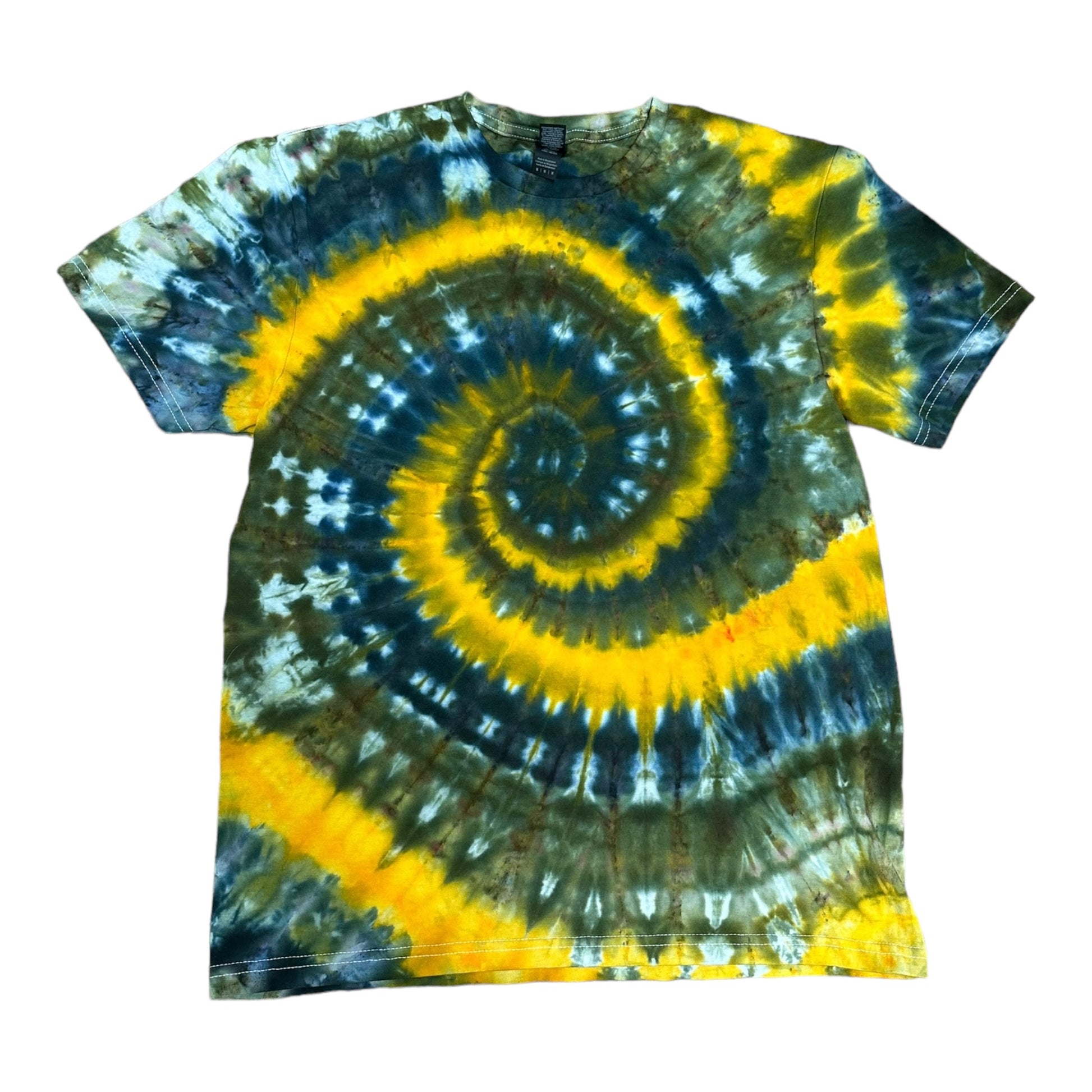 Adult Medium Yellow Blue and Green Spiral Ice Dye Tie Dye Shirt