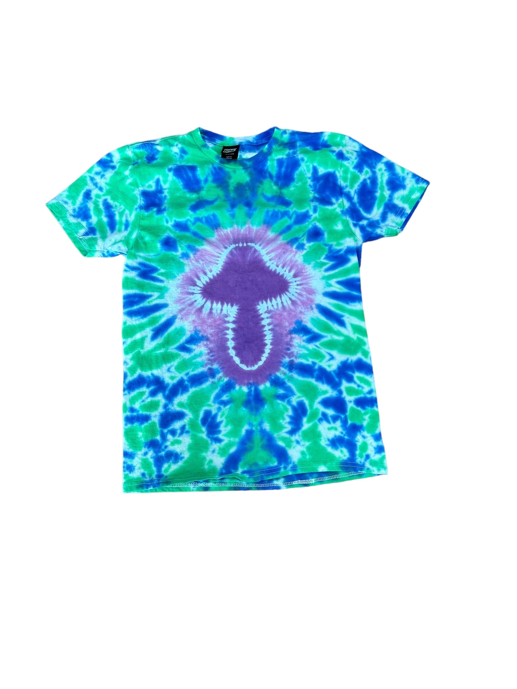 Adult Small Blue Green and Purple Mushroom Tie Dye Shirt
