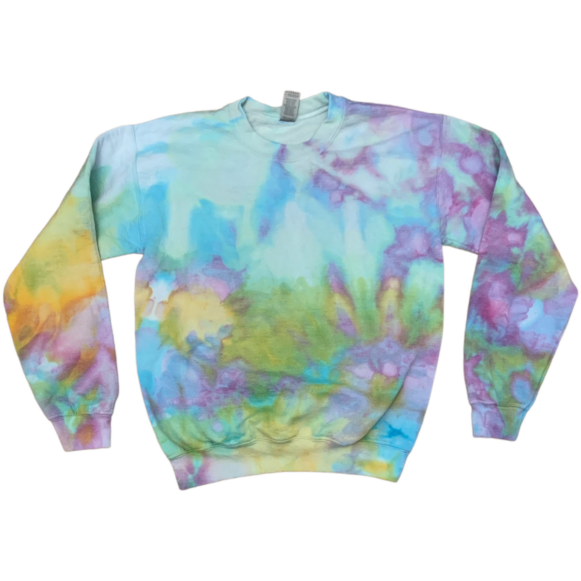 Adult Small Pastel Light Blue Mint Yellow Green Purple Scrunch Ice Tie Dye Crewneck Sweater
