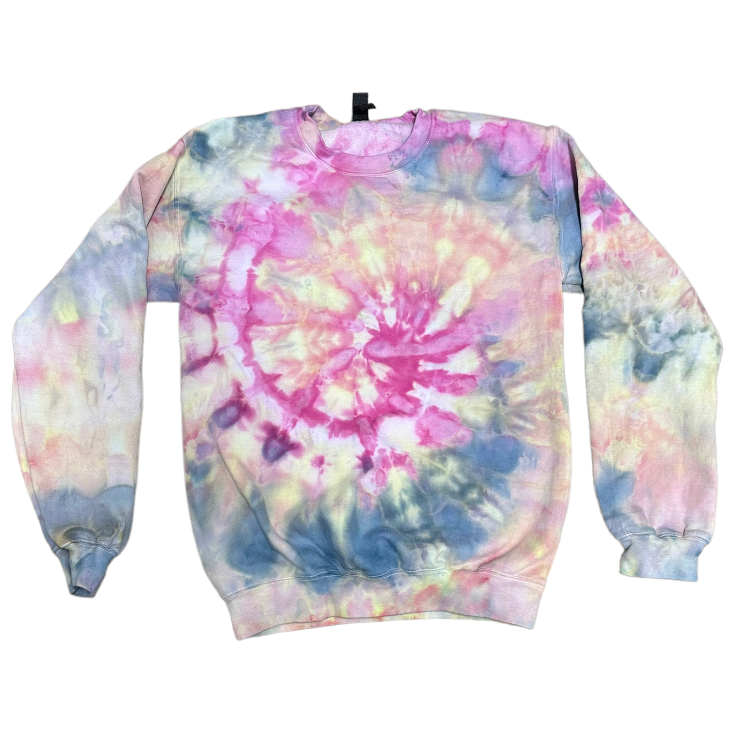 Adult Small Peach Yellow Forest Green Fuschia Spiral Ice Tie Dye Crewneck Sweater