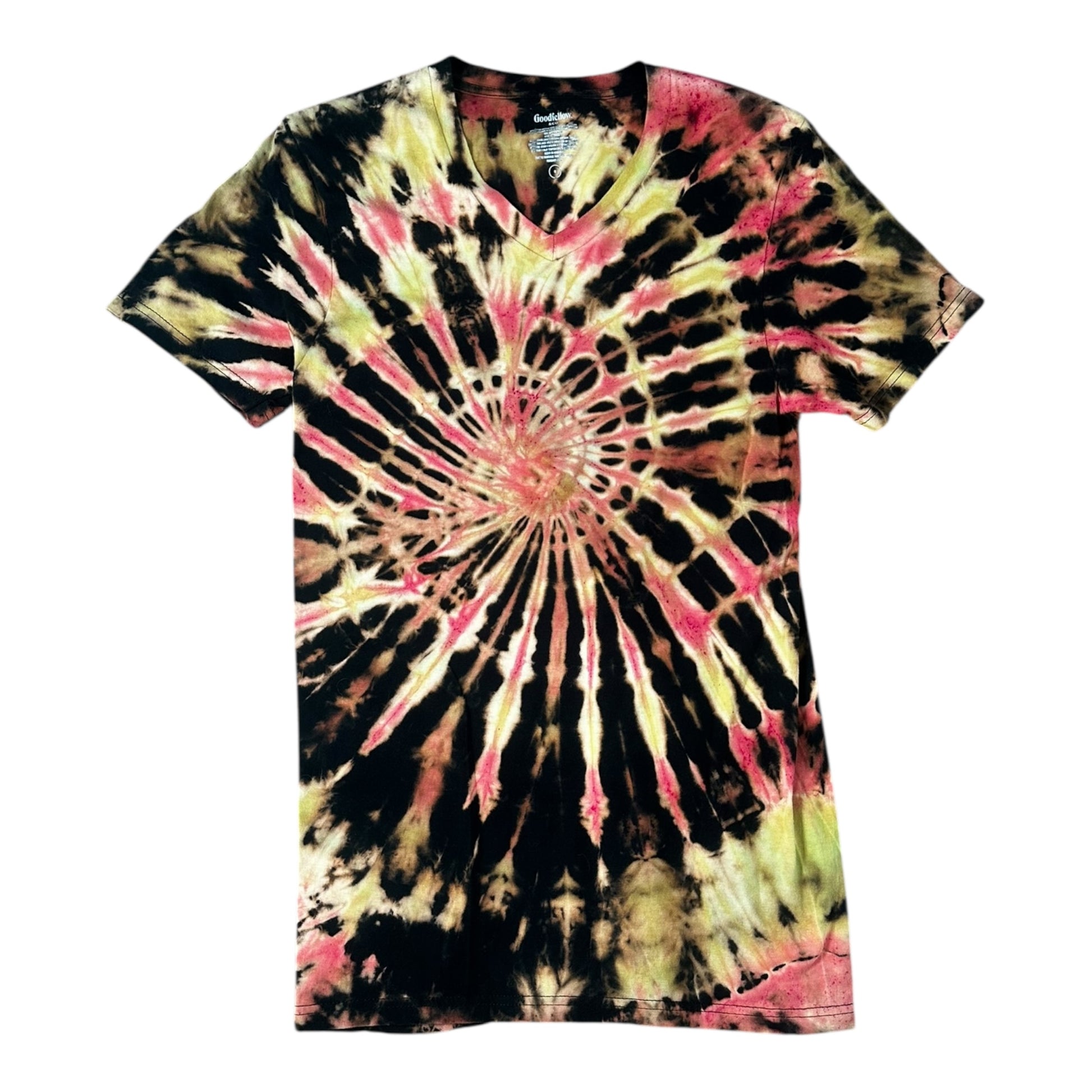 Adult Small Yellow and Red Spiral Reverse Dye Tie Dye Shirt