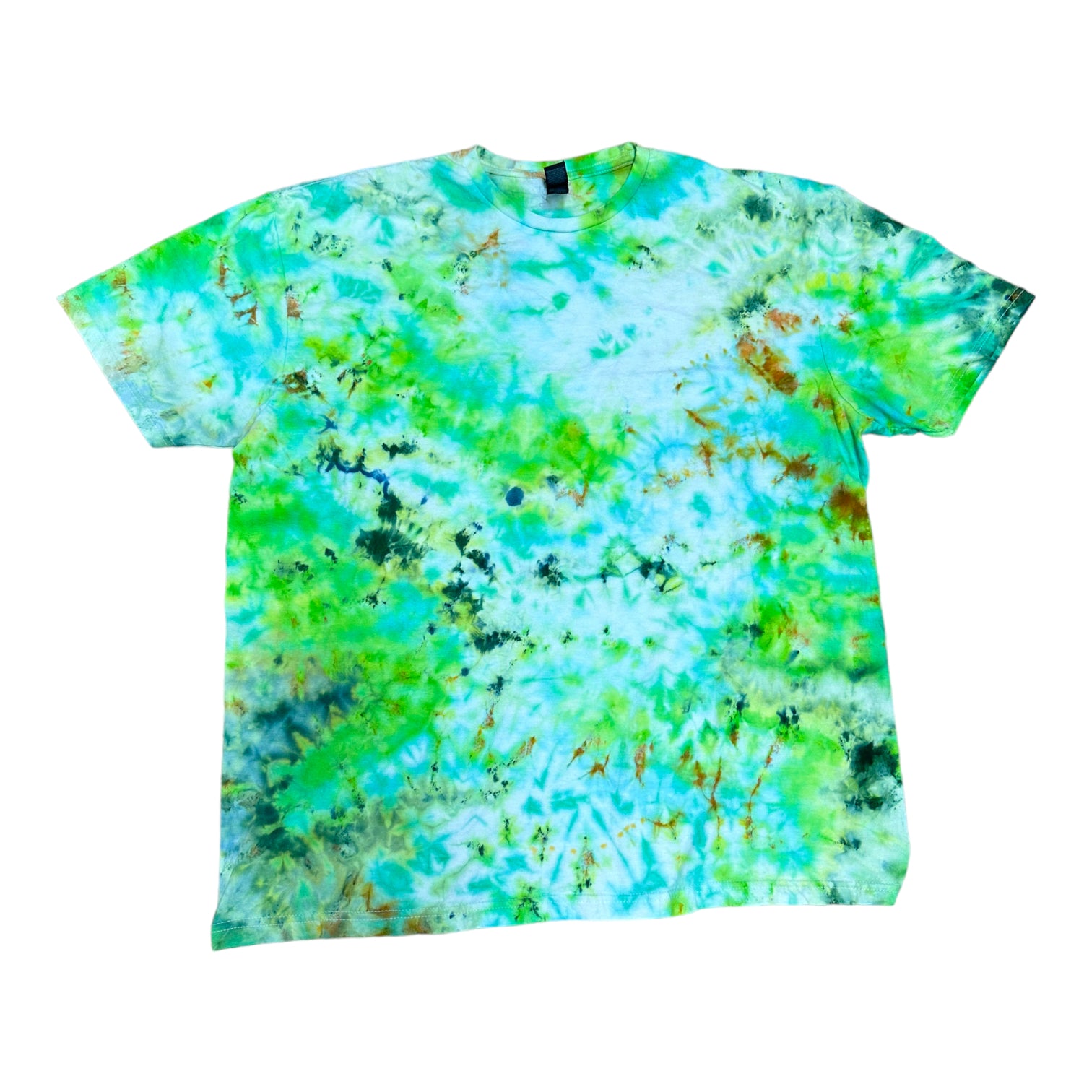 Adult XL Golden Yellow Green and Blue Scrunch Ice Dye Tie Dye Shirt