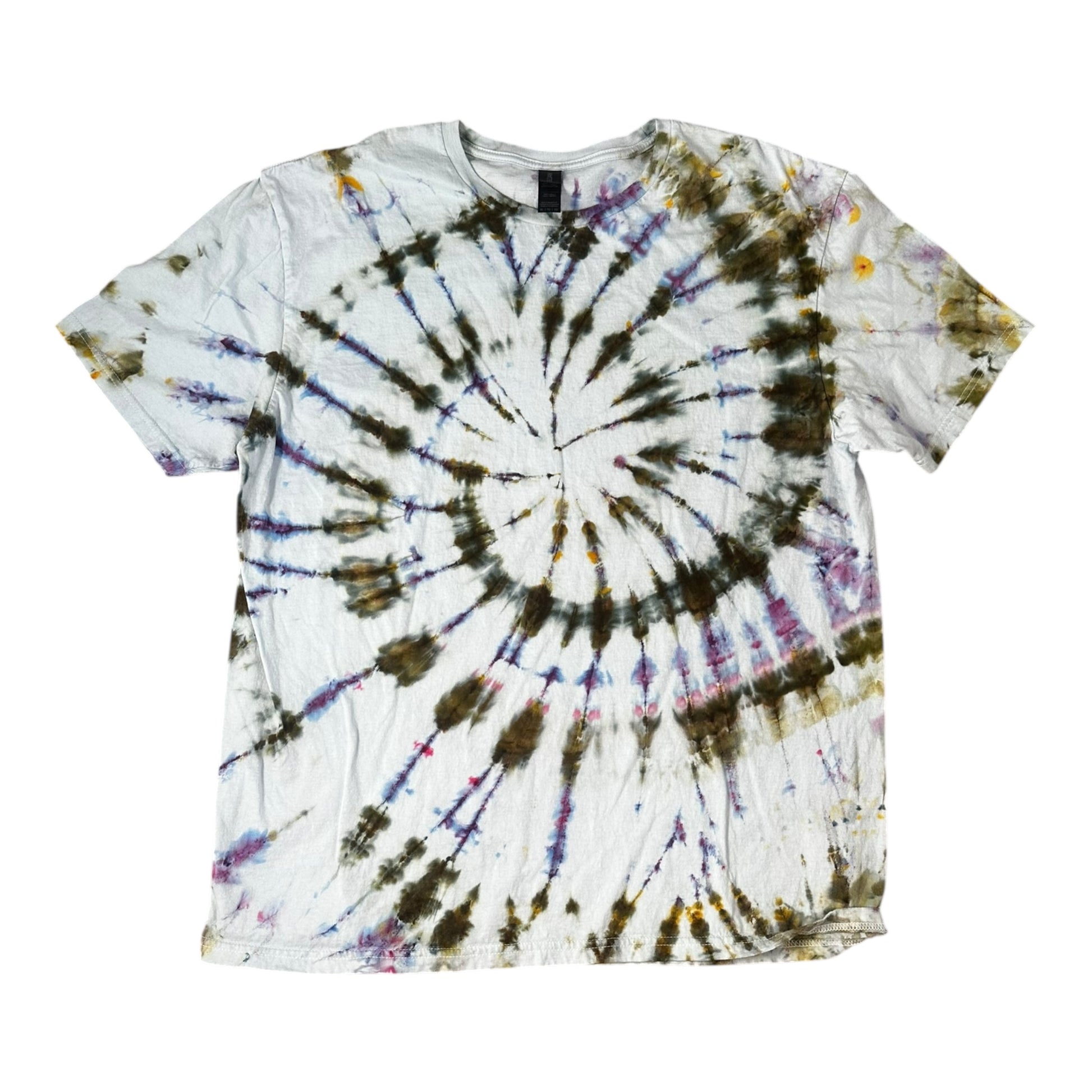 Adult XL Purple Blue Green and Gray Spiral Ice Dye Tie Dye Shirt