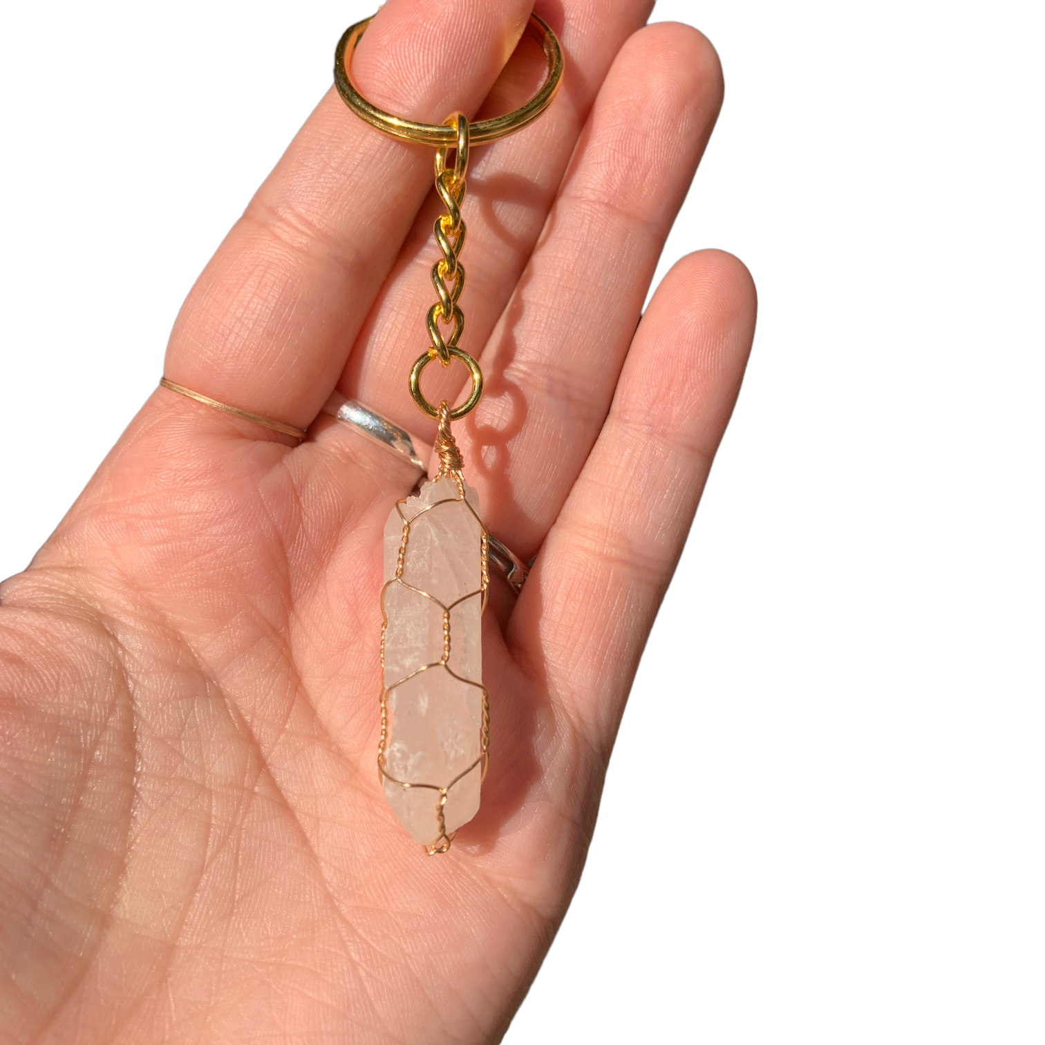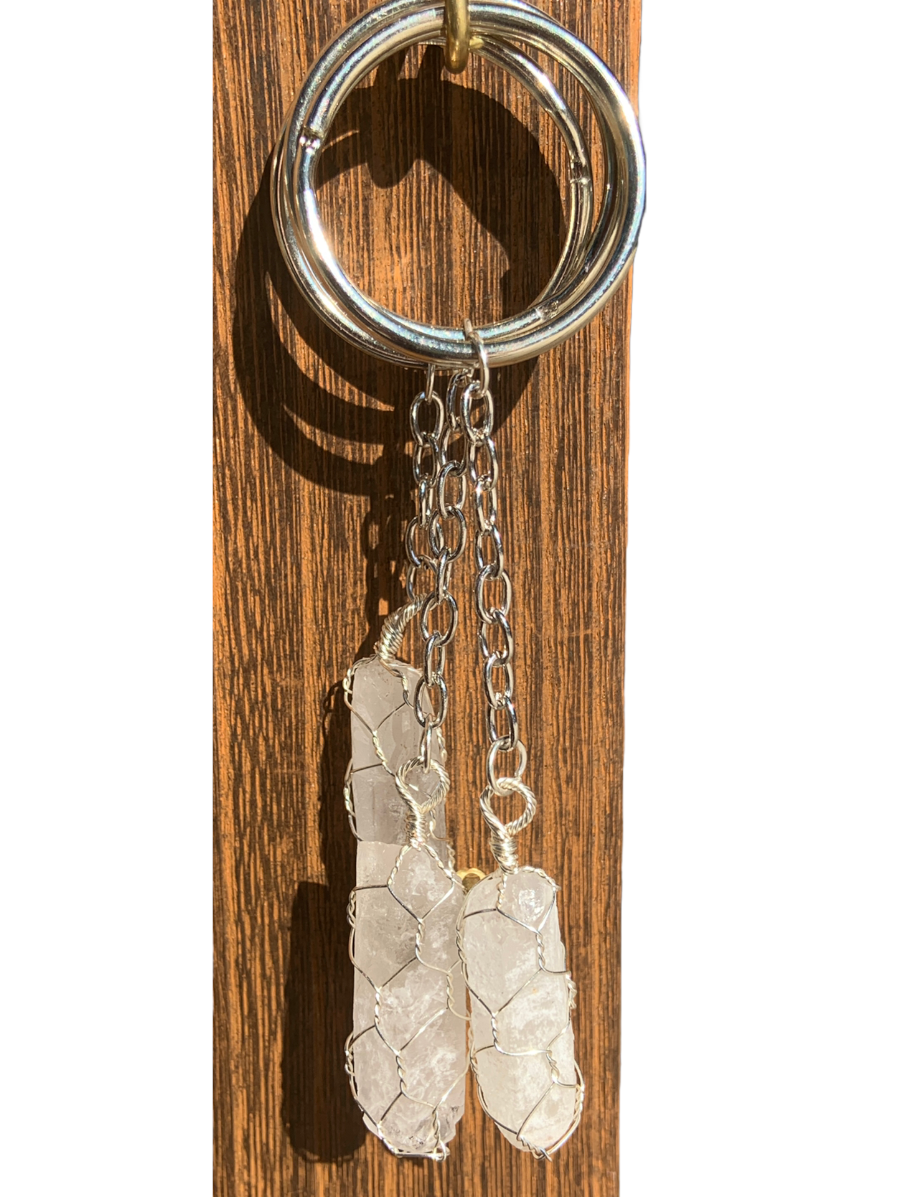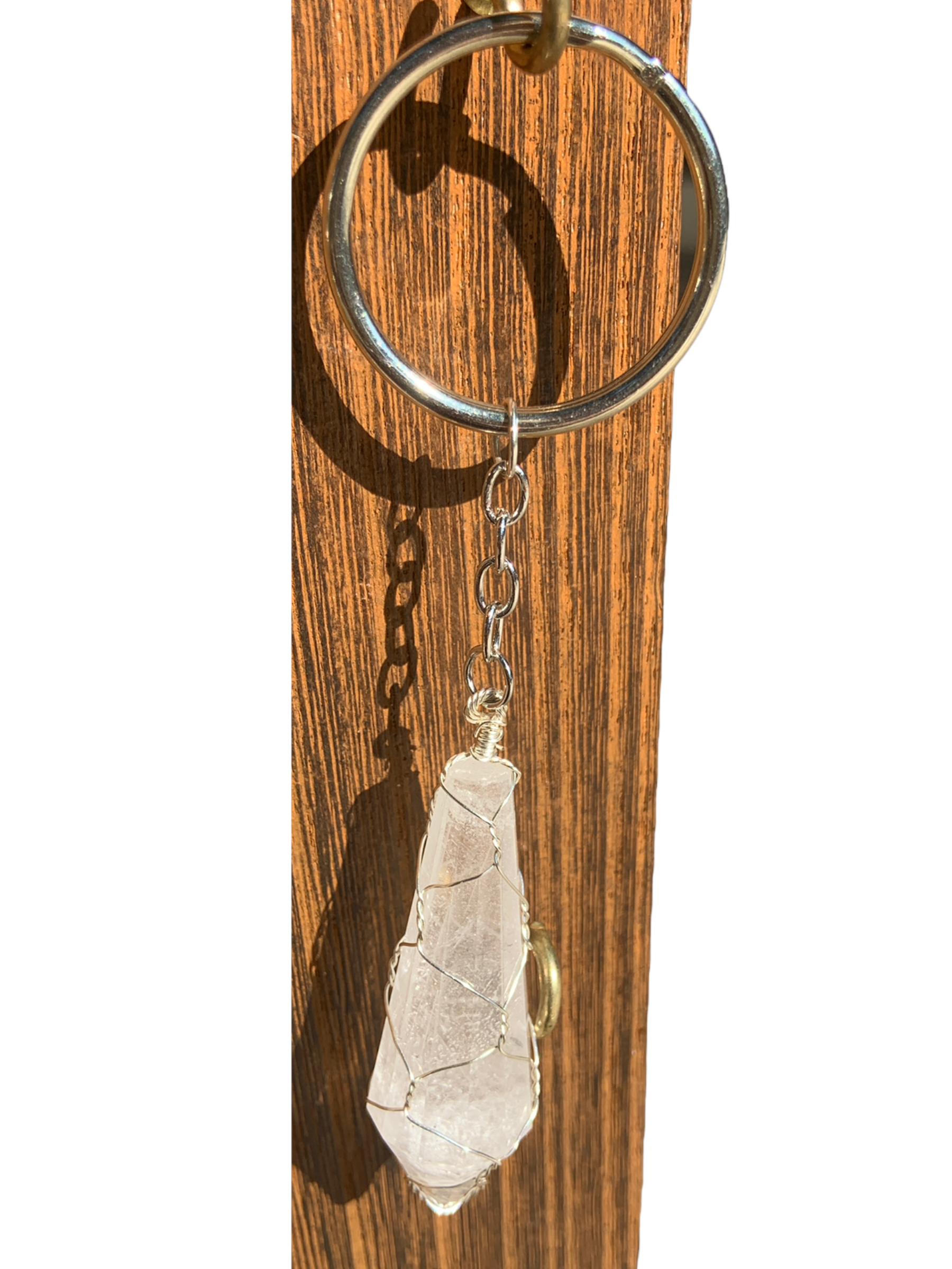 Clear Quartz Caged Wire Wrapped Crystal Keychain