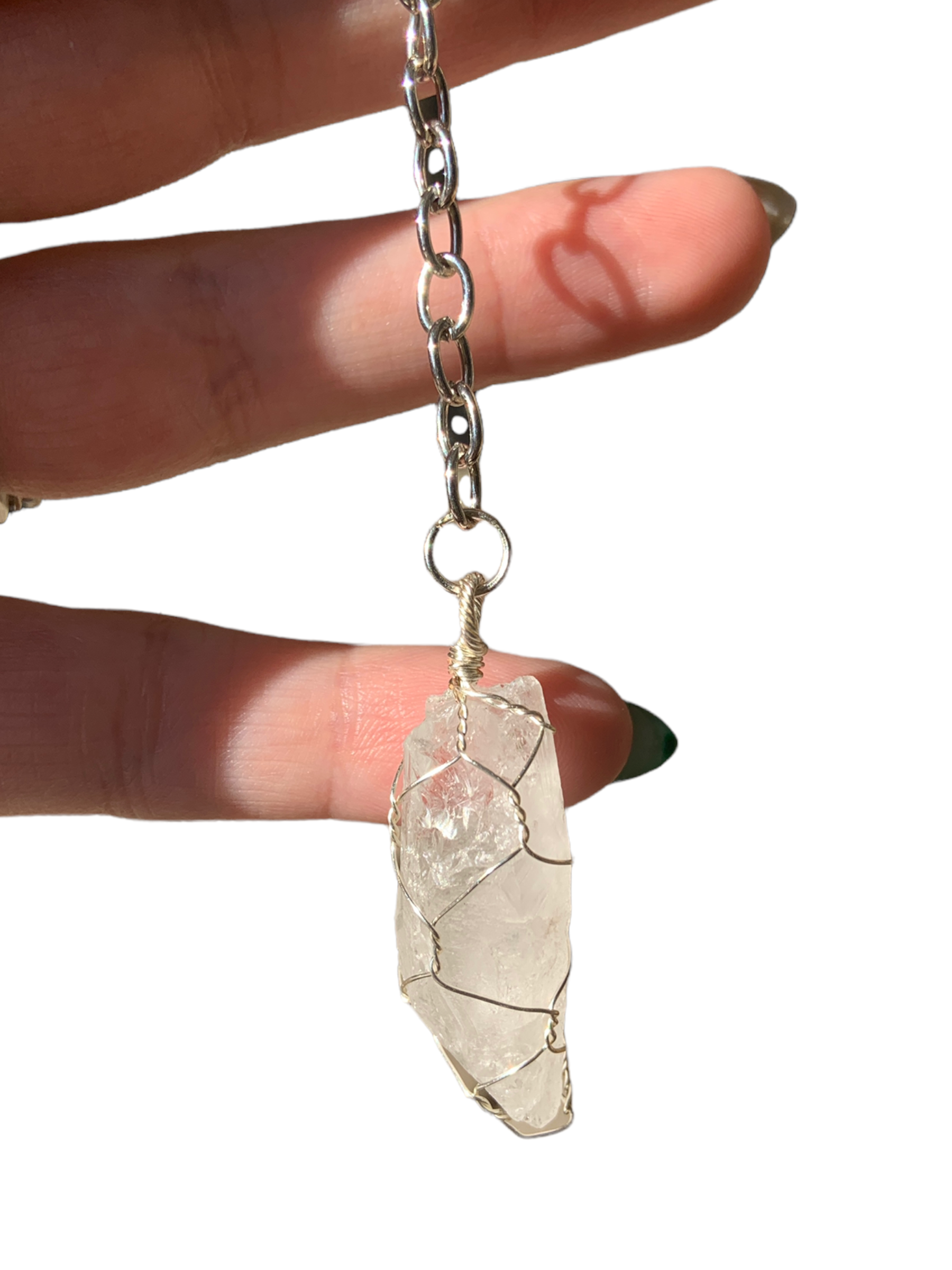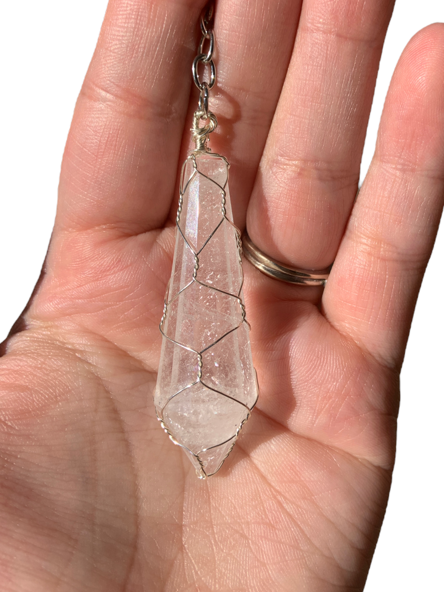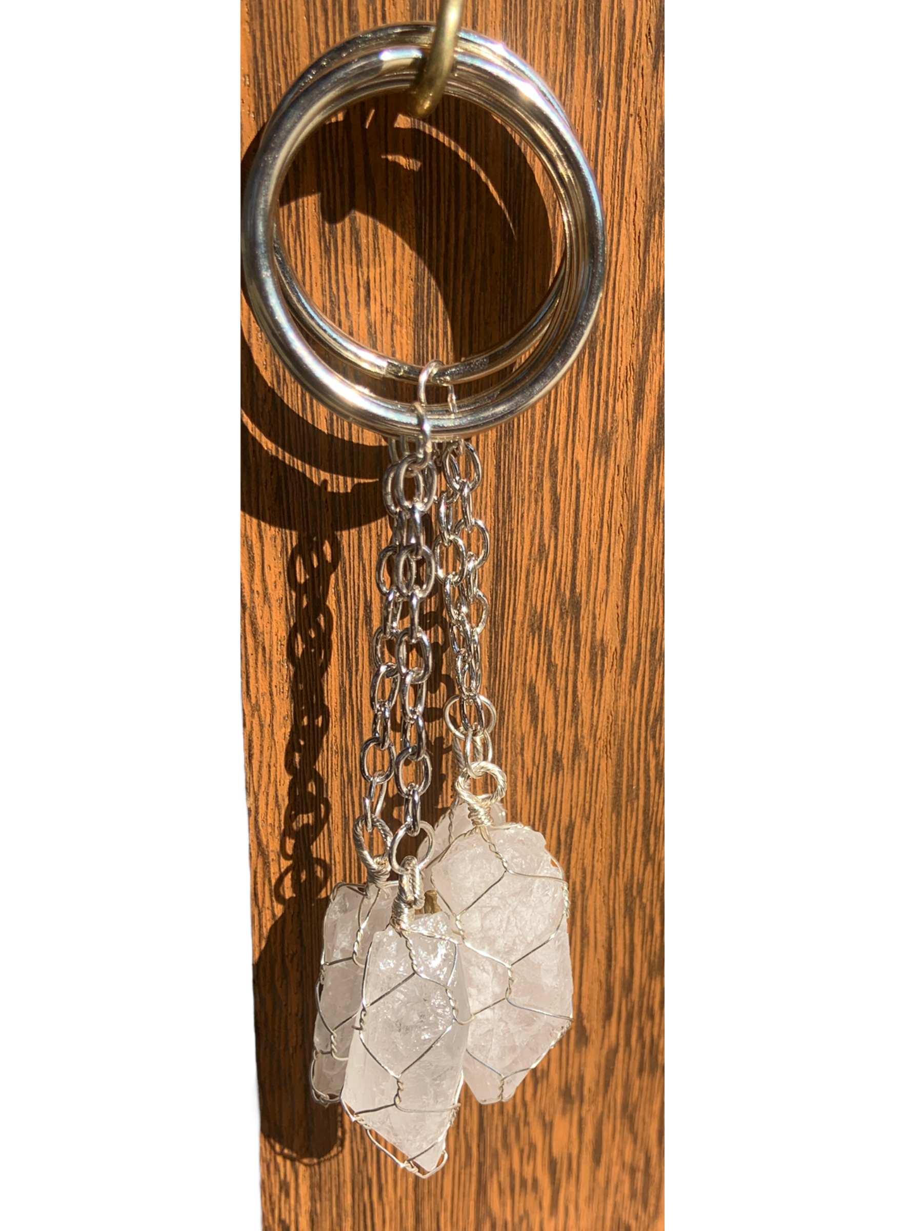 Clear Quartz Caged Wire Wrapped Crystal Keychain