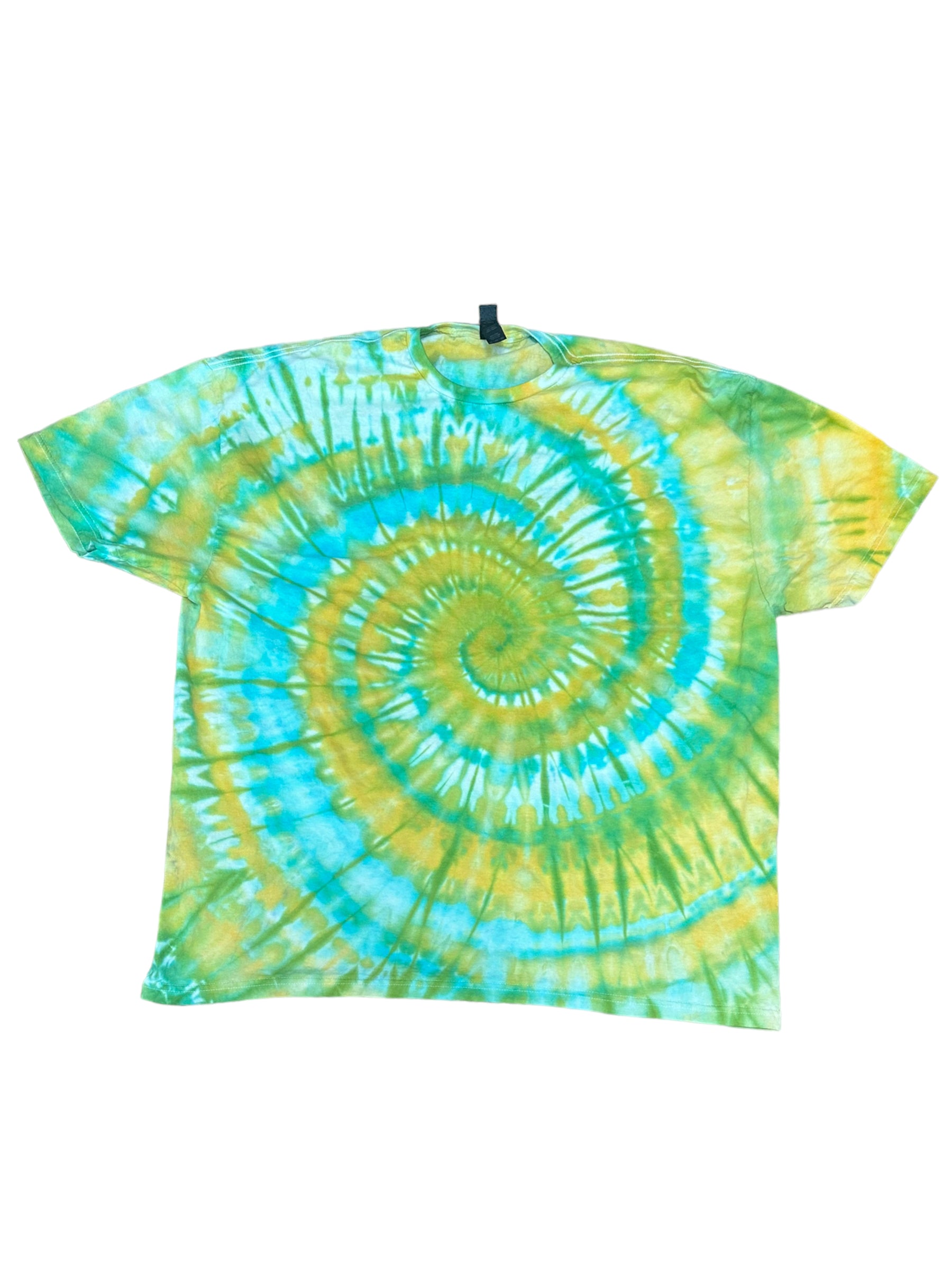 Adult 3XL Blue Green and Yellow Spiral Ice Dye Tie Dye Shirt