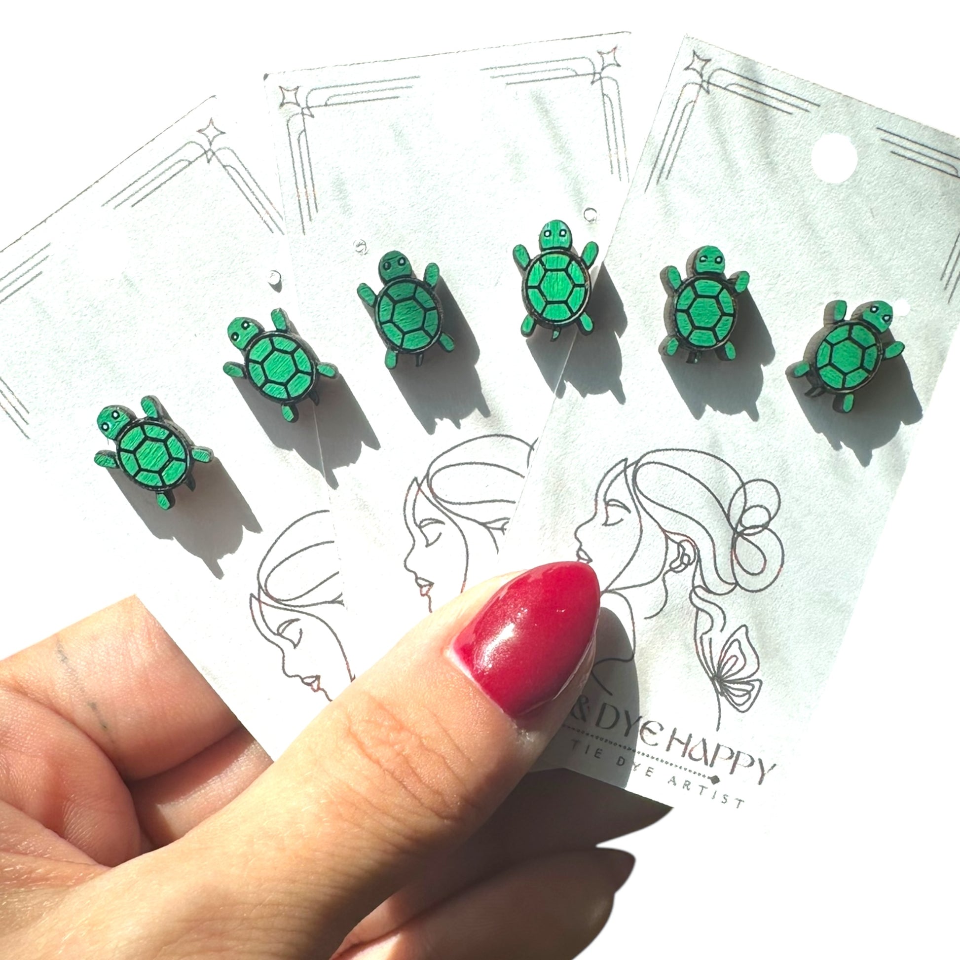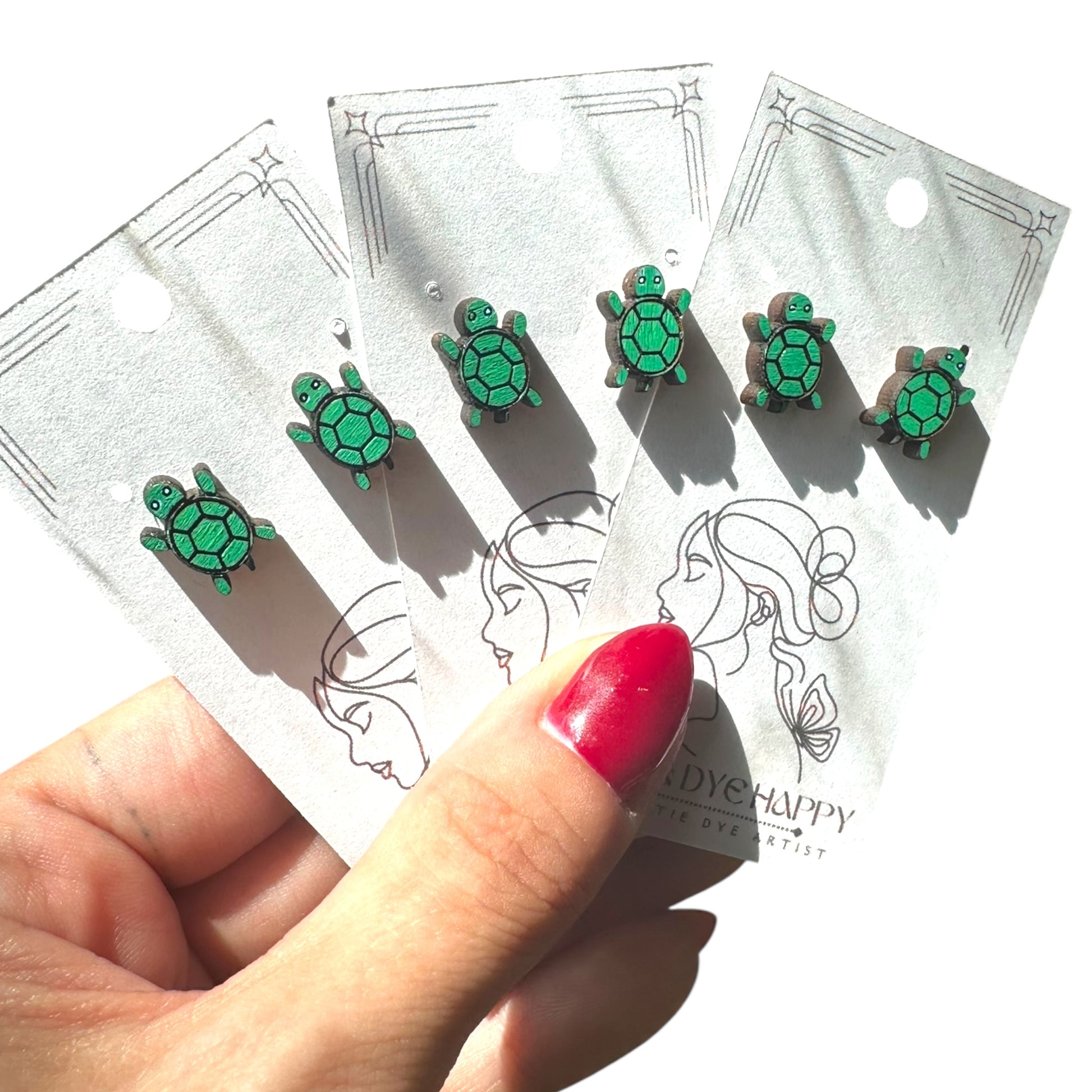 Hypoallergenic Hand Painted Turtle Laser Engraved Wood Earrings