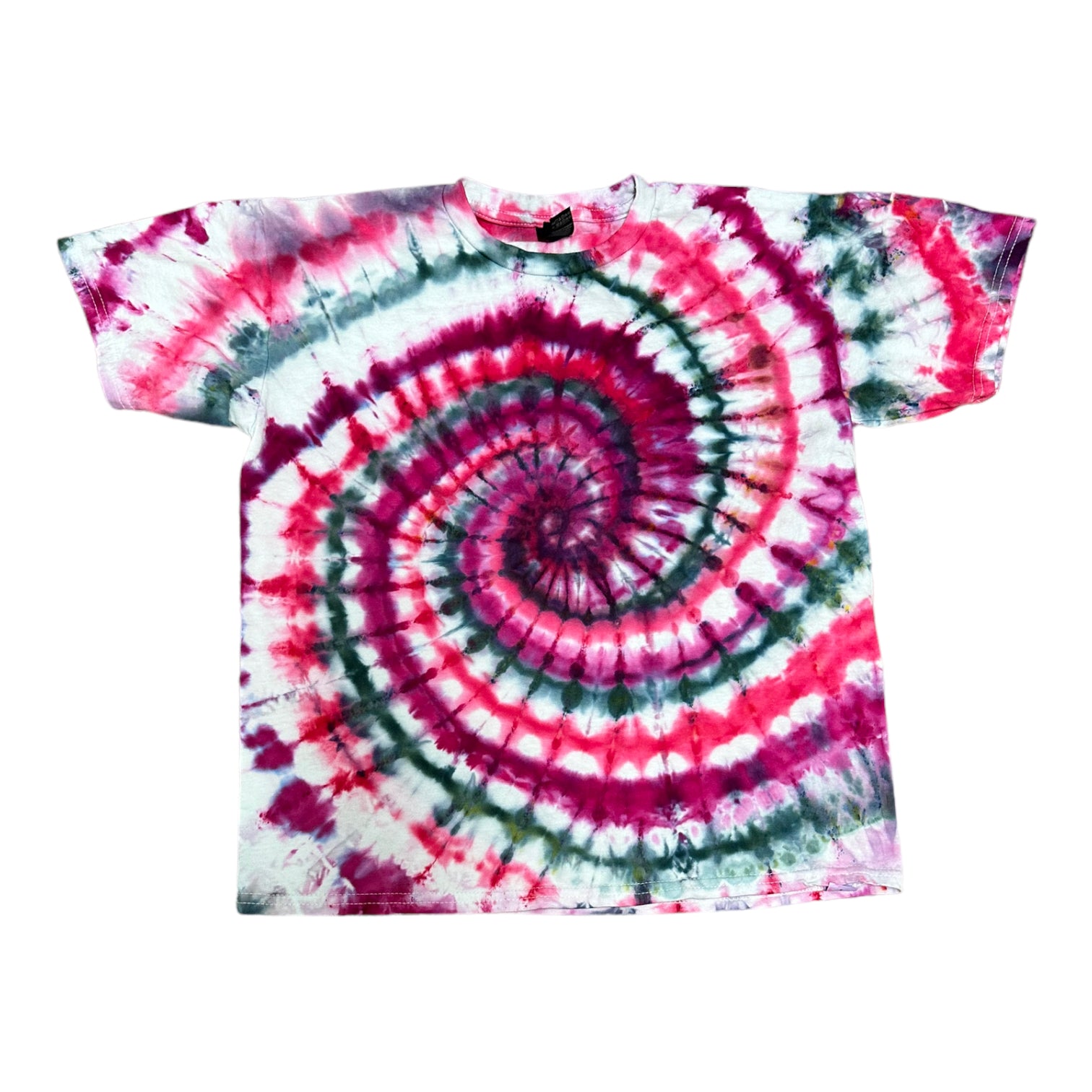 Youth Large Pink and Black Spiral Ice Dye Tie Dye Shirt