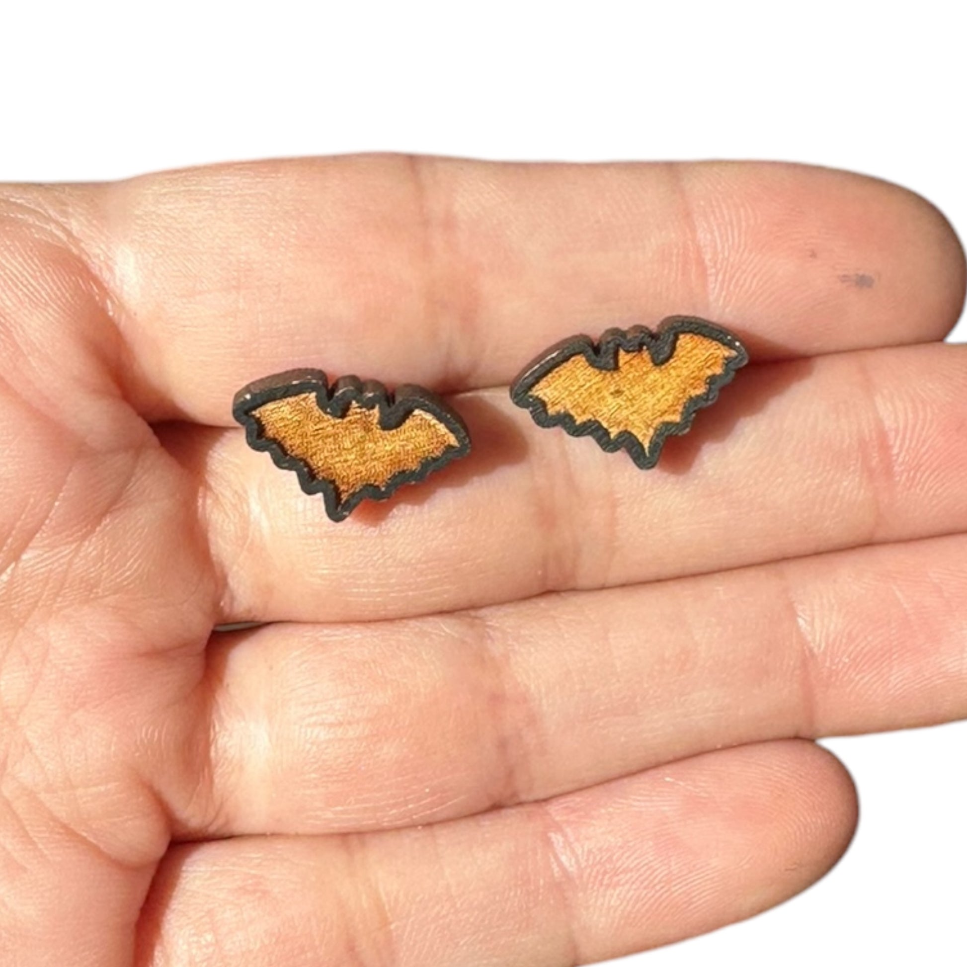 Hypoallergenic Halloween Bats Laser Engraved Wood Earrings