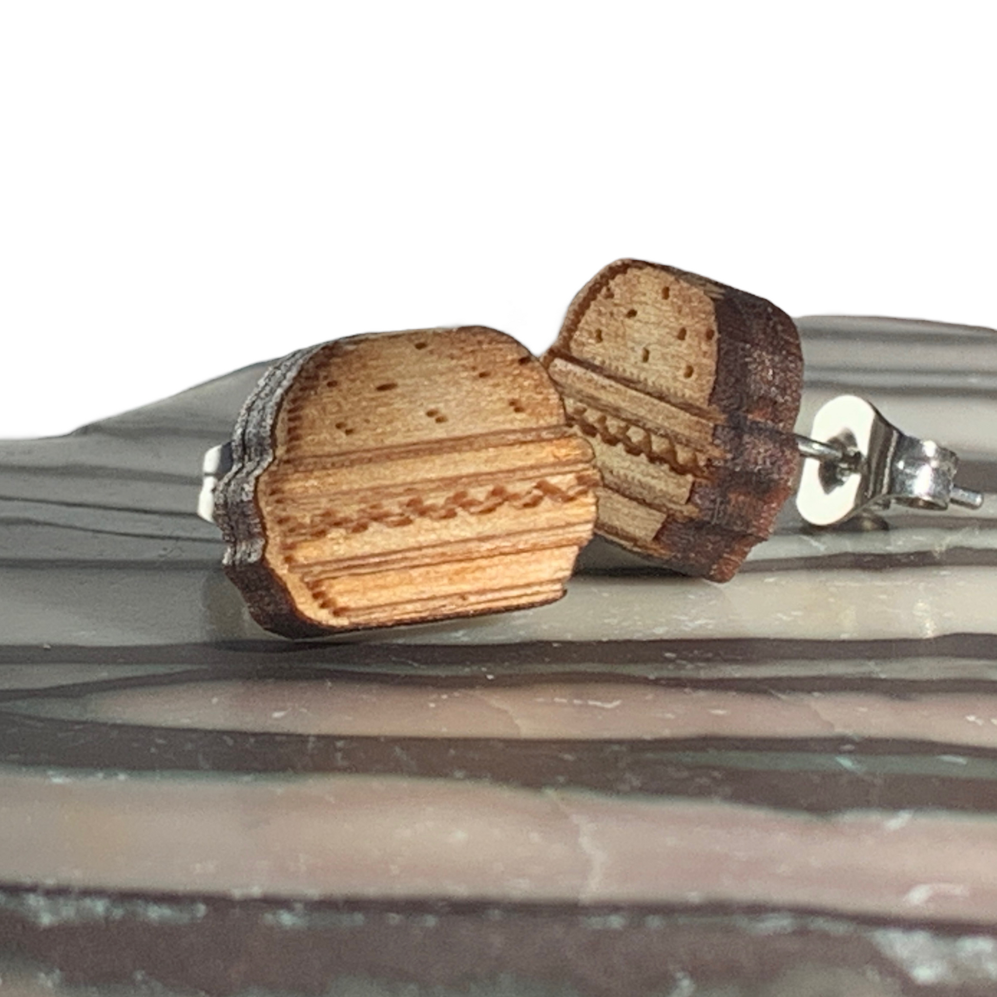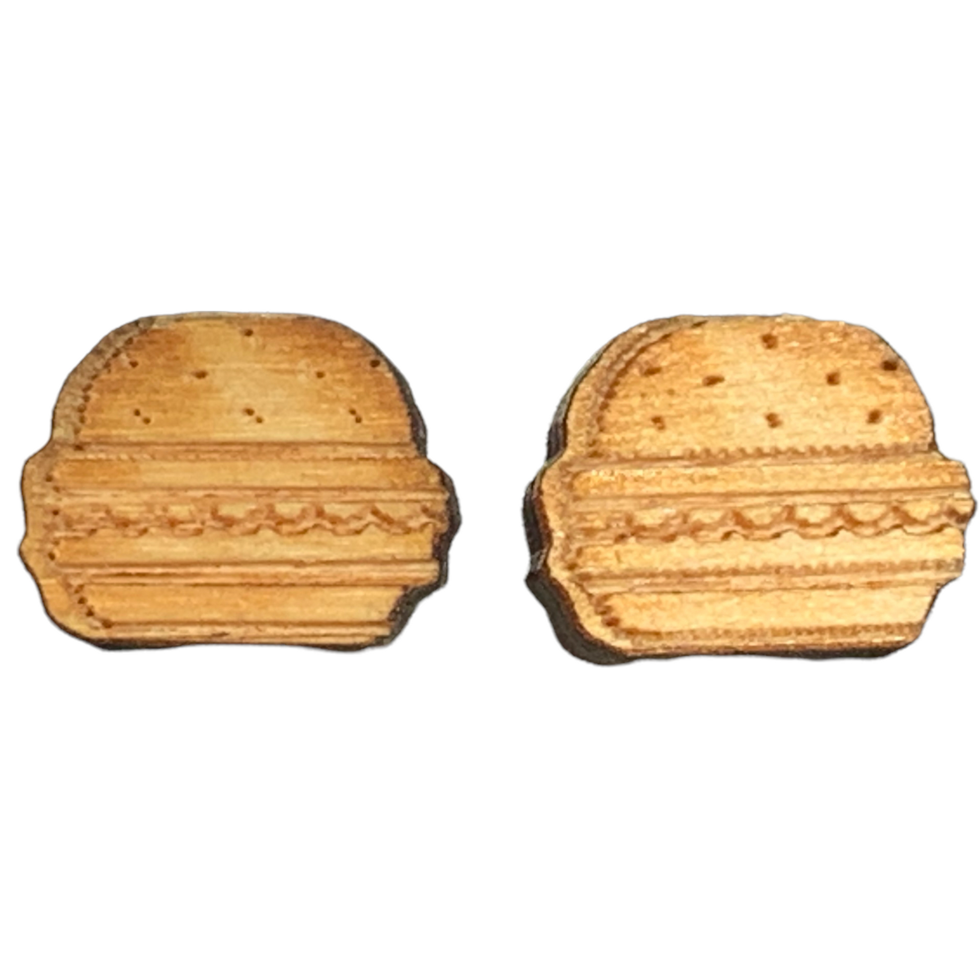 Hypoallergenic Hamburger Laser Engraved Wood Earrings