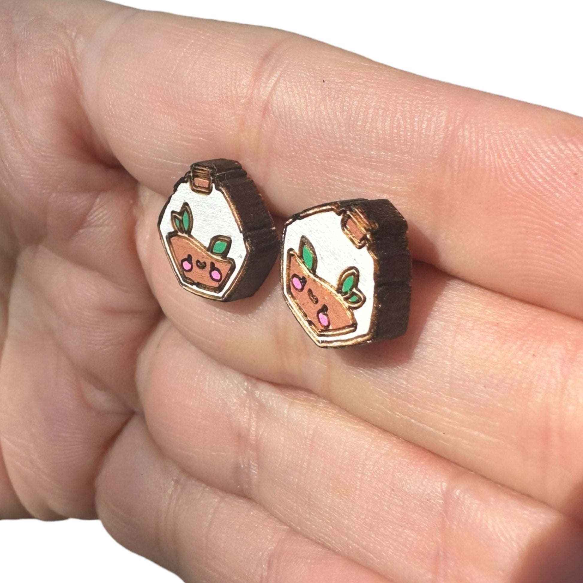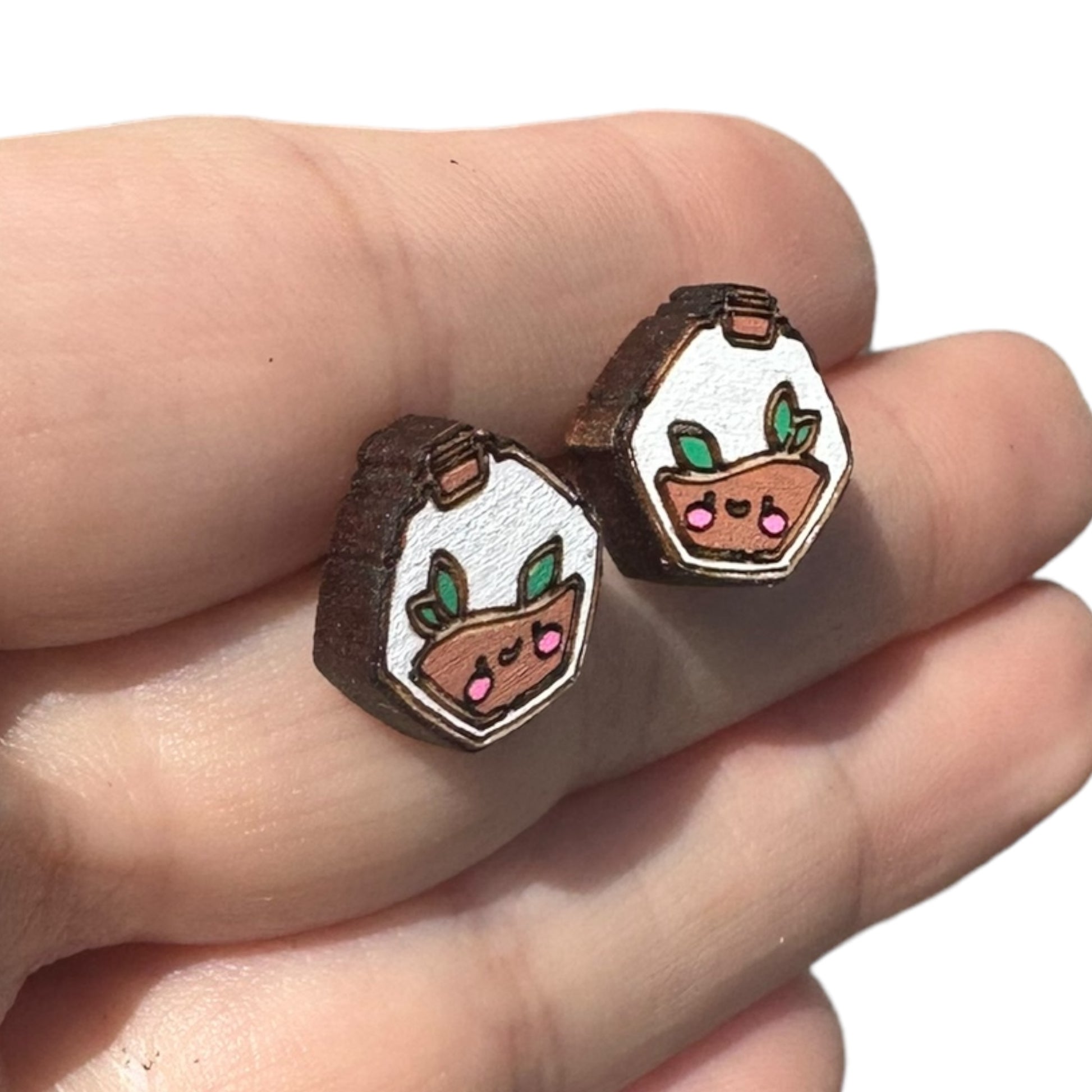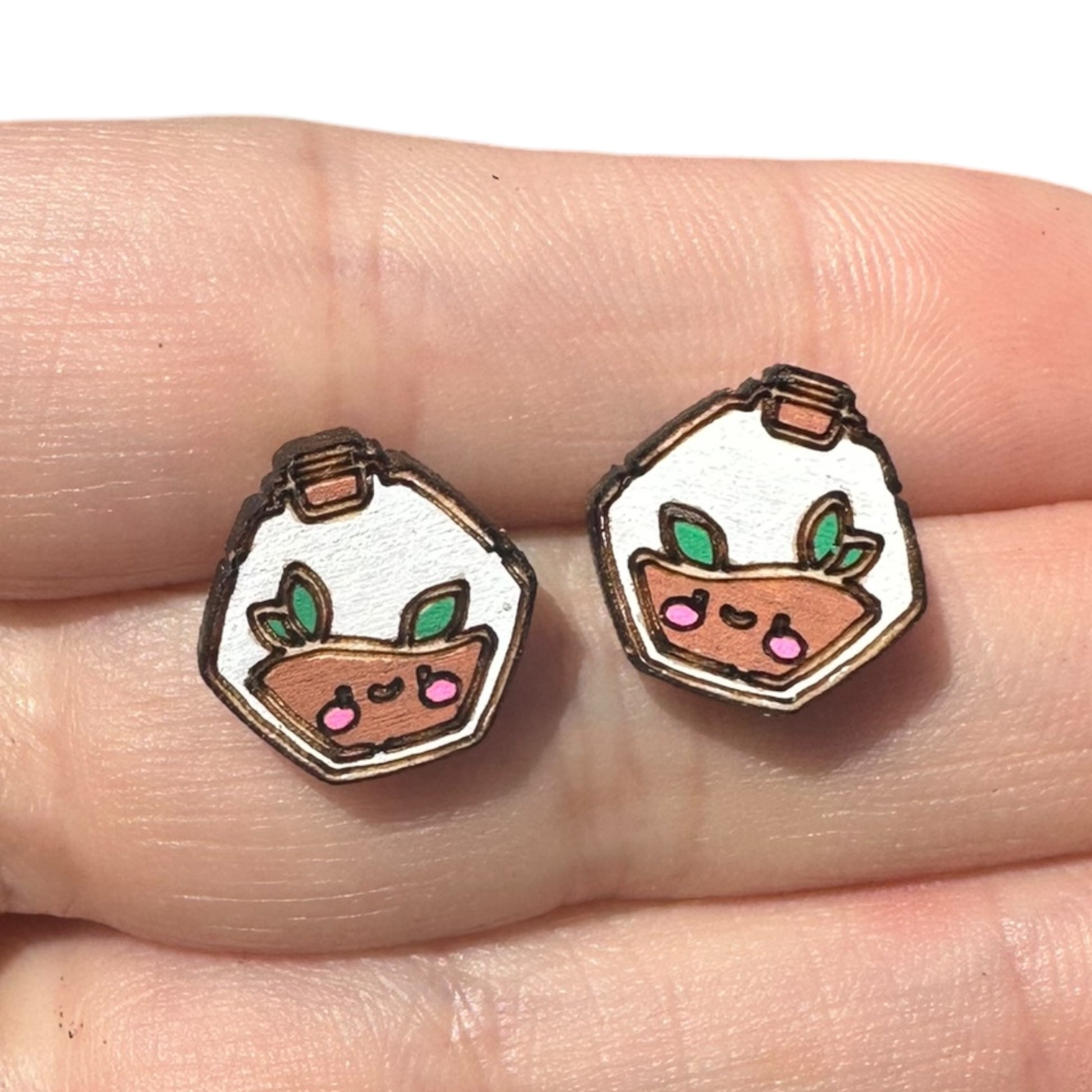 Hypoallergenic Hand Painted Air Plant Terrarium Laser Engraved Wood Stud Earrings