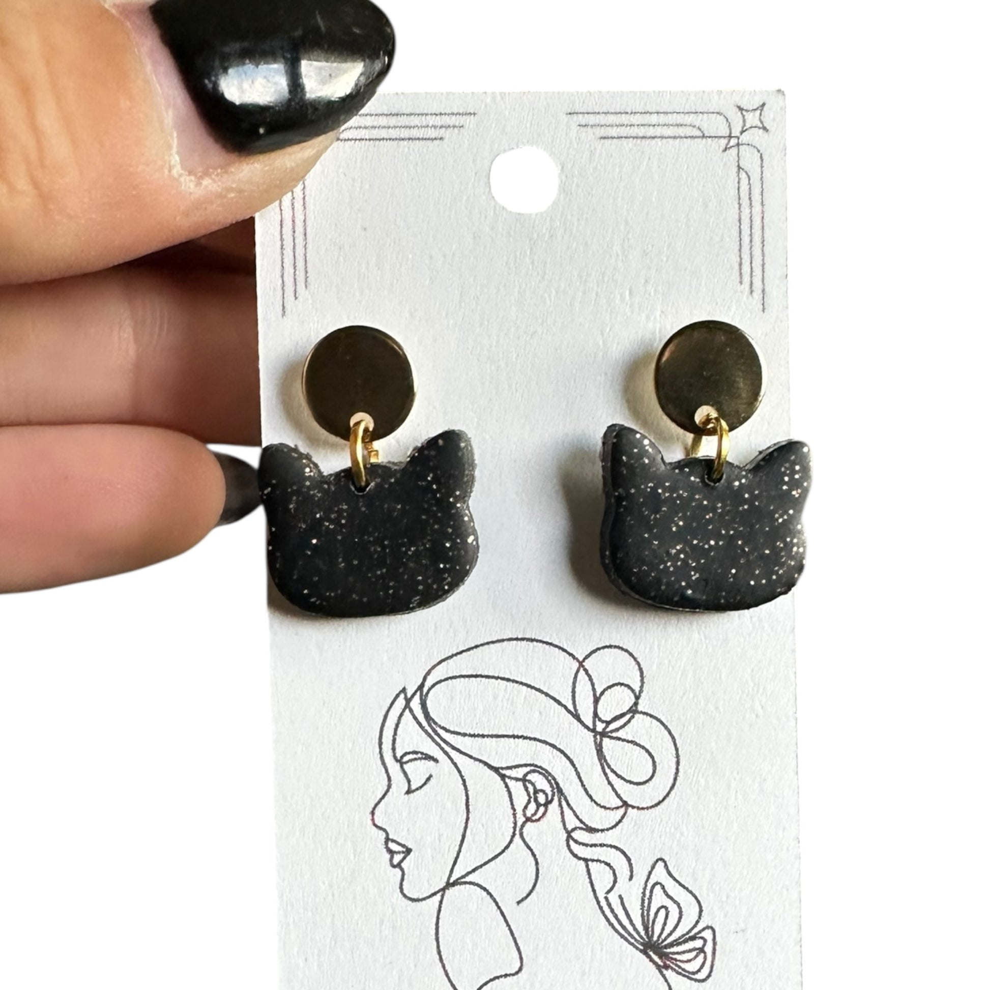 Hypoallergenic Hanging Black Cat Clay Dangle Earrings