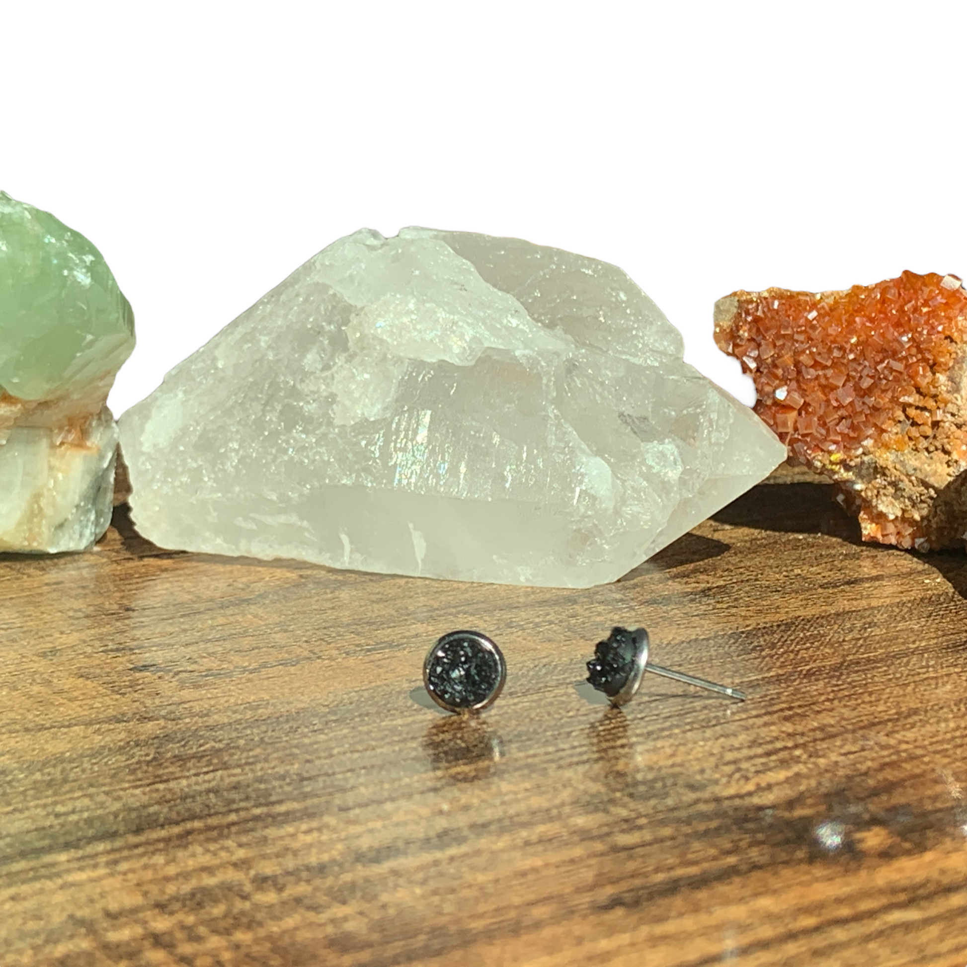 Faux druzy earrings made from epoxy resin to give some added sparkle too any outfit! The iridescent flecks of color change depending on which angle you are looking!