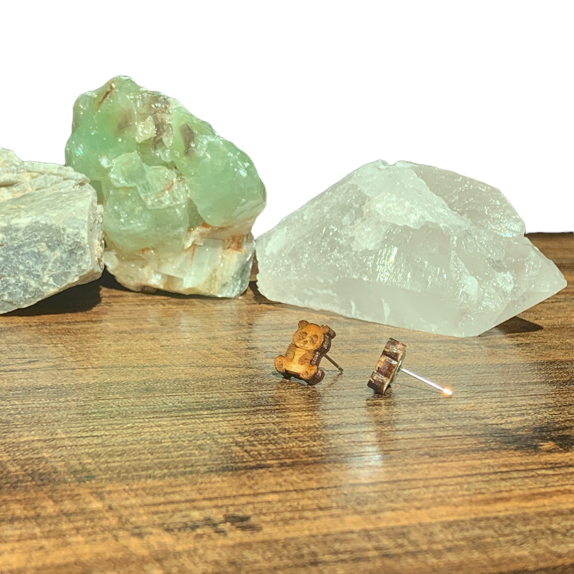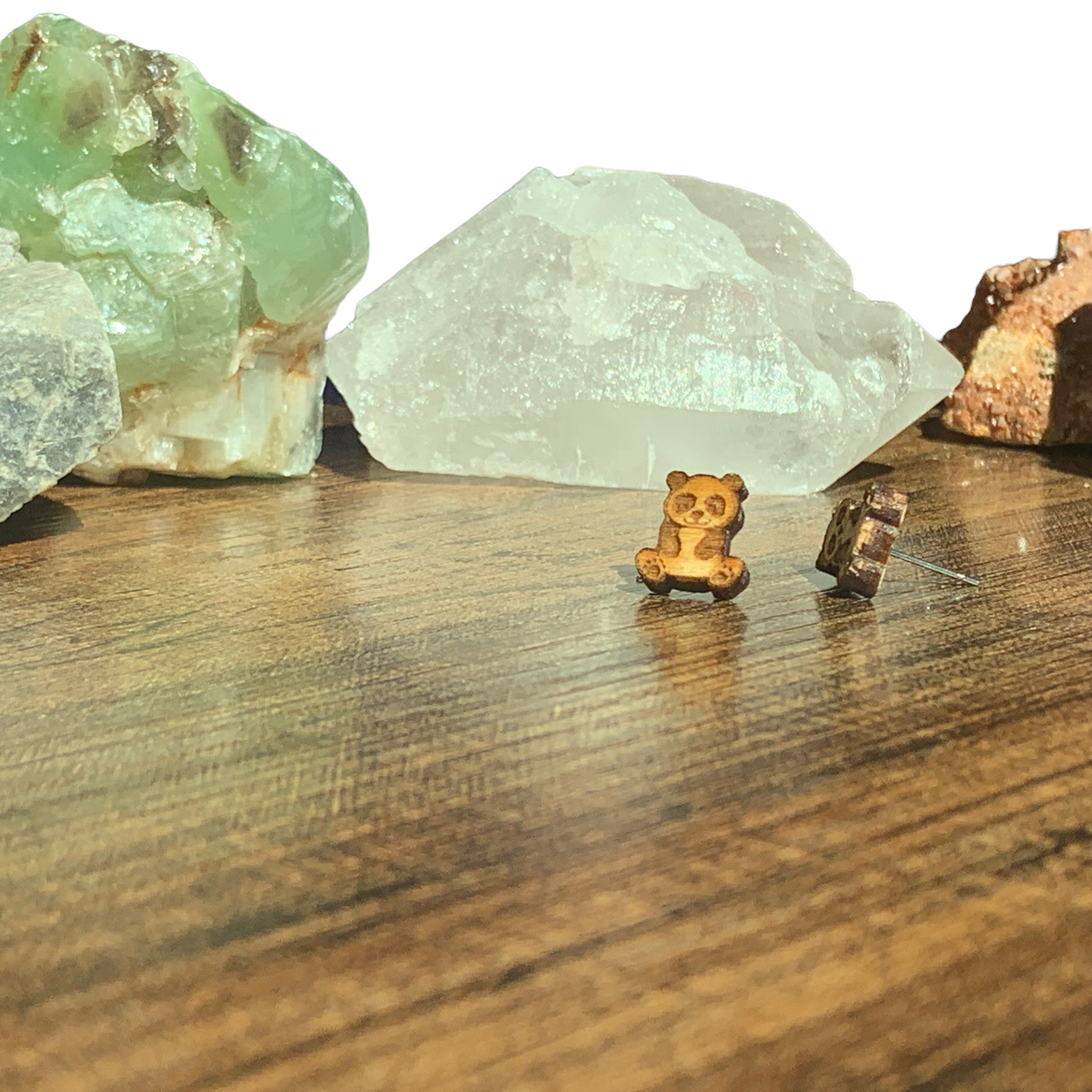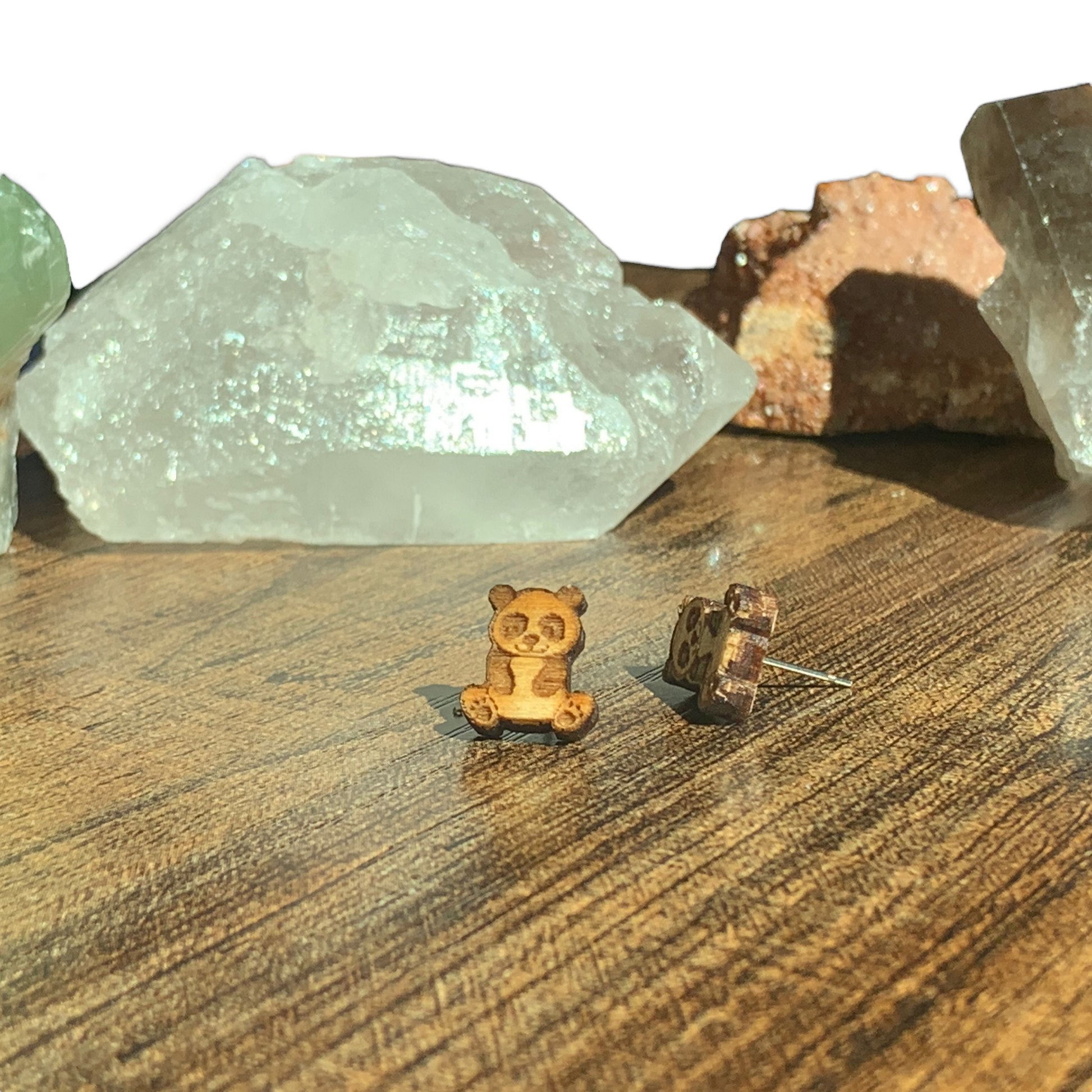Hypoallergenic Panda Laser Engraved Wood Earrings