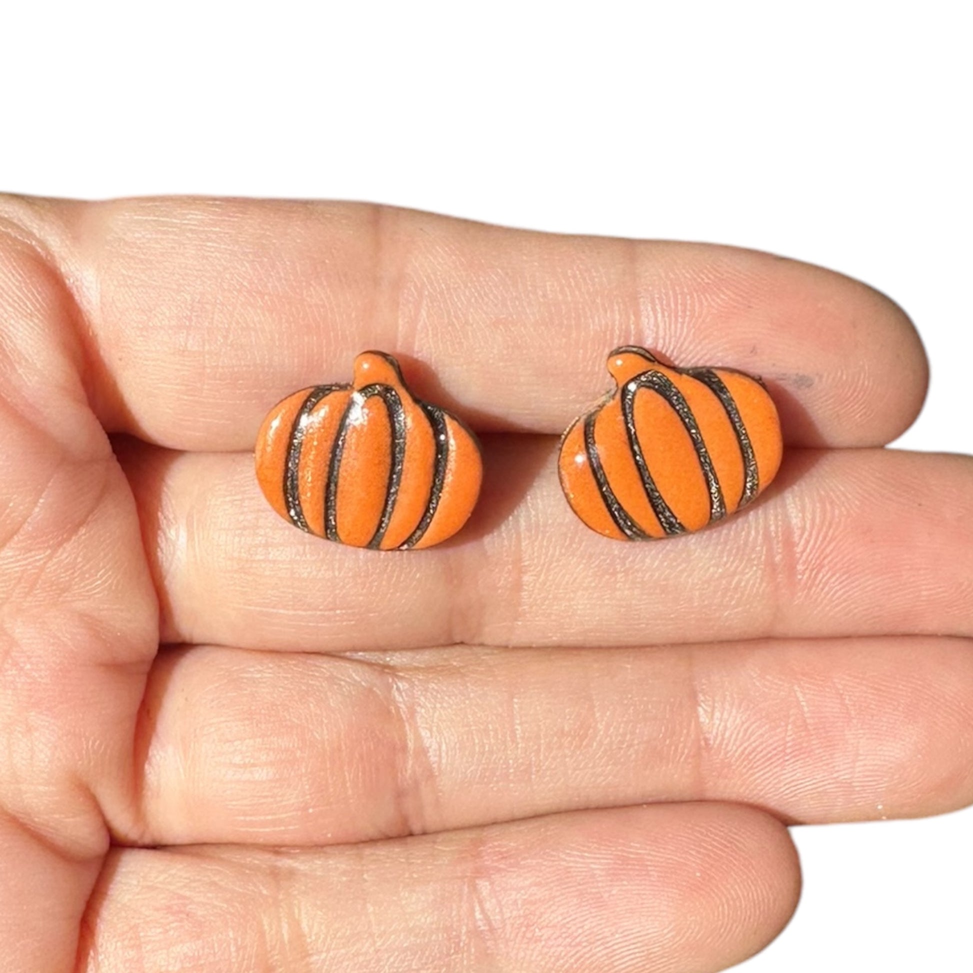 Hypoallergenic Orange and Black Pumpkin Stud Clay Earrings