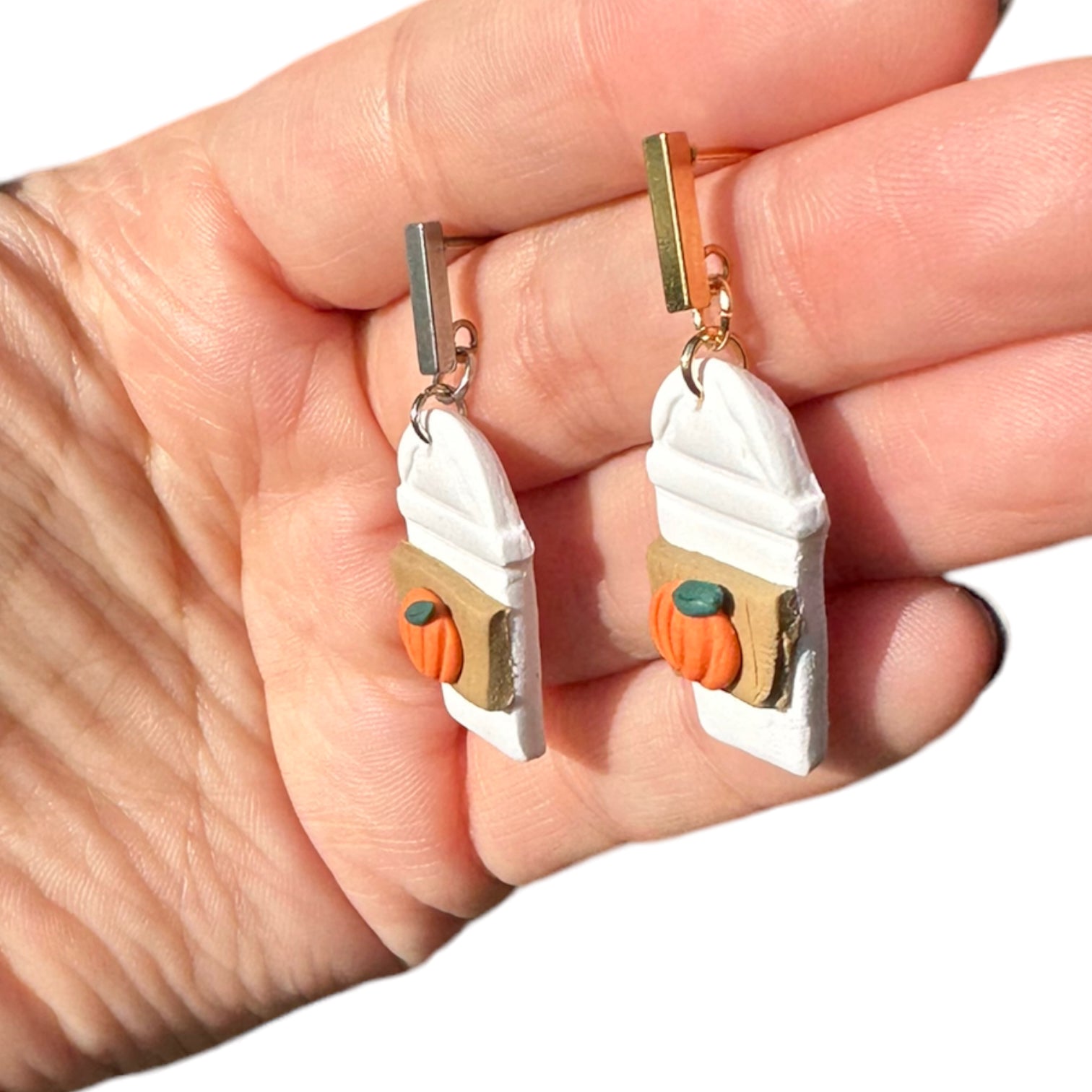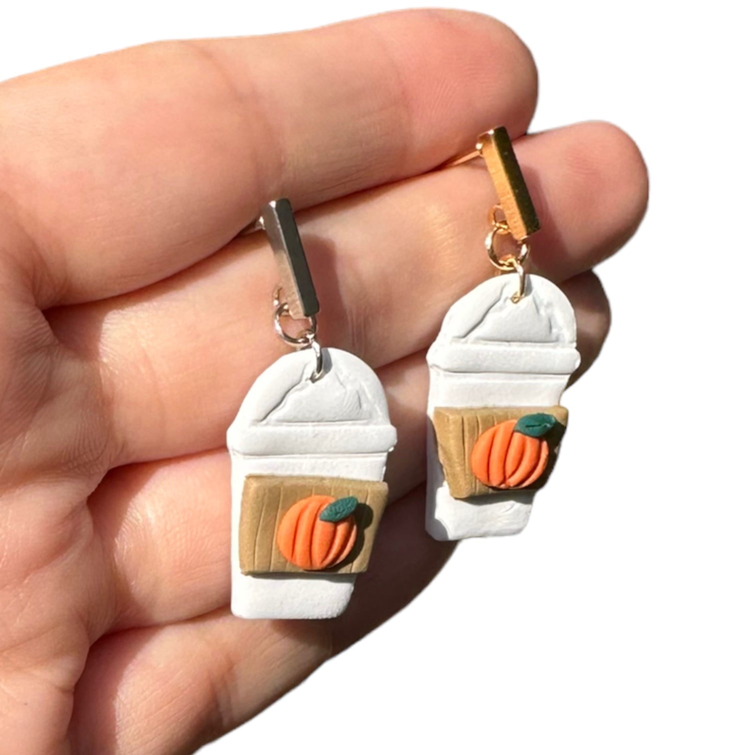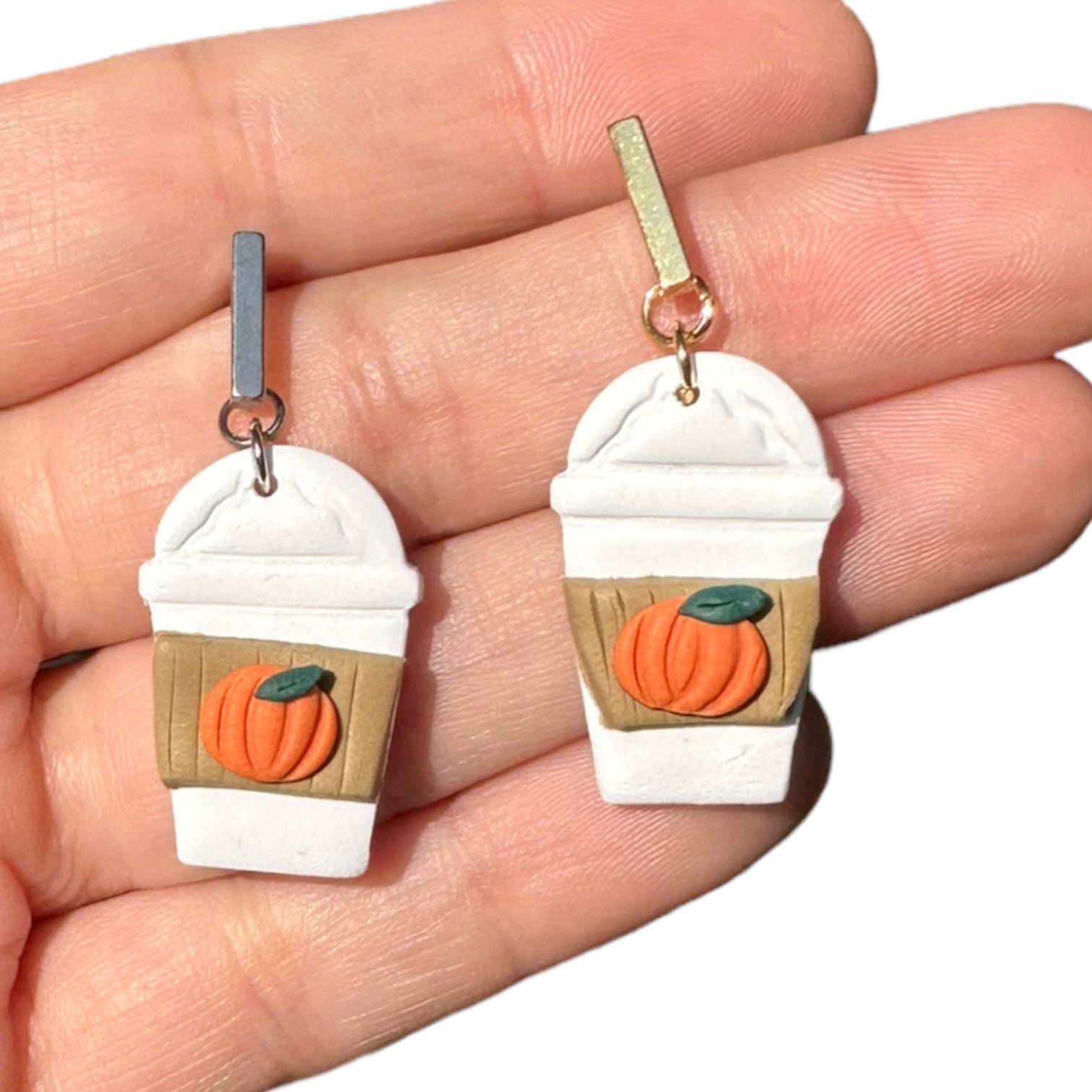 Hypoallergenic Pumpkin Spice Latte Drink Clay Dangle Earrings