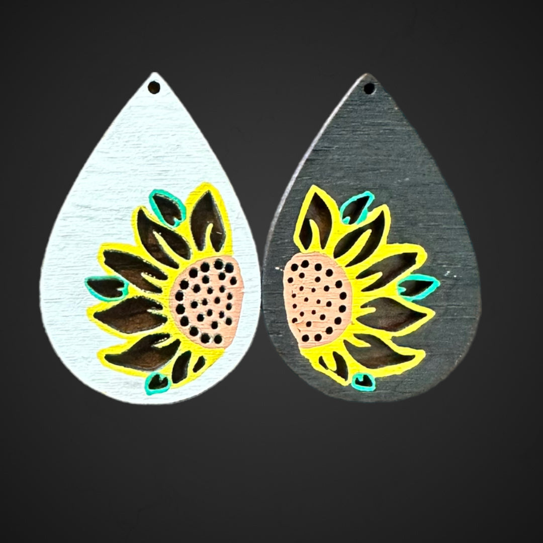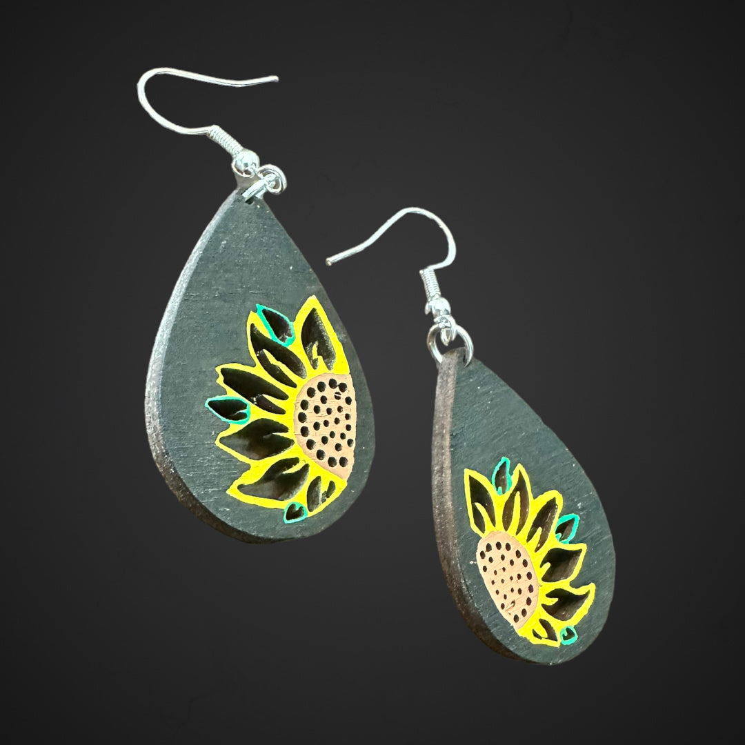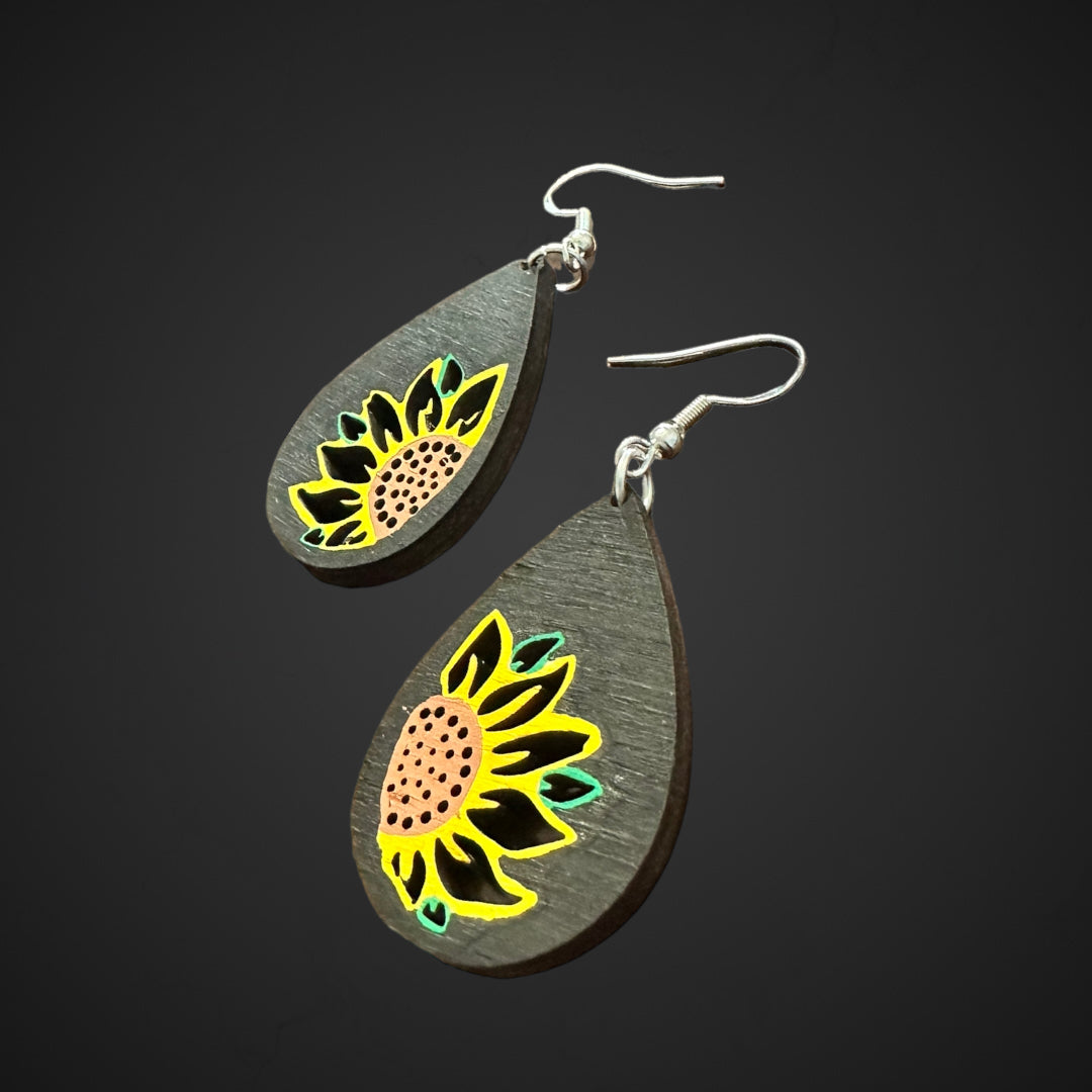 Painted | Natural Wood Hypoallergenic Teardrop Sunflower Wood Laser Engraved Wood Earrings