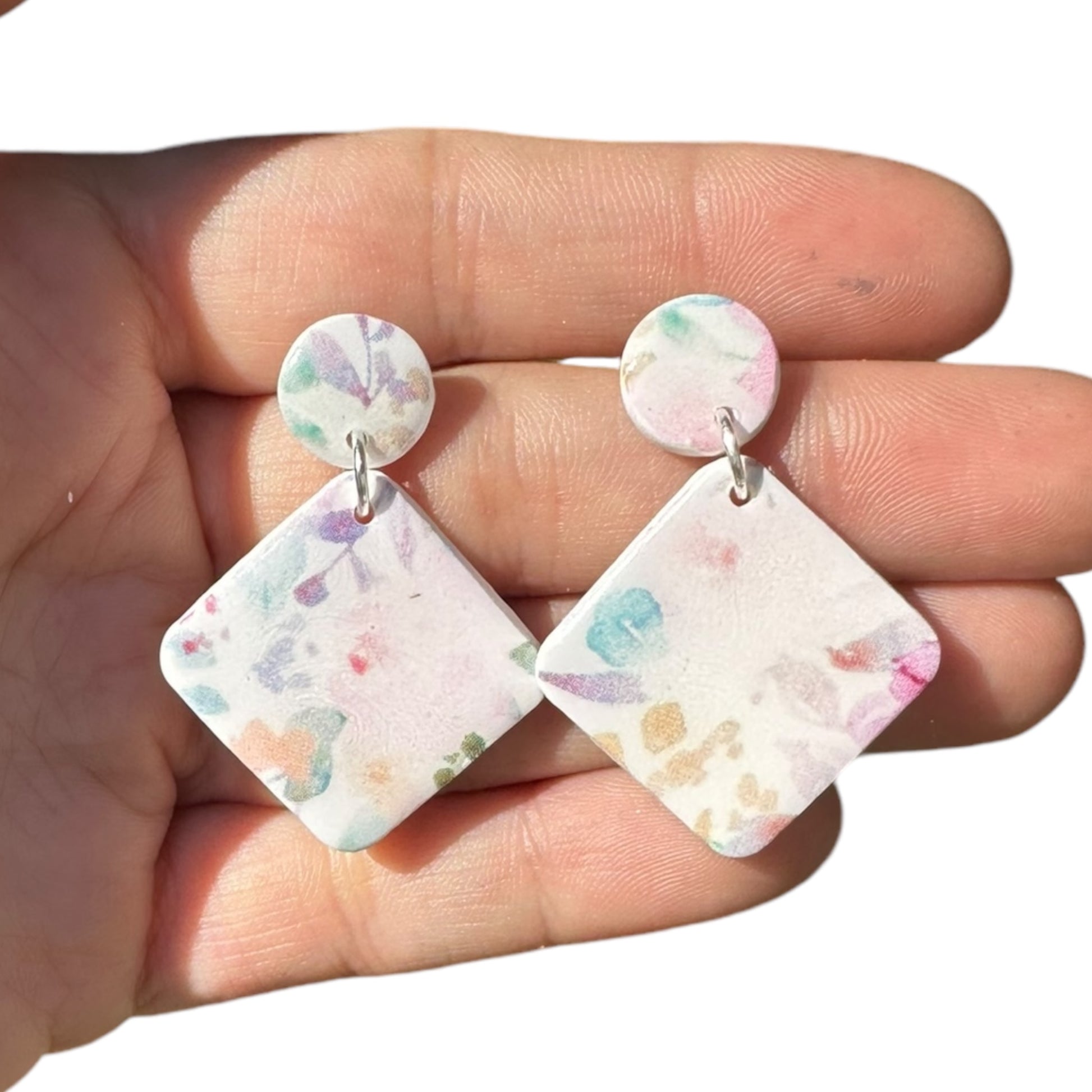 Hypoallergenic Wildflower Floral Square Clay Dangle Earrings