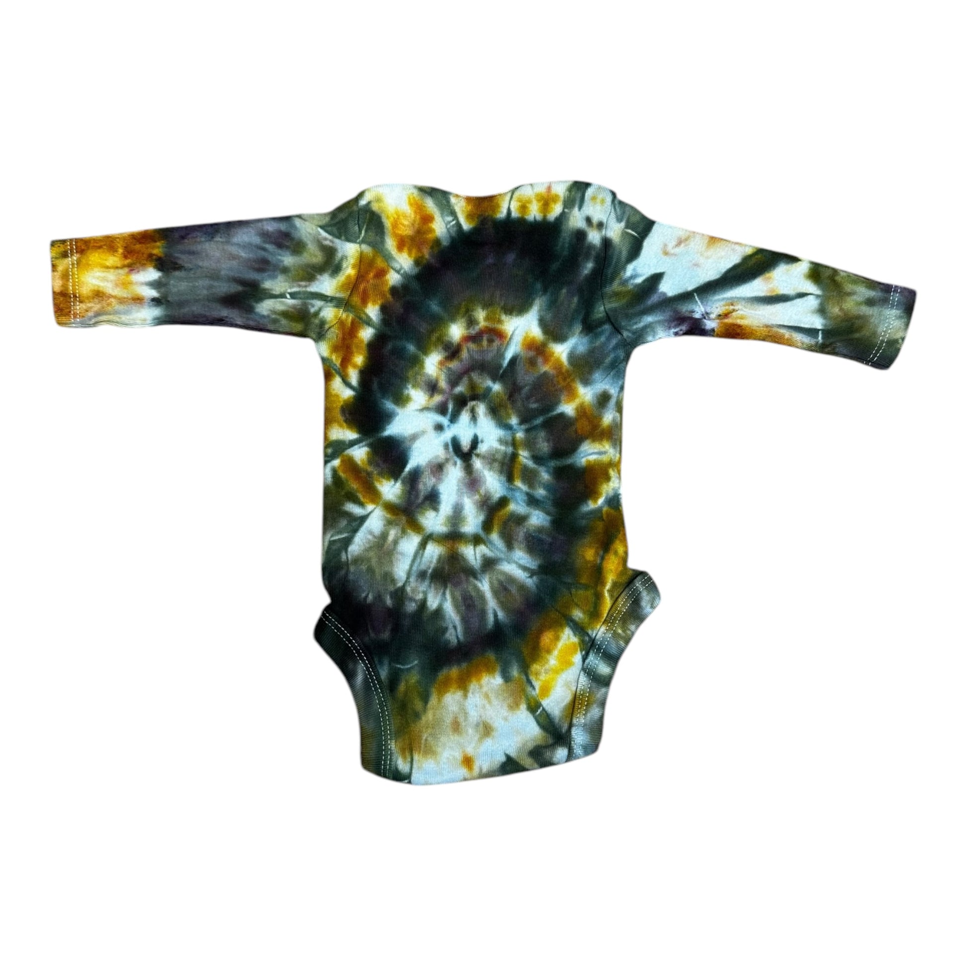 Infant 0-3 Months Black Green and Gold Spiral Ice Dye Tie Dye Long Sleeve Onesie