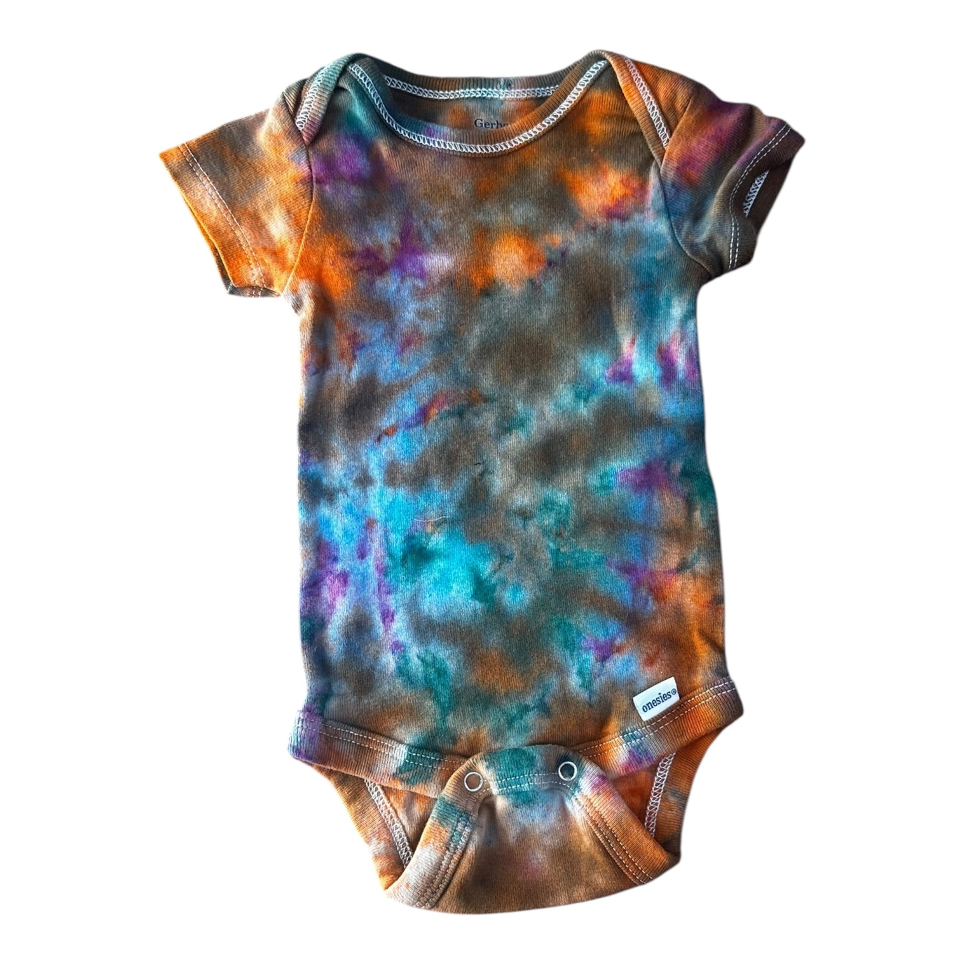 Infant 0-3 Months Blue Brown and Orange Scrunch Ice Dye Tie Dye Onesie