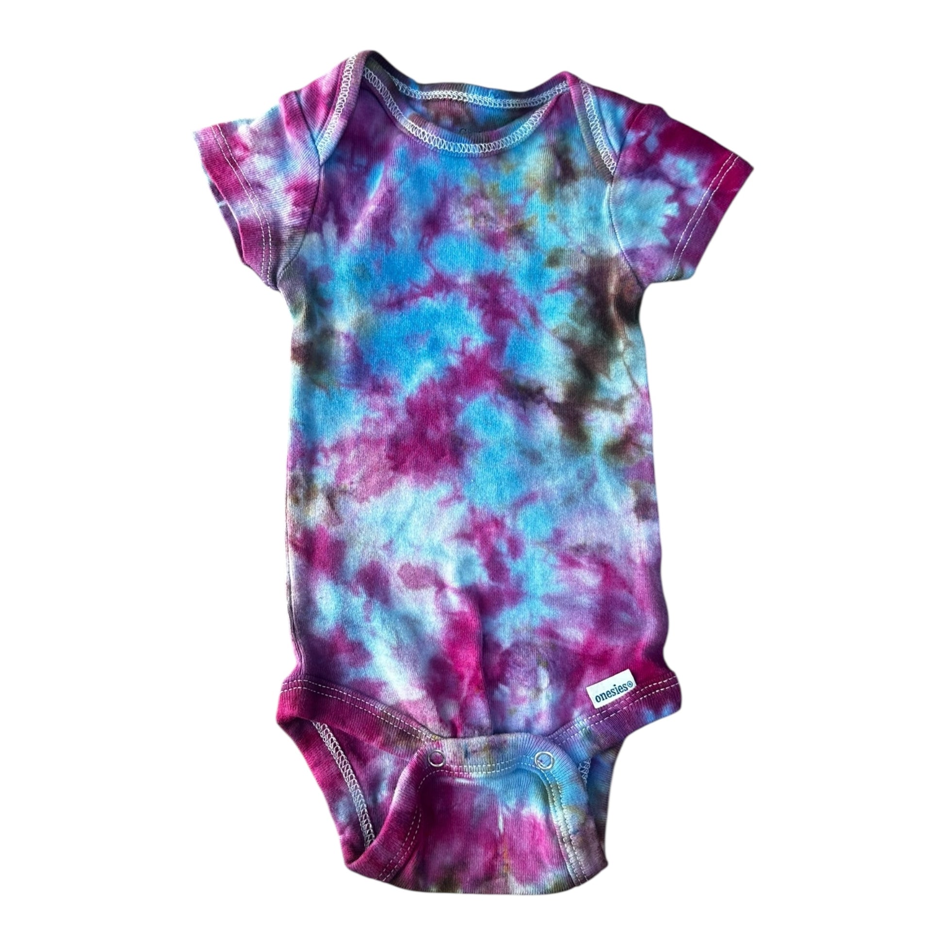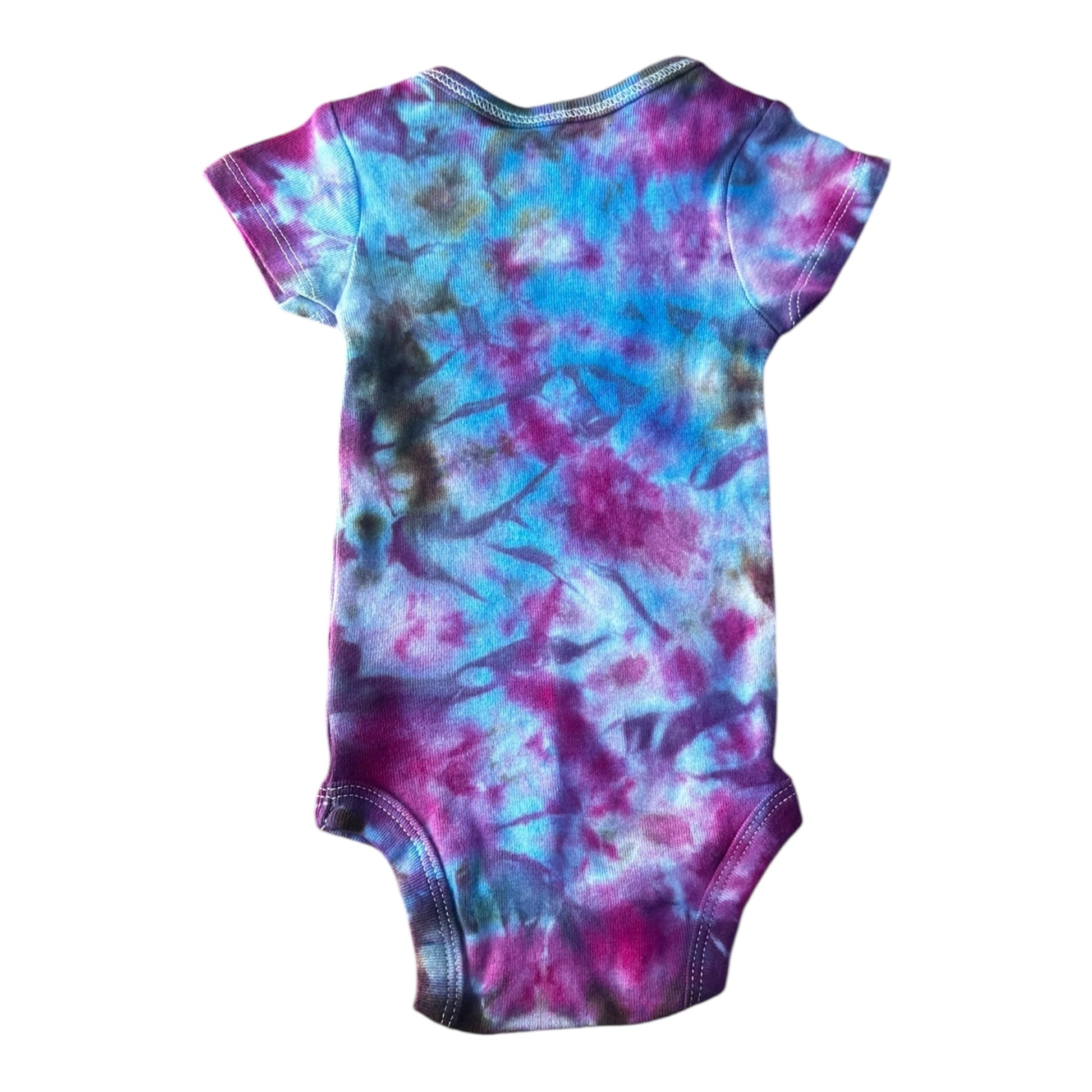Infant 0-3 Months Blue Brown and Purple Scrunch Ice Dye Tie Dye Onesie