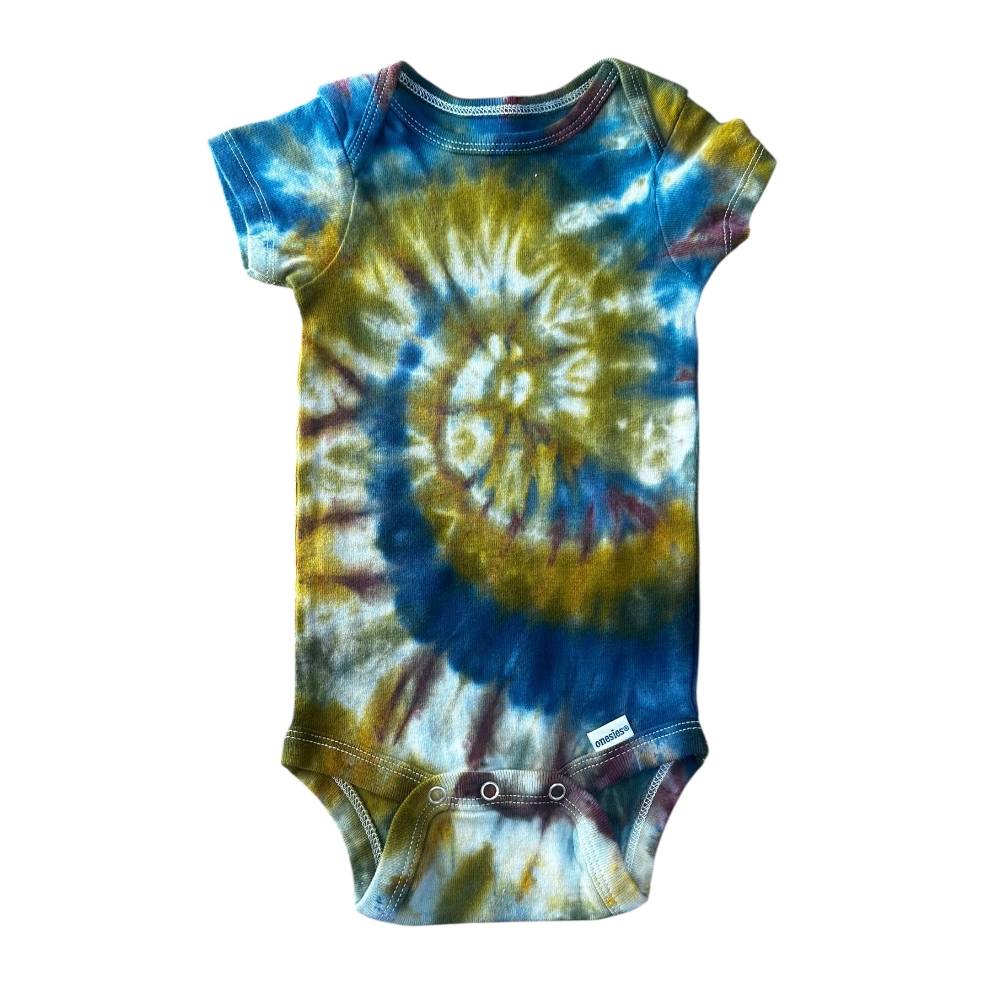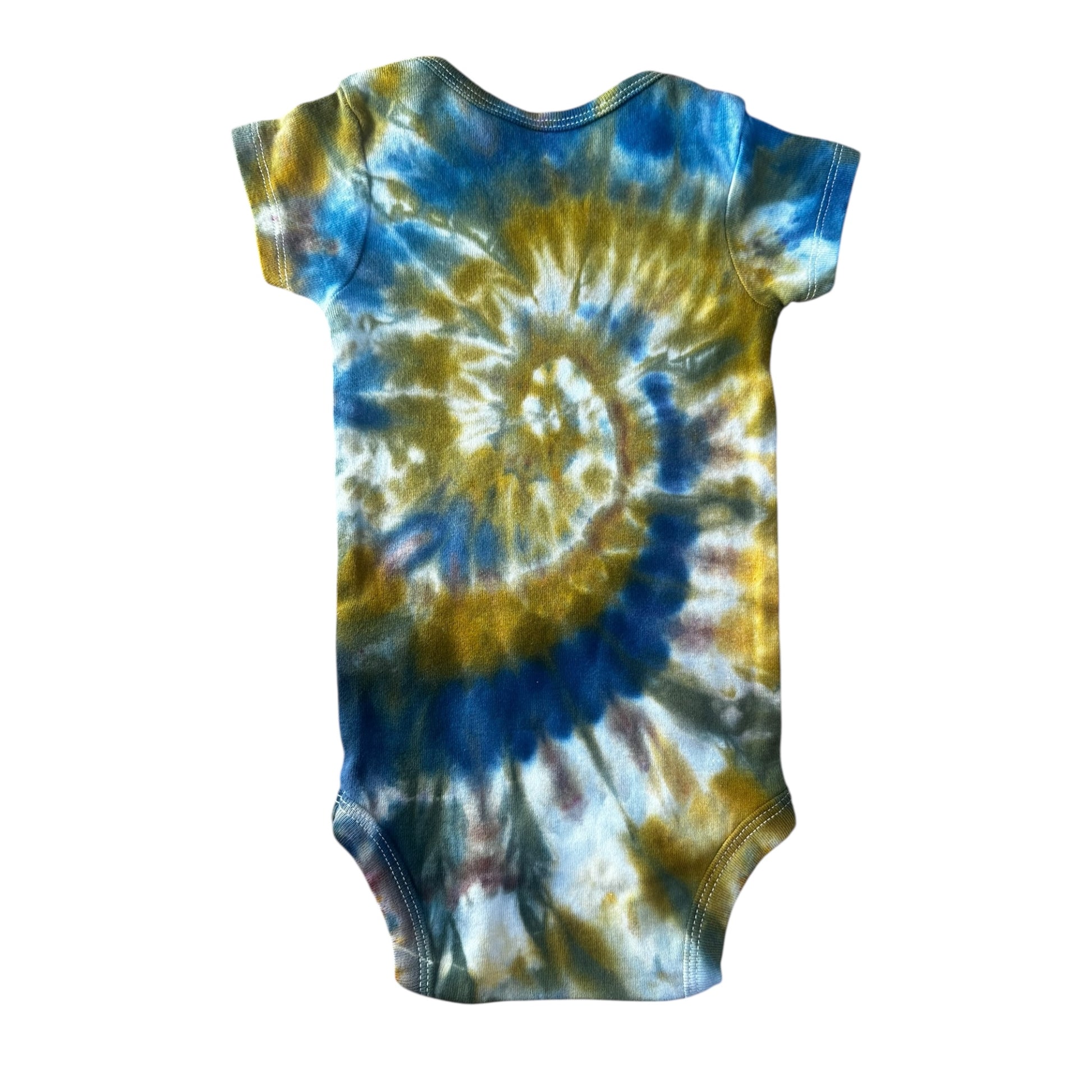 Infant 0-3 Months Green and Yellow Spiral Ice Dye Tie Dye Onesie