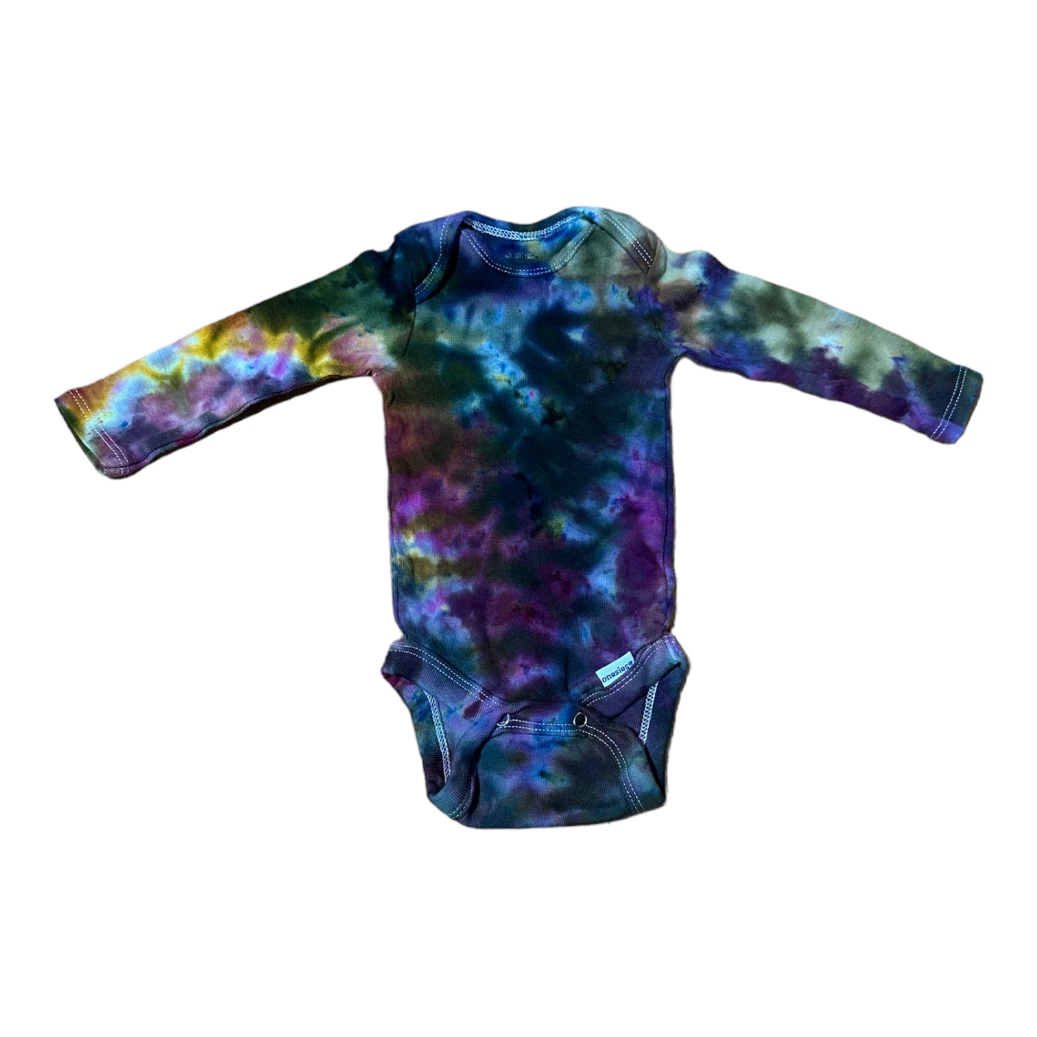 Infant 0-3 Months Purple Yellow Blue and Green Scrunch Ice Dye Tie Dye Long Sleeve Onesie