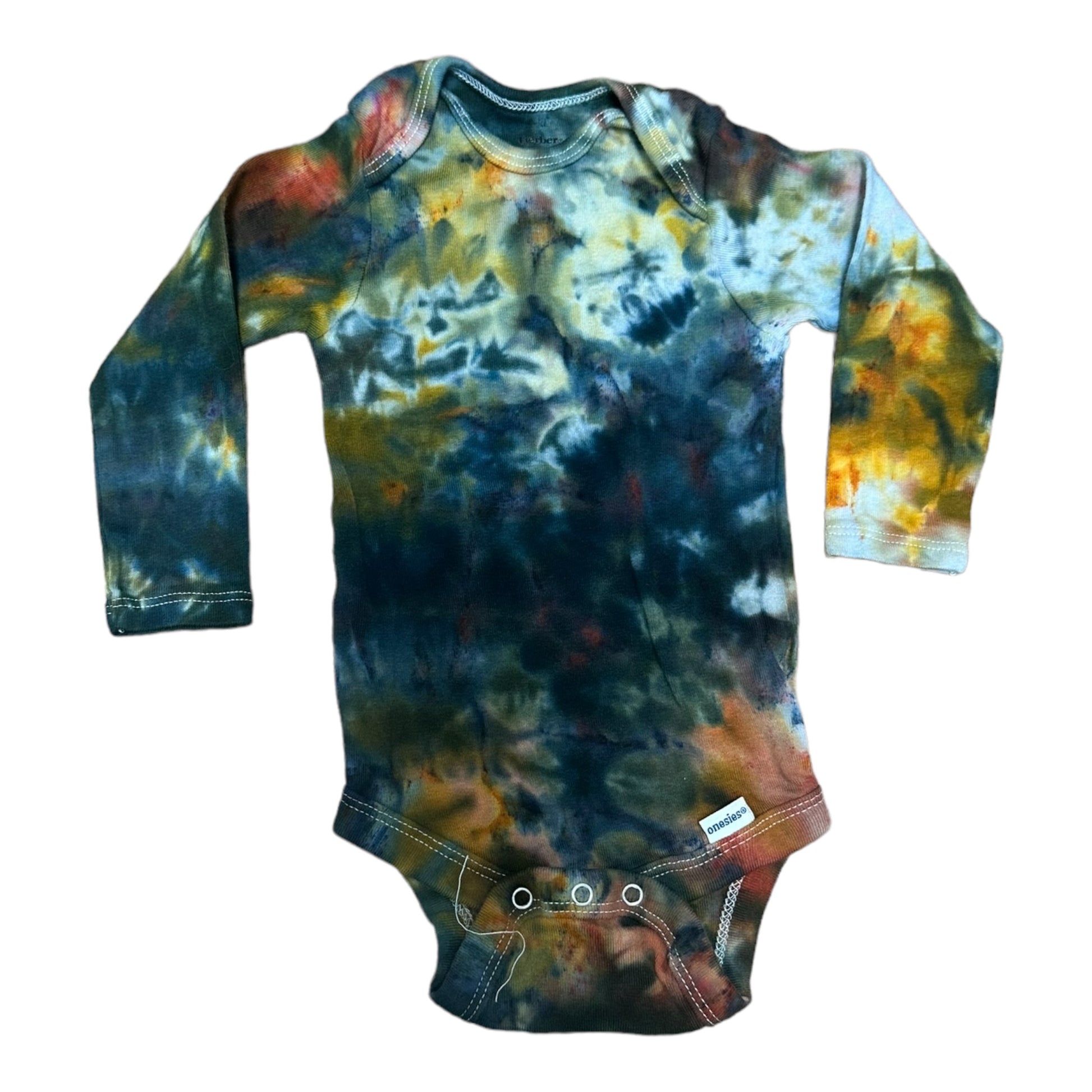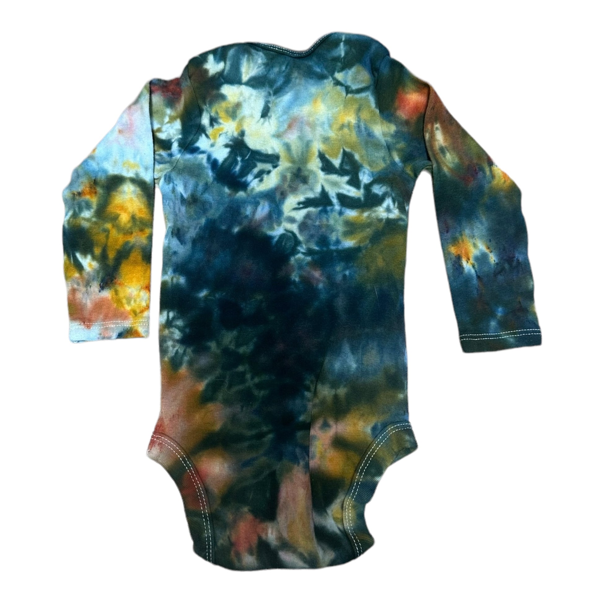 Infant 12 Month Black Orange Scrunch and Yellow Scrunch Ice Dye Tie Dye Long Sleeve Onesie