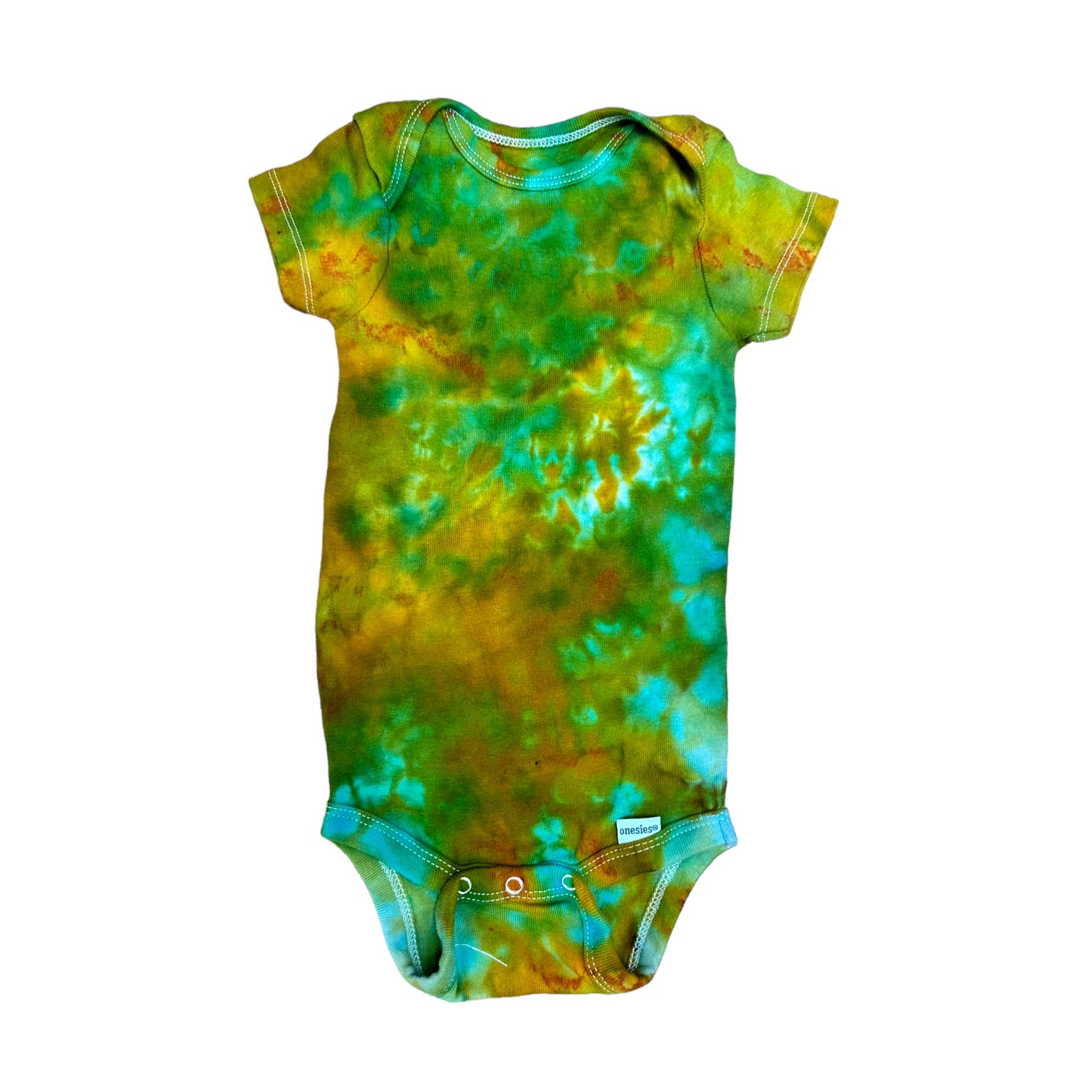 Infant 12 Months Blue Green and Yellow Scrunch Ice Dye Tie Dye Onesie*