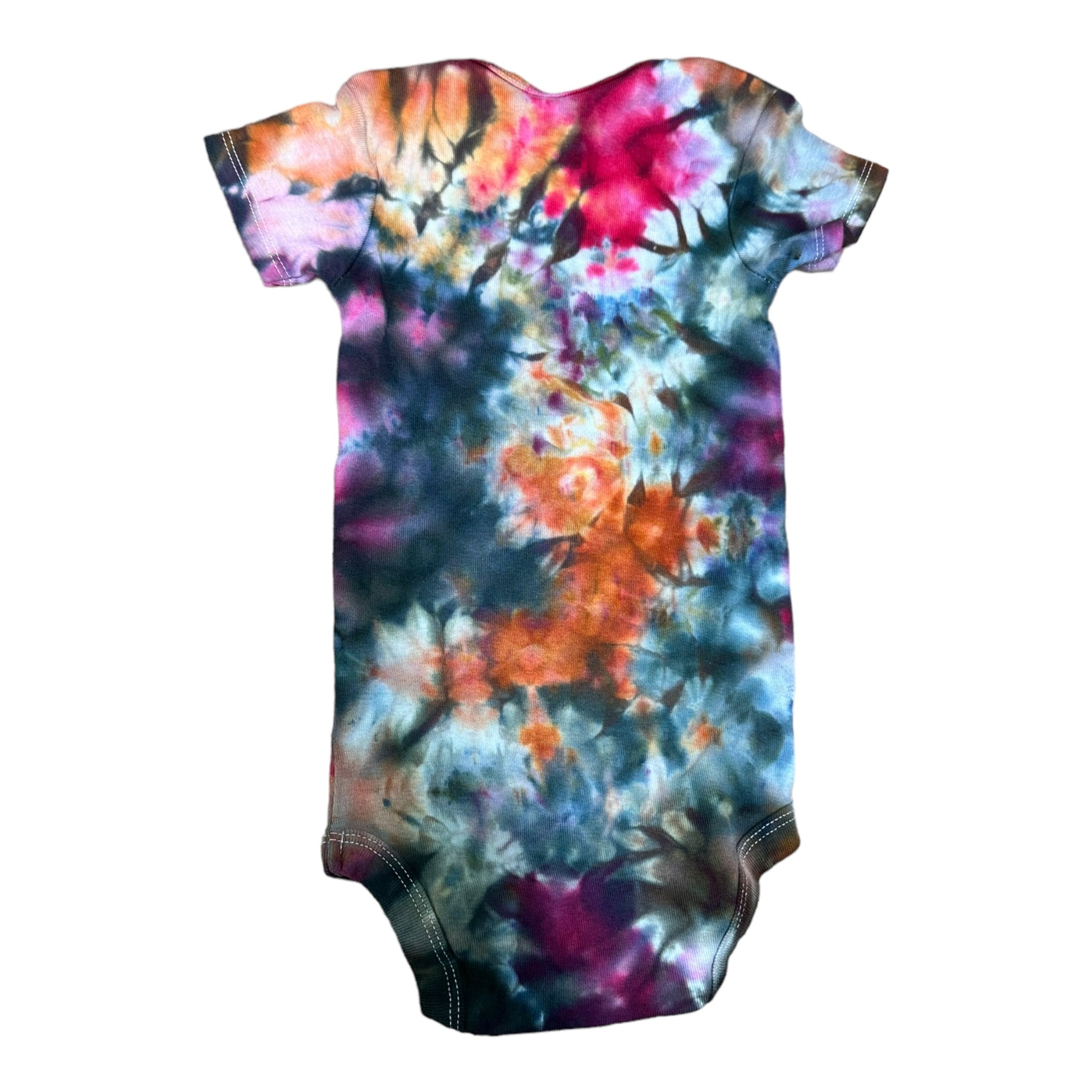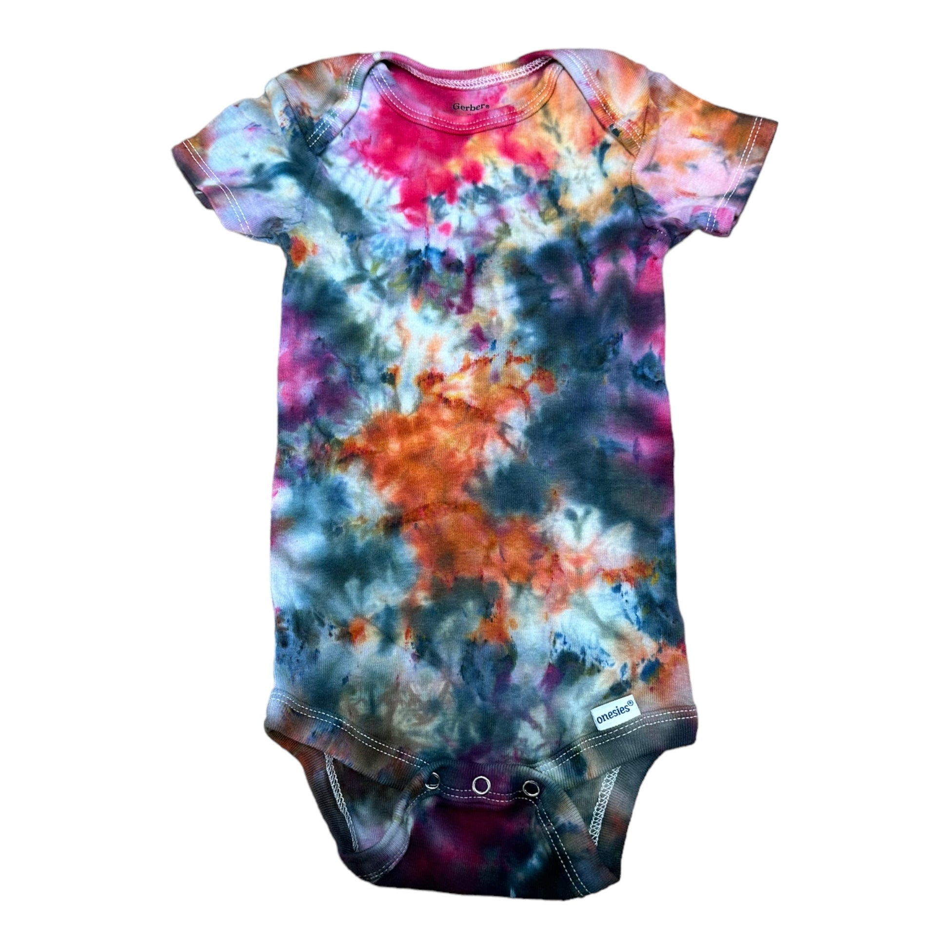 Infant 12 Months Pink Orange Blue and Black Scrunch Ice Dye Tie Dye Onesie