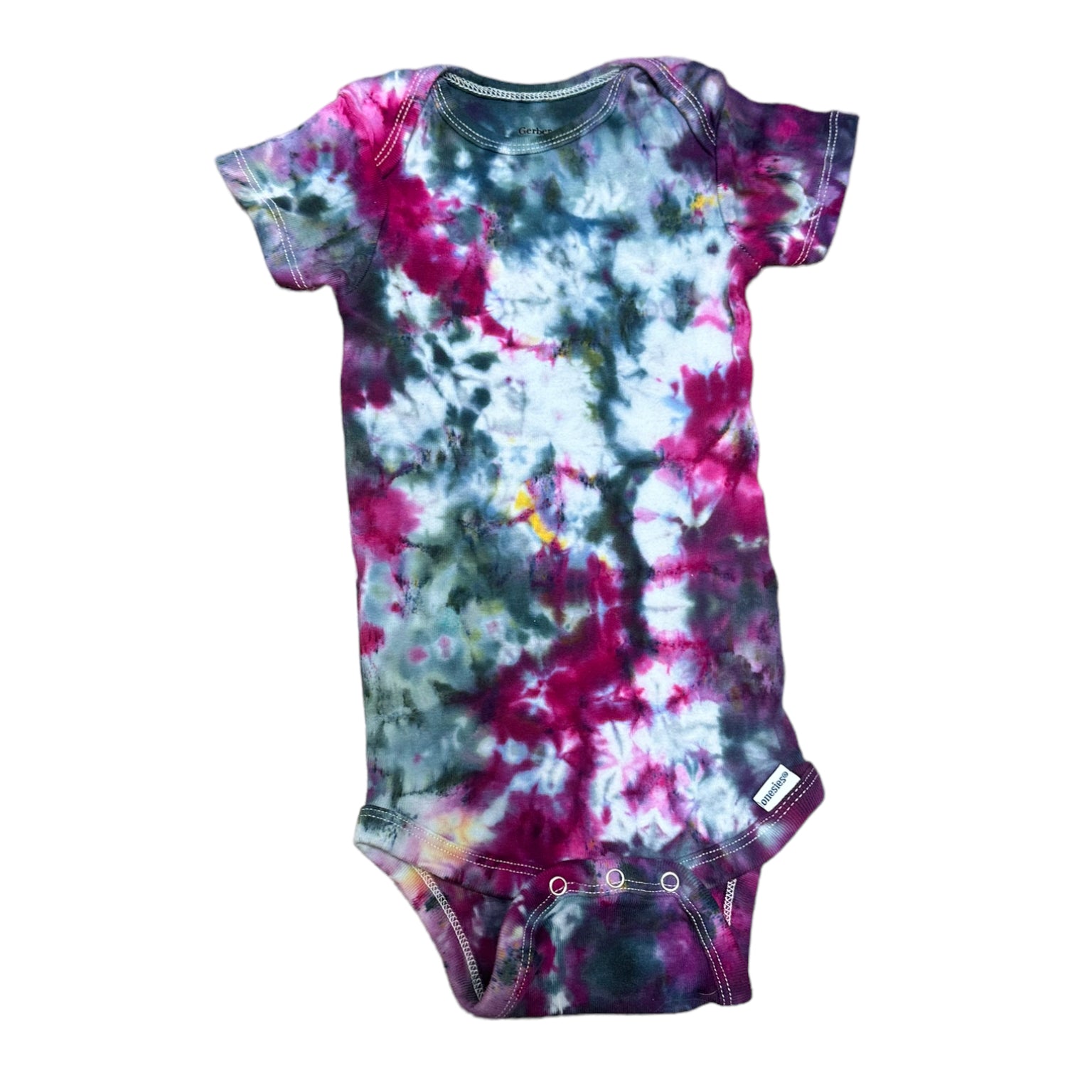 Infant 18 Months Hot Pink and Black Scrunch Ice Dye Tie Dye Onesie**