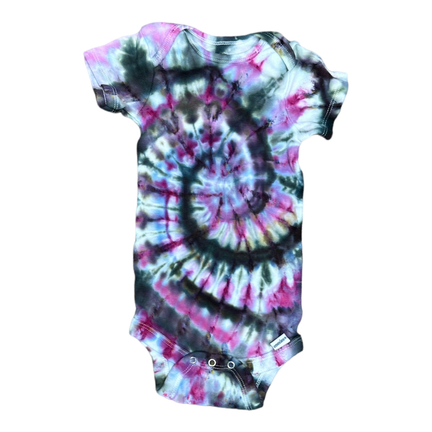 Infant 18 Months Pink and Black Spiral Ice Dye Tie Dye Onesie