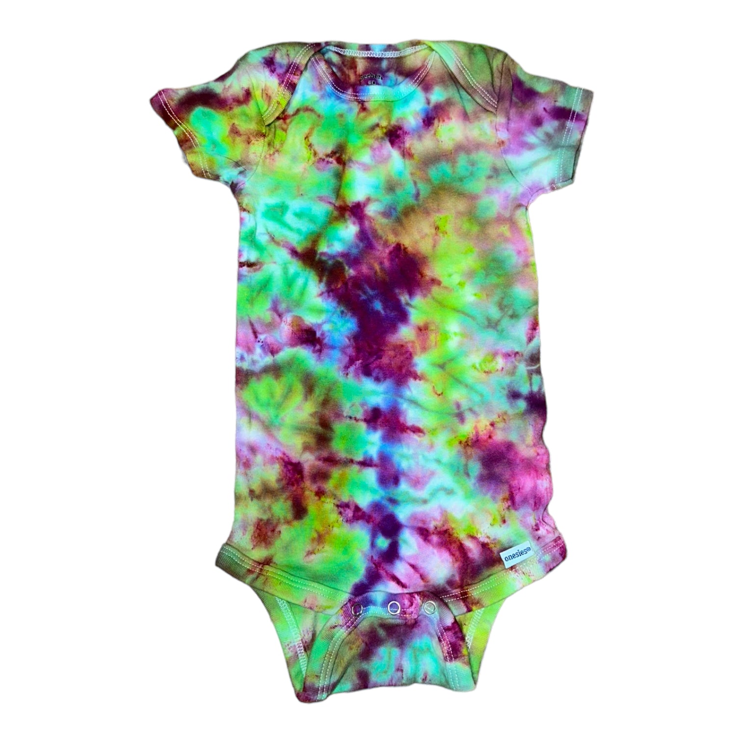 Infant 18 Months Purple Blue Green and Yellow Scrunch Ice Dye Tie Dye Onesie*