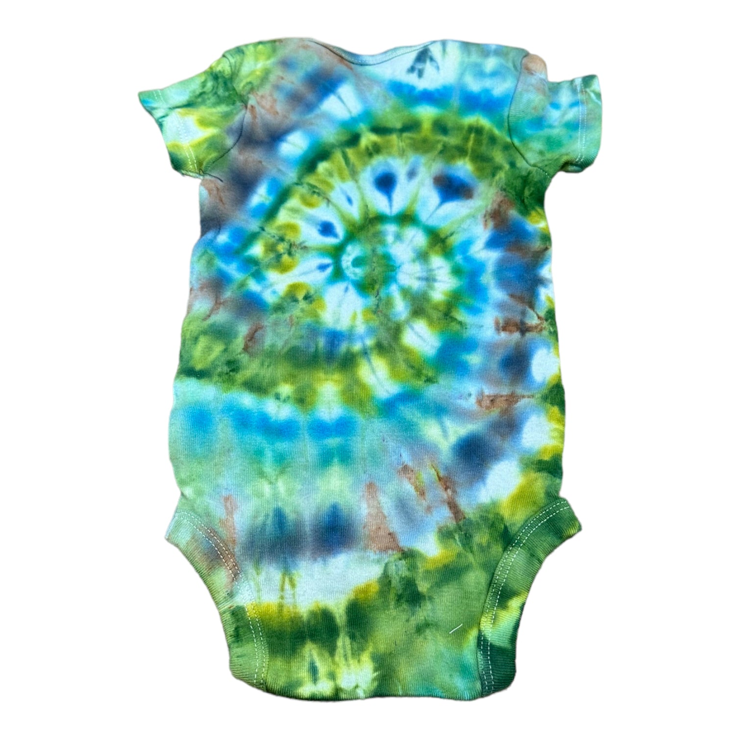 Infant 3-6 Months Green Brown and Blue Spiral Ice Dye Tie Dye Onesie