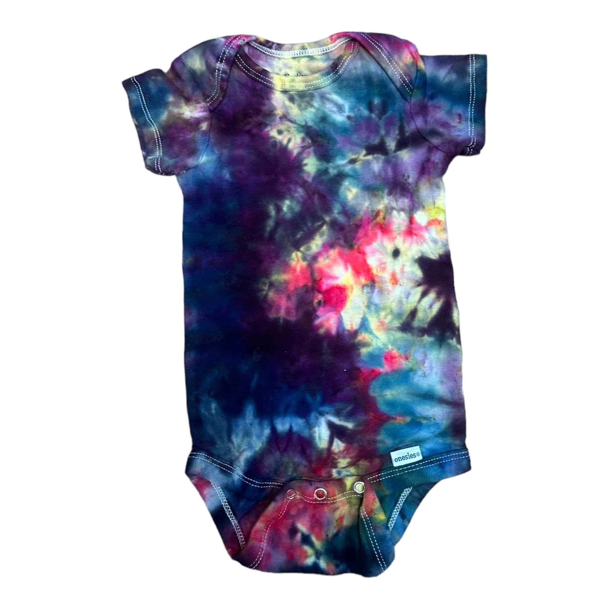Infant 3-6 Months Purple Pink Yellow Green and Blue Scrunch Ice Dye Tie Dye Onesie