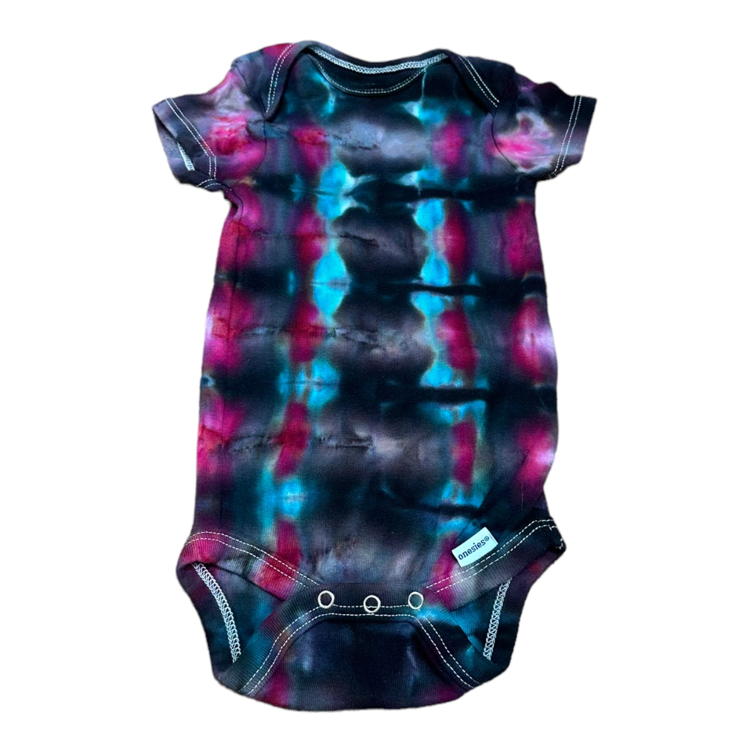Infant 6-9 Months Blue Purple and Black Striped Ice Dye Tie Dye Onesie