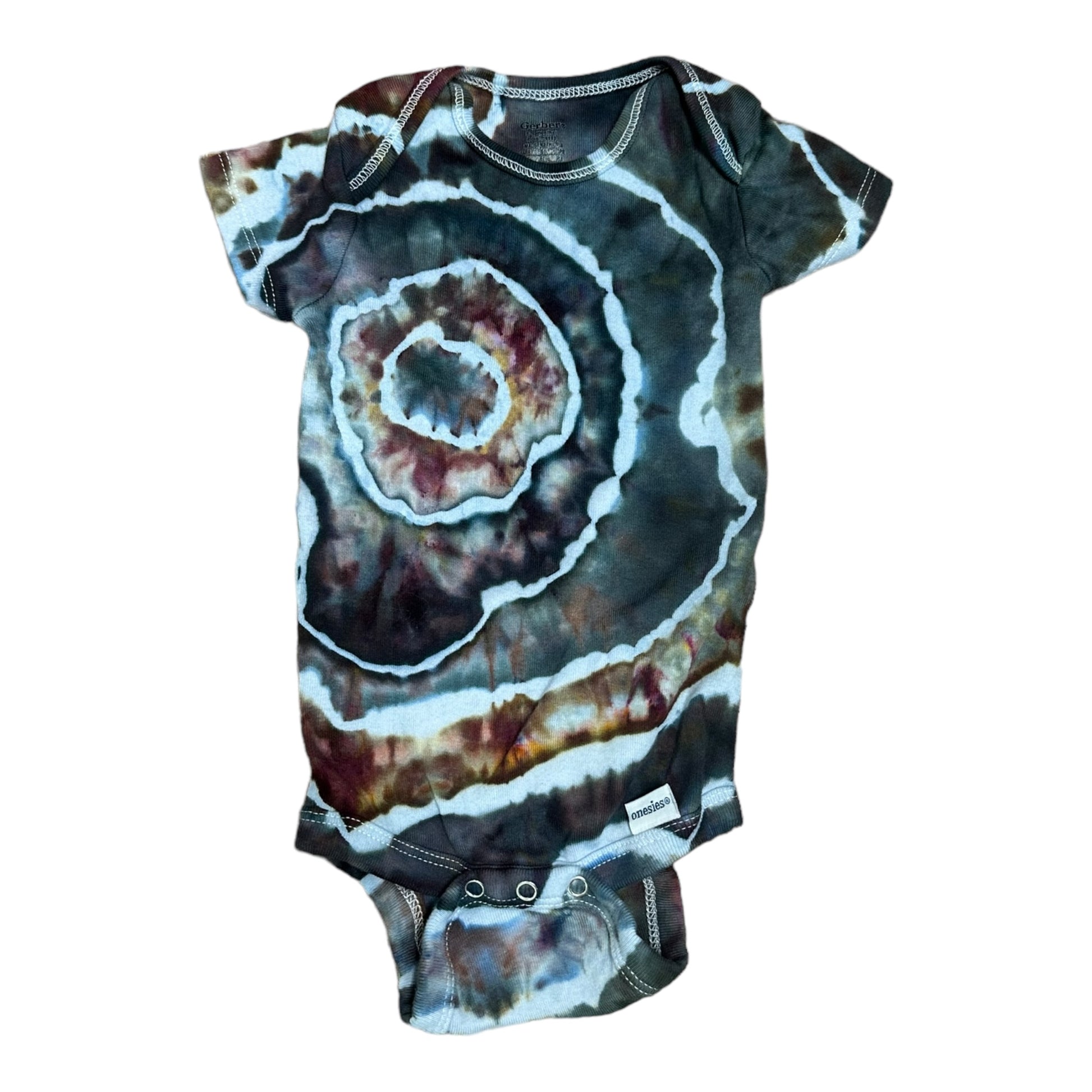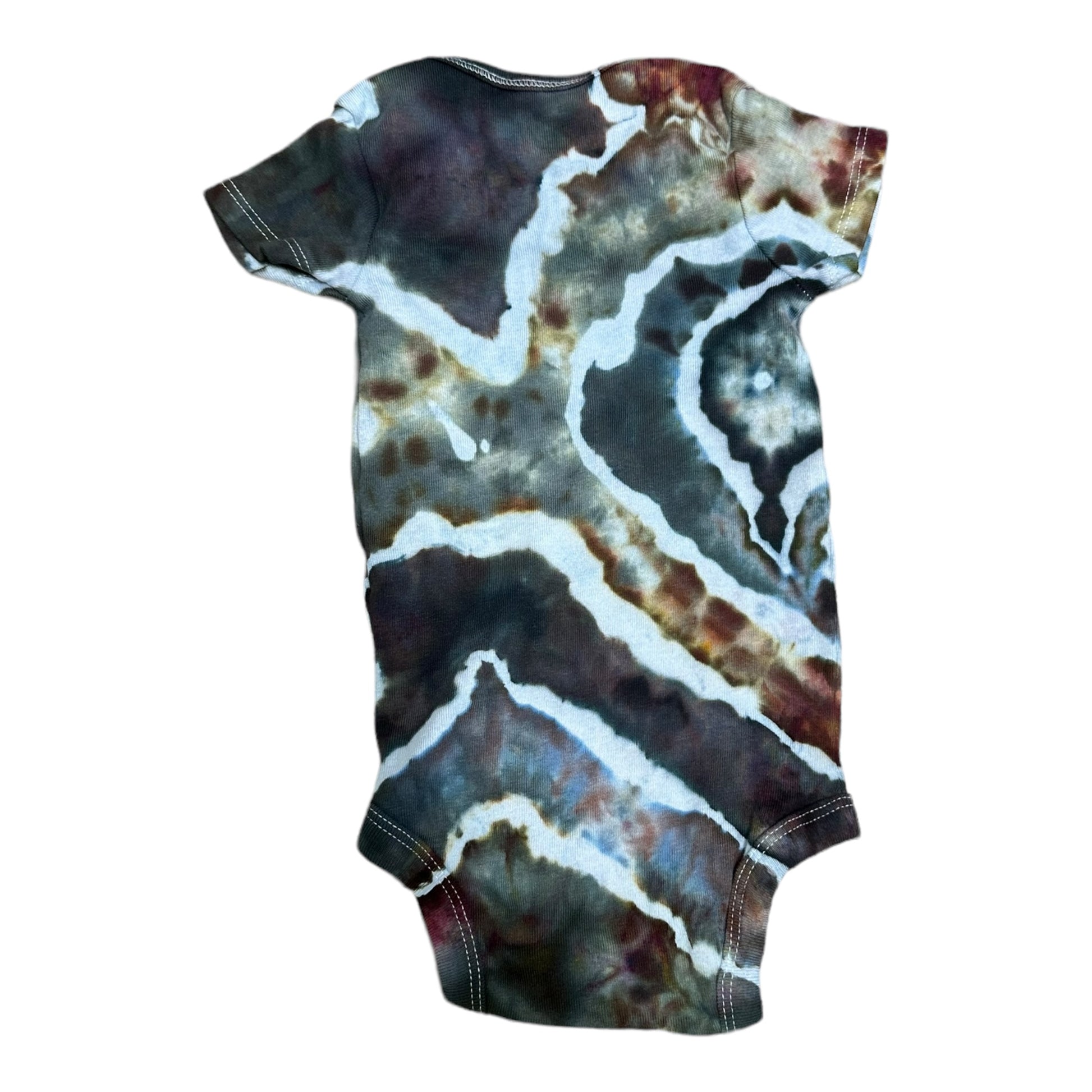 Infant 6-9 Months Black Brown and Gray Geode Ice Dye Tie Dye Onesie