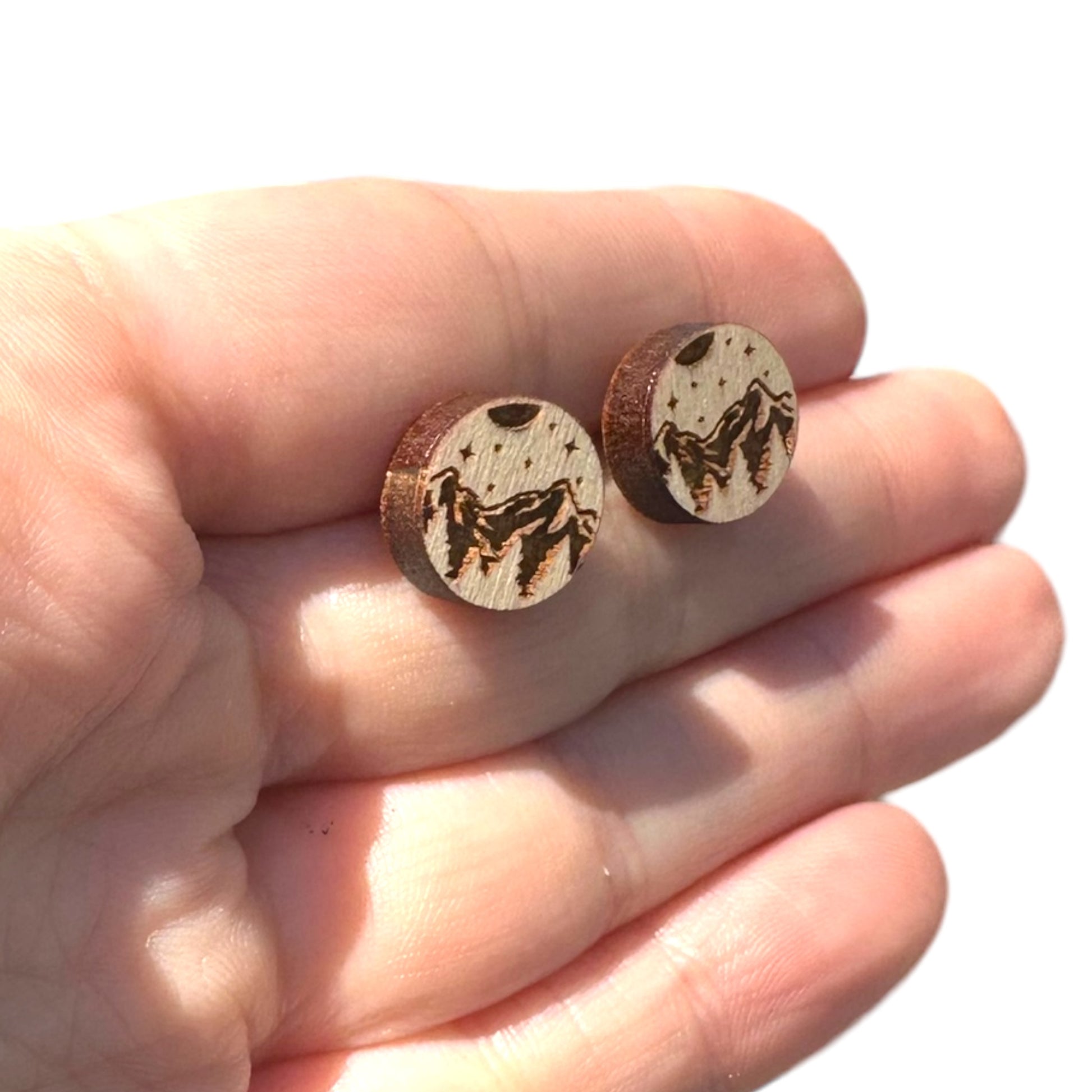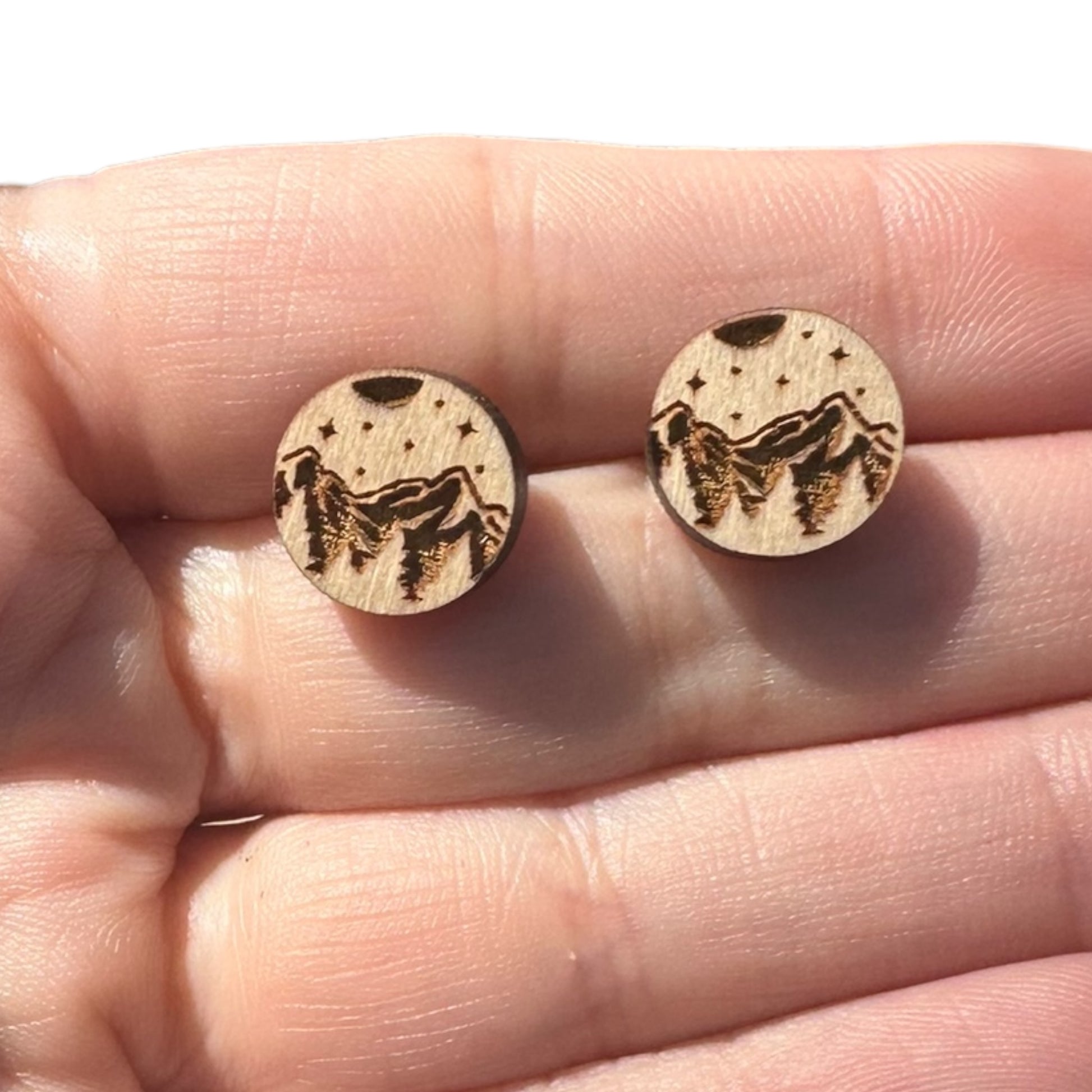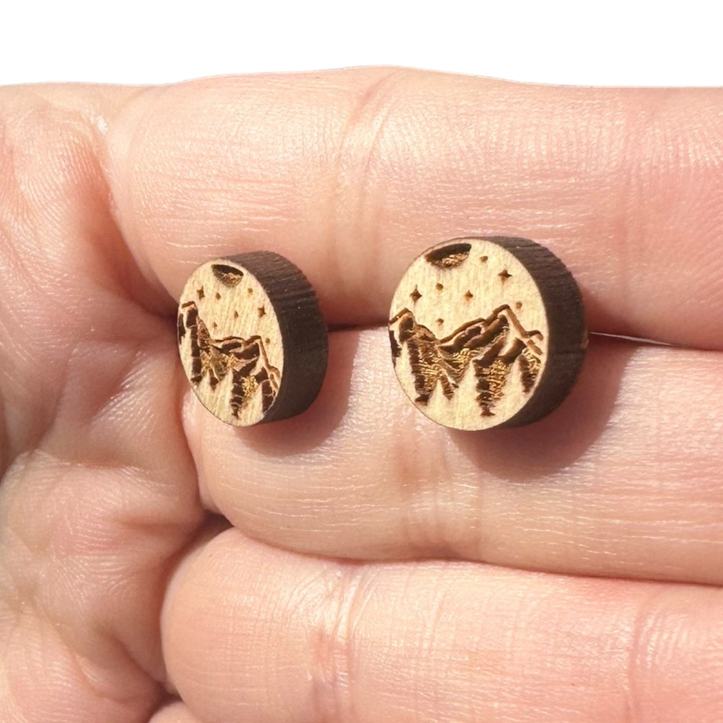 Natural Hypoallergenic Laser Engraved Mountain Wood Stud Earrings