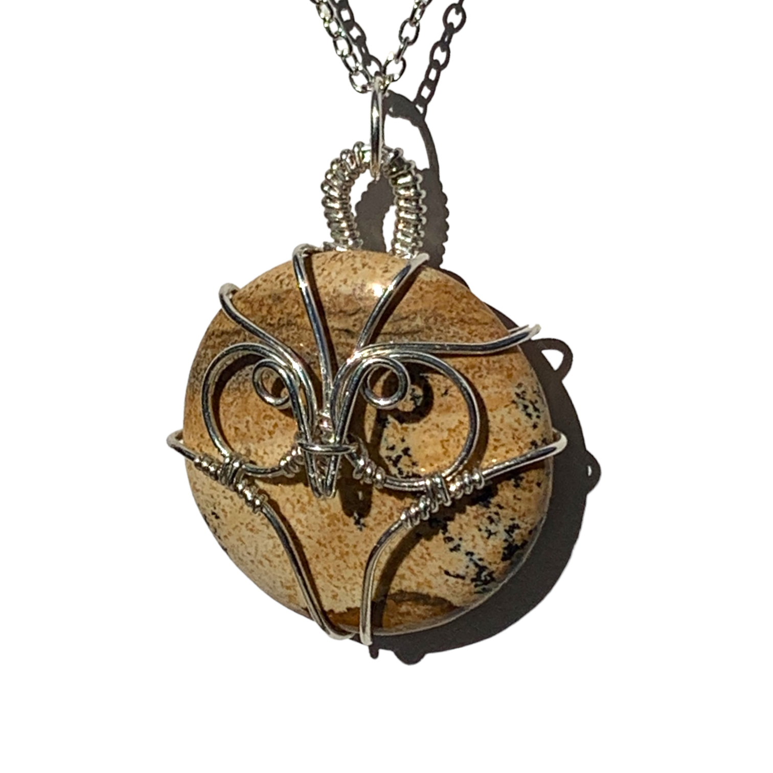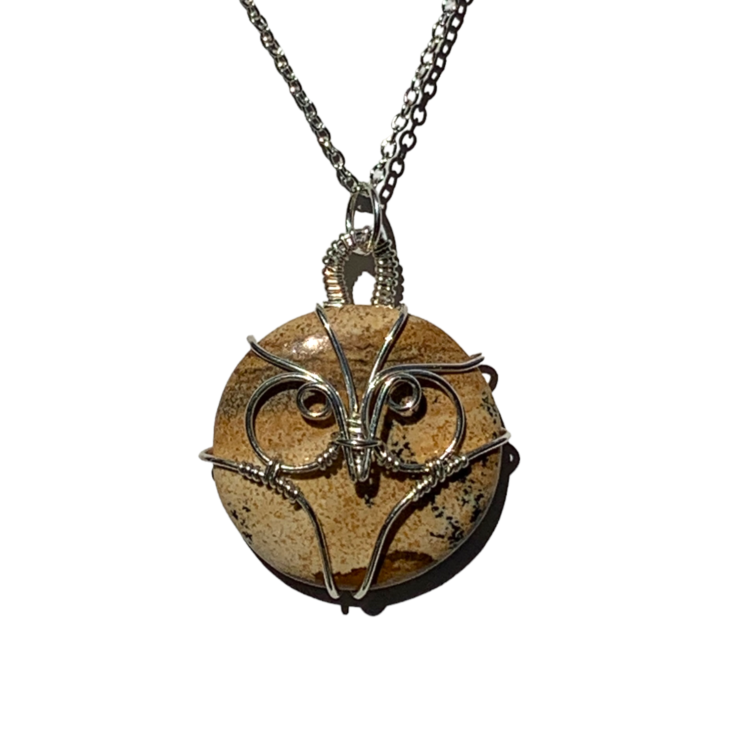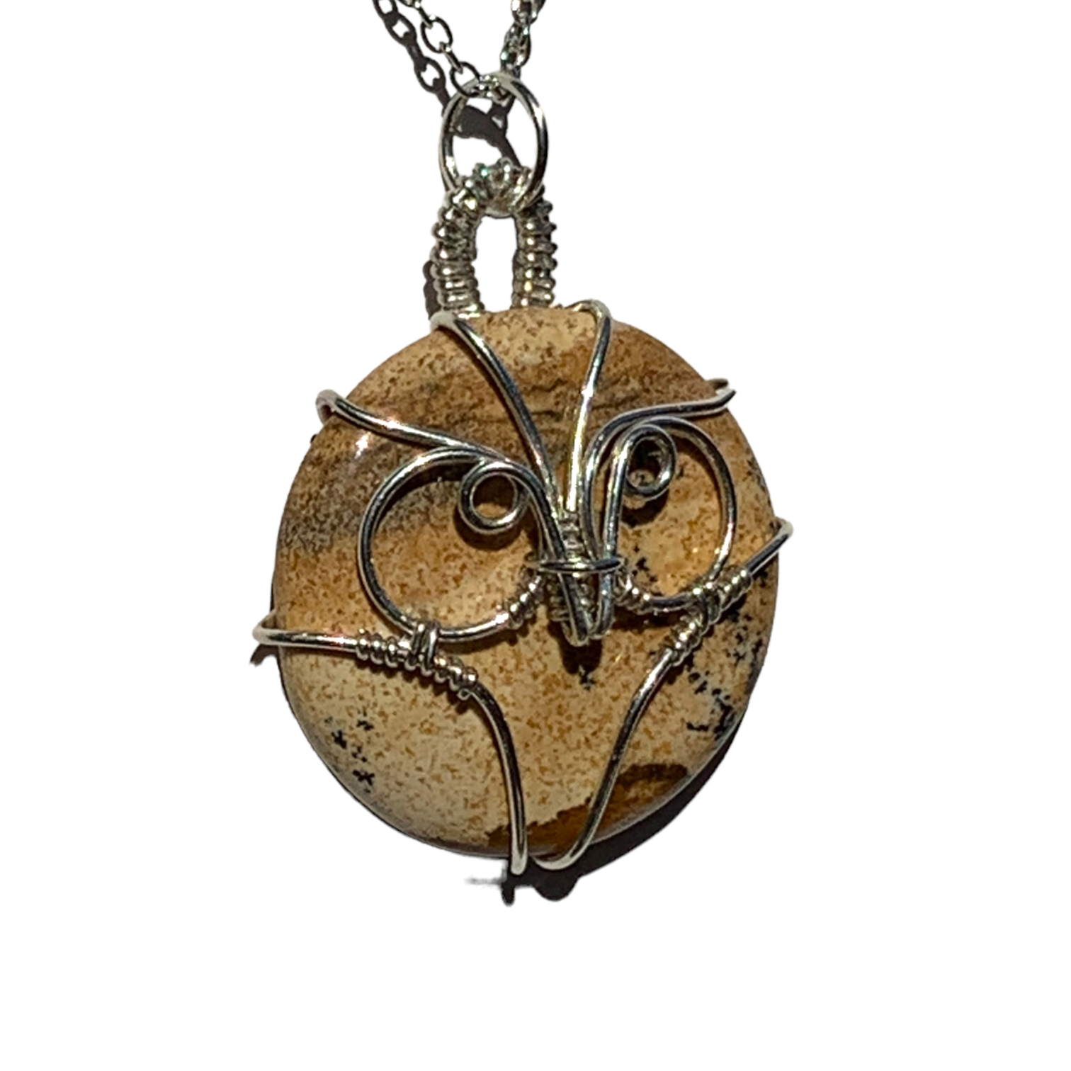 This Picture Jasper Crystal is wrapped in Sterling Silver or 14KT Gold Filled Wire to make it into a wearable piece of art! This beautiful stone matched with the silver or gold accent makes a great statement necklace! It has such a simplistic look to it, yet very elegant! You're bound to get many compliments with this one! Such a great gift idea for Mother's Day, Birthdays, Anniversaries, Weddings, Christmas or just something you pick up for yourself!! It is okay to treat yourself every now and again! Take home this one of a kind necklace wrapped by yours truly! It is unique just like the person who wears it!!