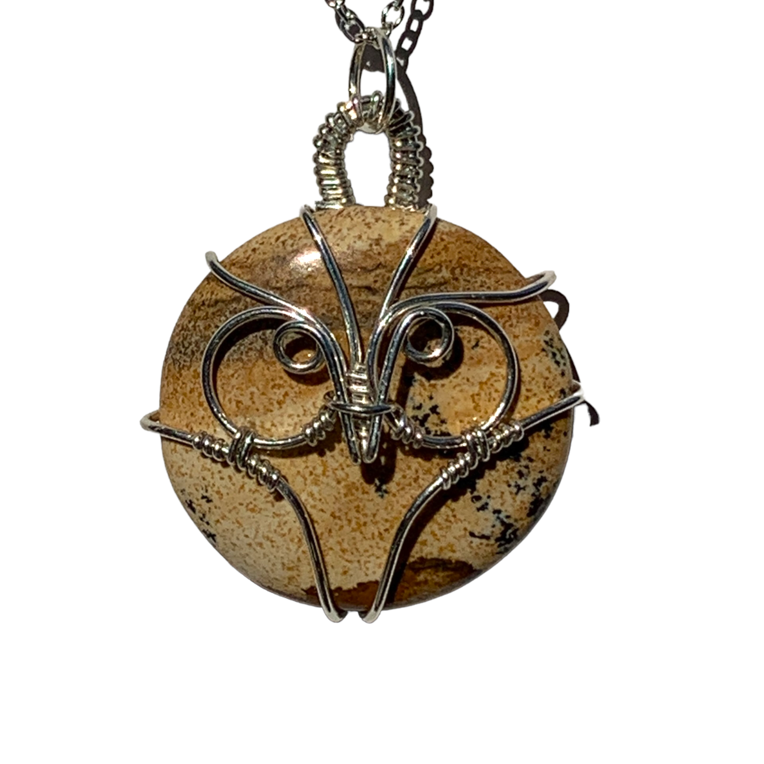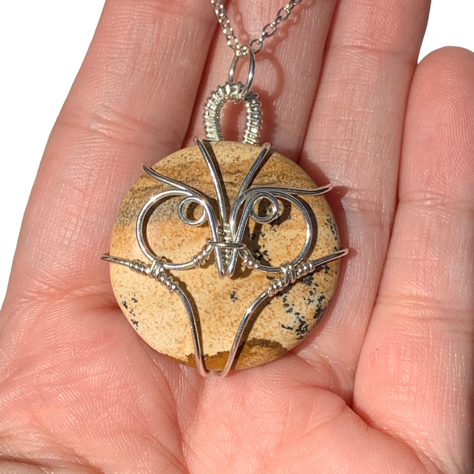 Sterling | 14KT Gold Filled Wire Wrapped Picture Jasper Owl Pendant
