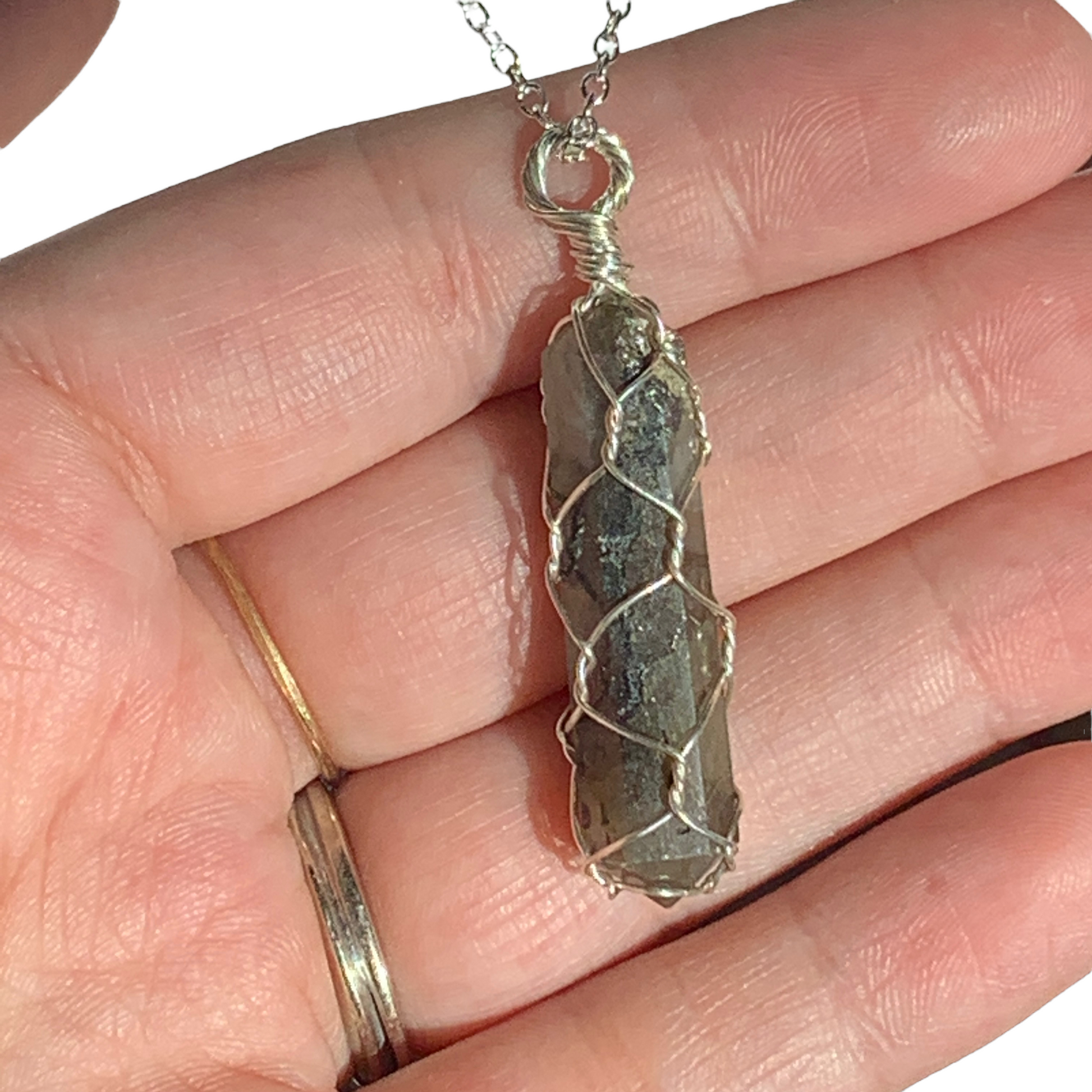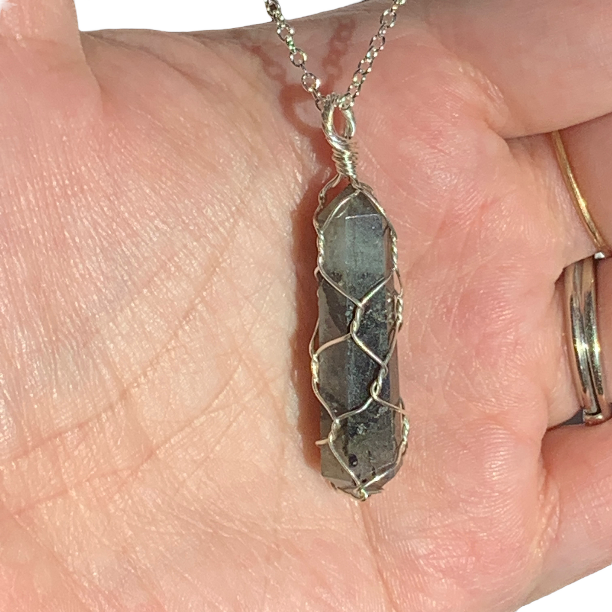 This Labradorite Crystal is wrapped in Sterling Silver or 14KT Gold Filled Wire to make it into a wearable piece of art! This beautiful stone matched with the silver or gold accent makes a great statement necklace! It has such a simplistic look to it, yet very elegant! You're bound to get many compliments with this one! Such a great gift idea for Mother's Day, Birthdays, Anniversaries, Weddings, Christmas or just something you pick up for yourself!! It is okay to treat yourself every now and again! Take home this one of a kind necklace wrapped by yours truly! It is unique just like the person who wears it!!