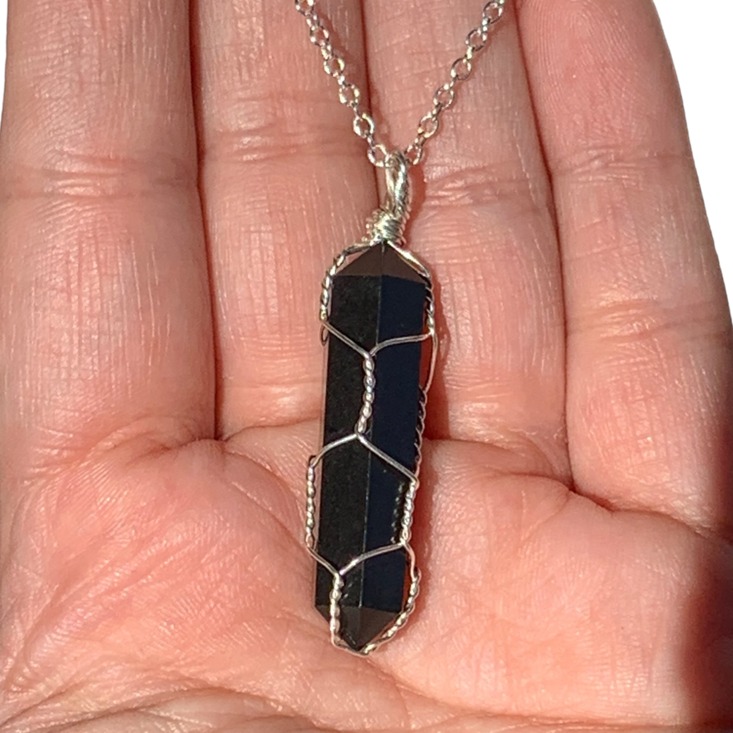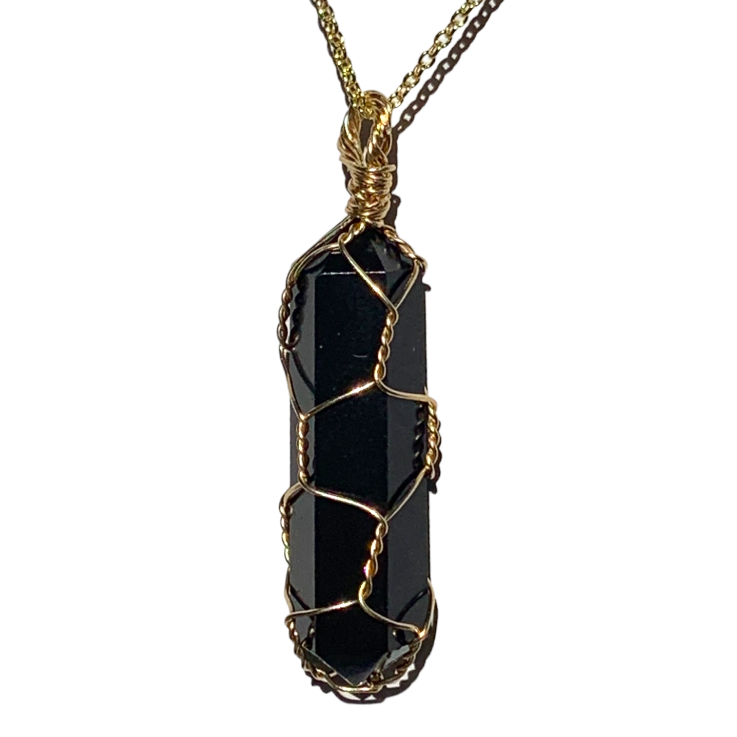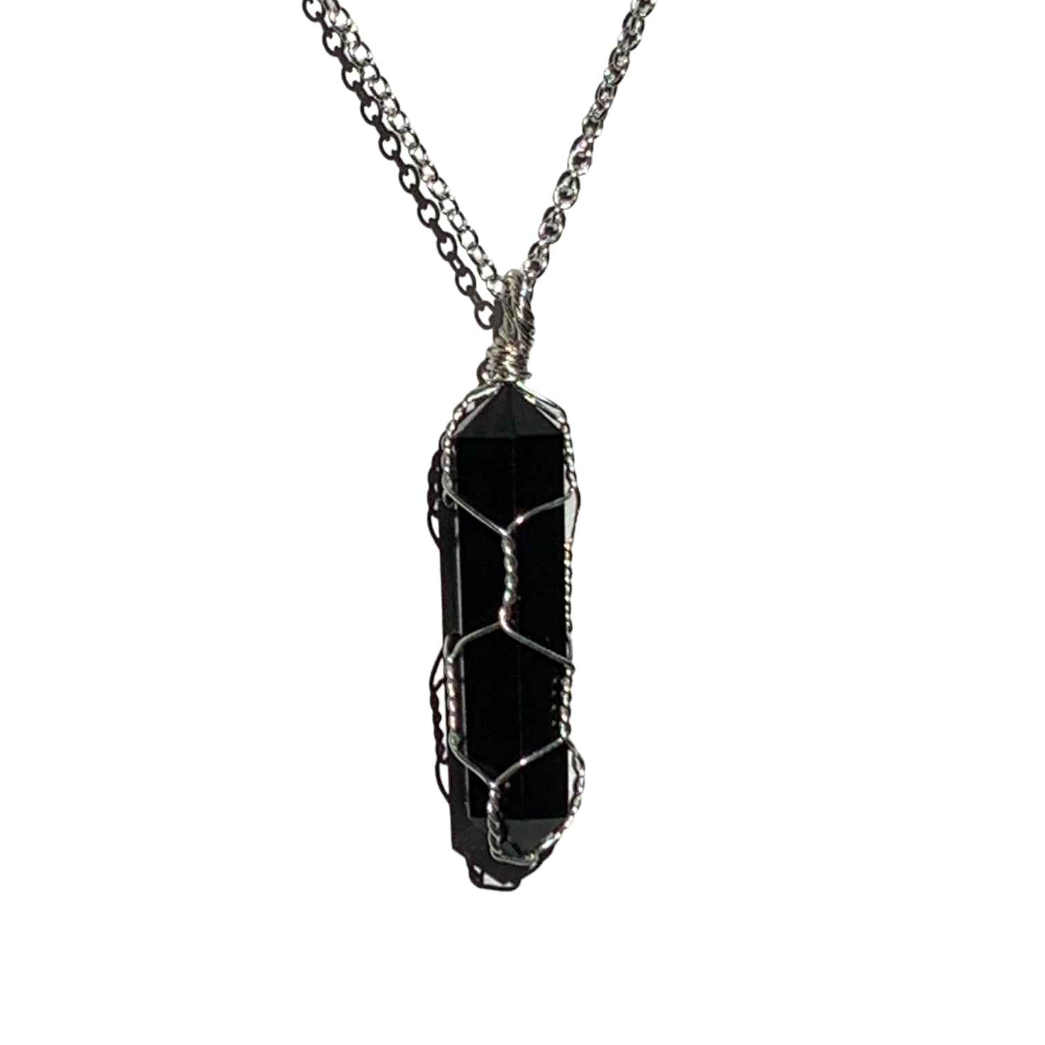 This Onyx Crystal is wrapped in Sterling Silver or 14KT gold filled wire to make it into a wearable piece of art! This beautiful stone matched with the silver or gold accent makes a great statement necklace! It has such a simplistic look to it, yet very elegant! You're bound to get many compliments with this one! Such a great gift idea for Mother's Day, Birthdays, Anniversaries, Weddings, Christmas or just something you pick up for yourself!! It is okay to treat yourself every now and again! Take home this one of a kind necklace wrapped by yours truly! It is unique just like the person who wears it!!