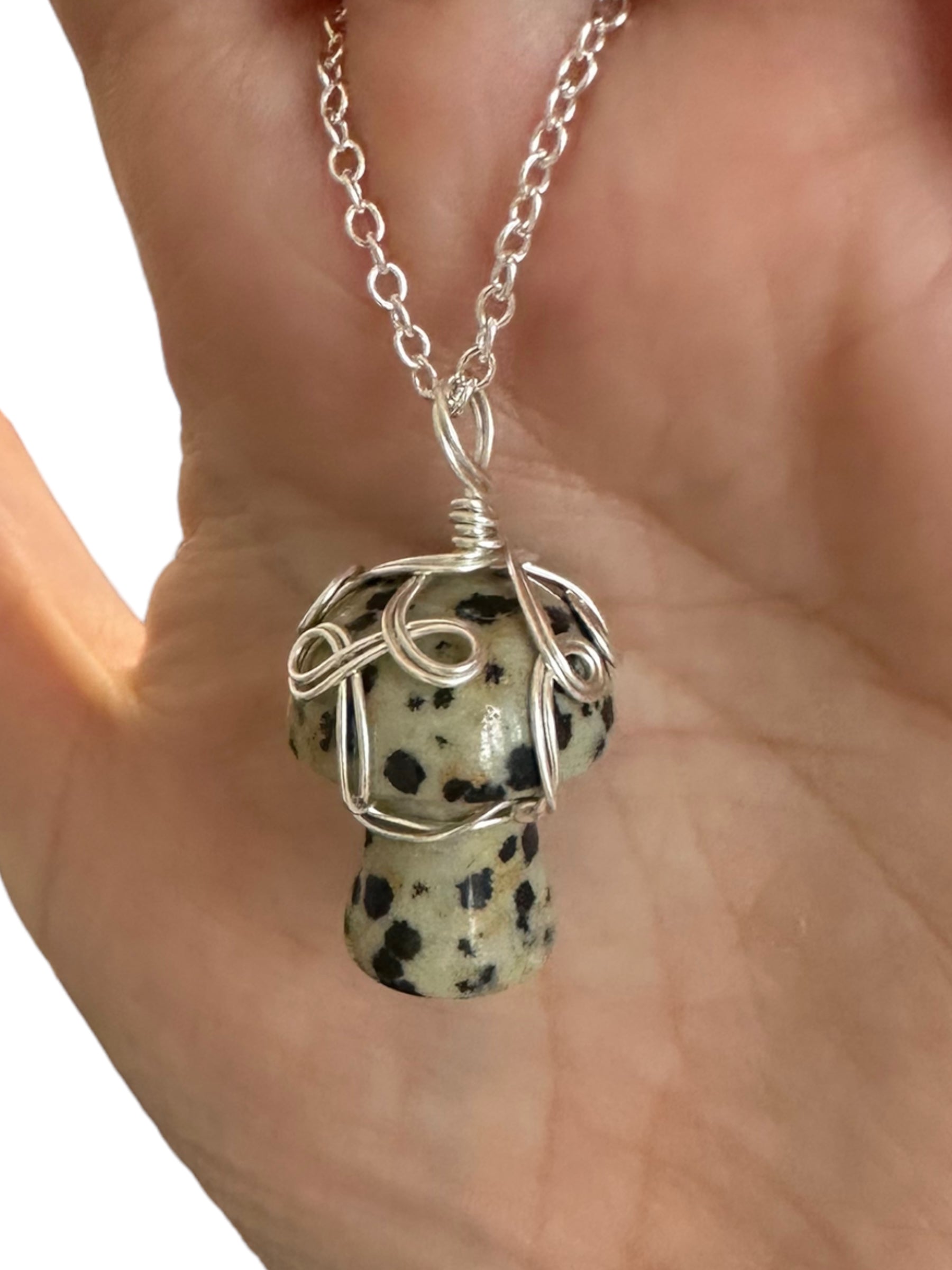 Sterling Silver | 14KT Gold Filled Dalmatian Jasper Wire Wrapped Mushroom Pendant