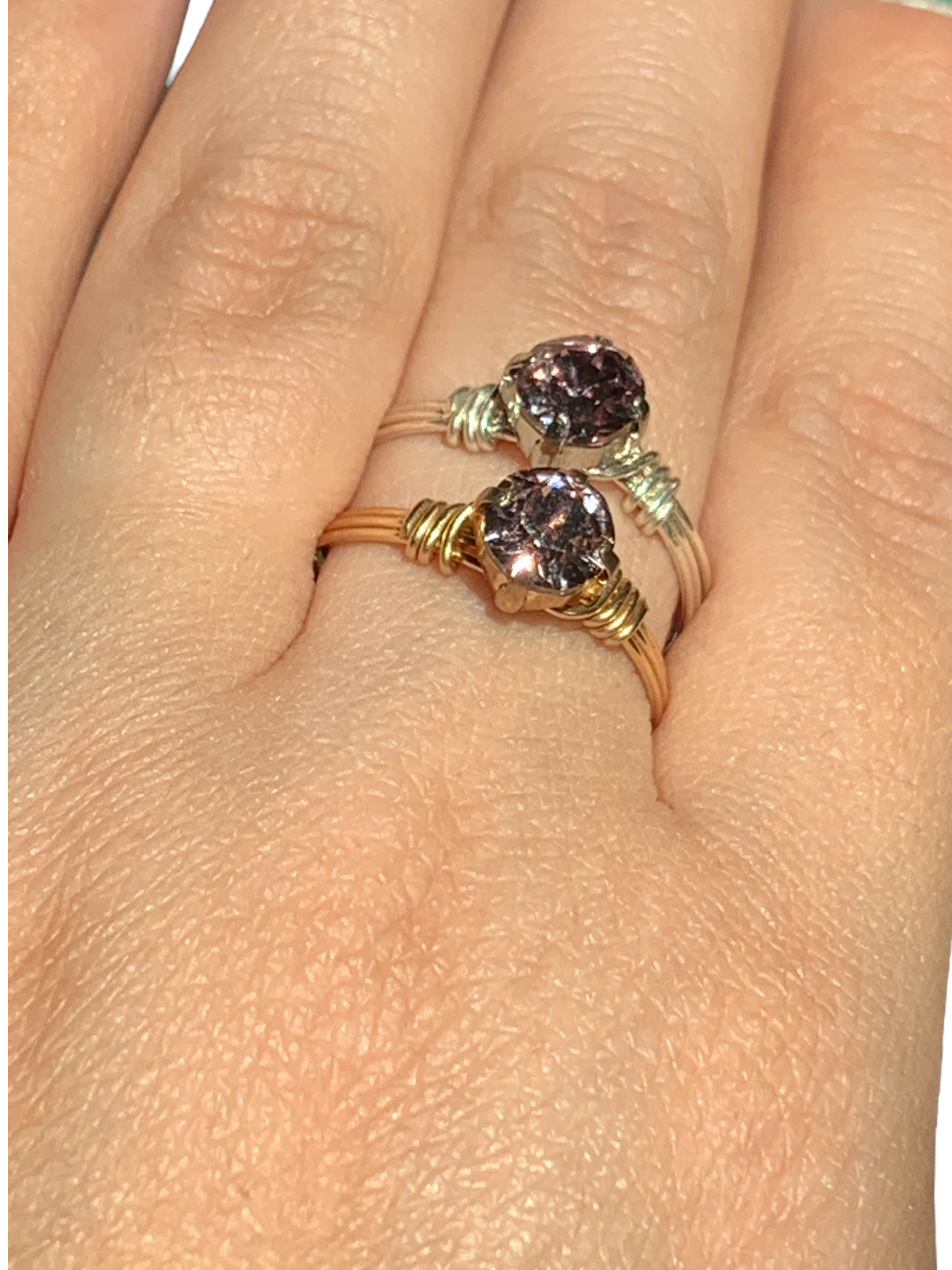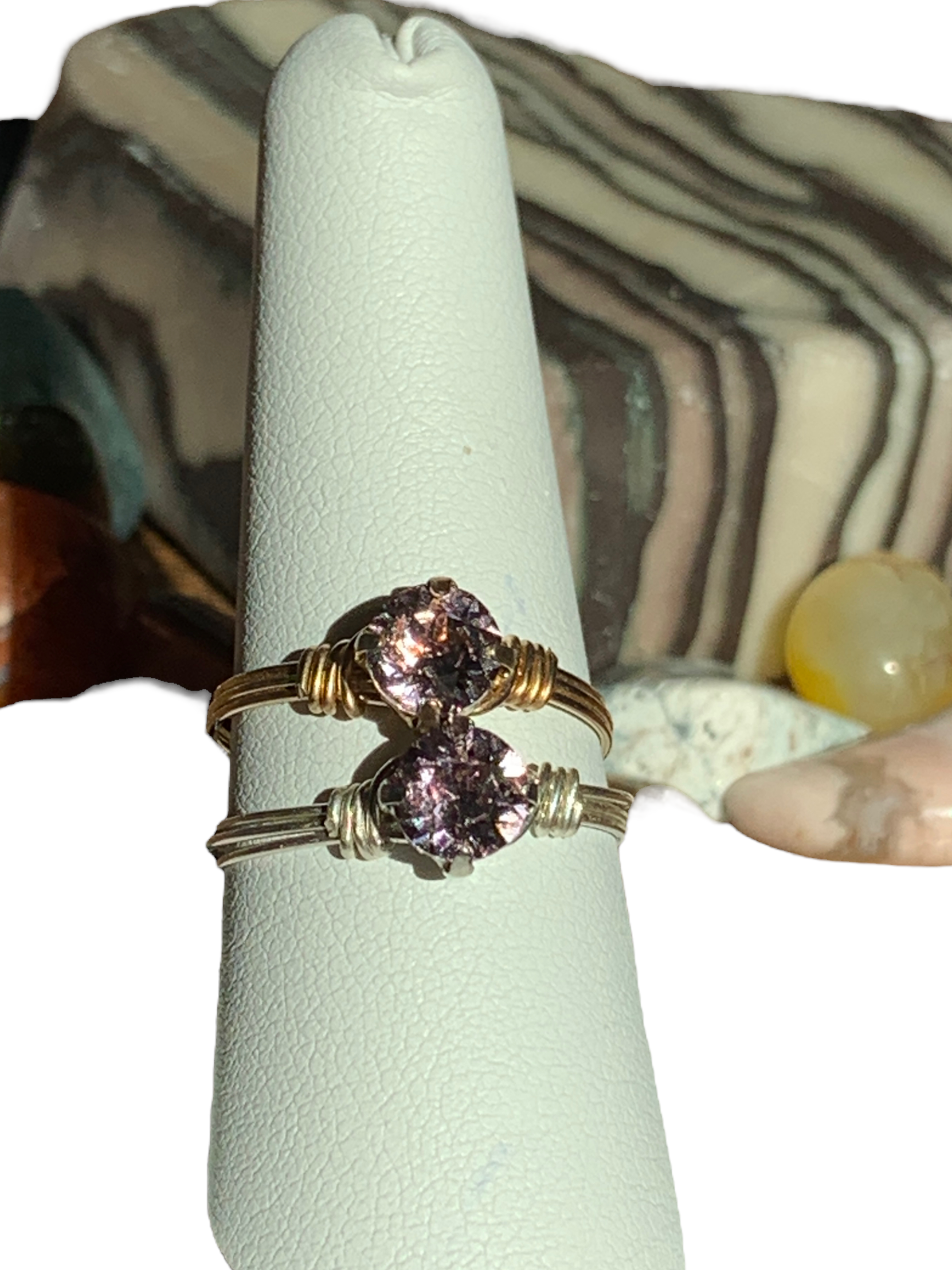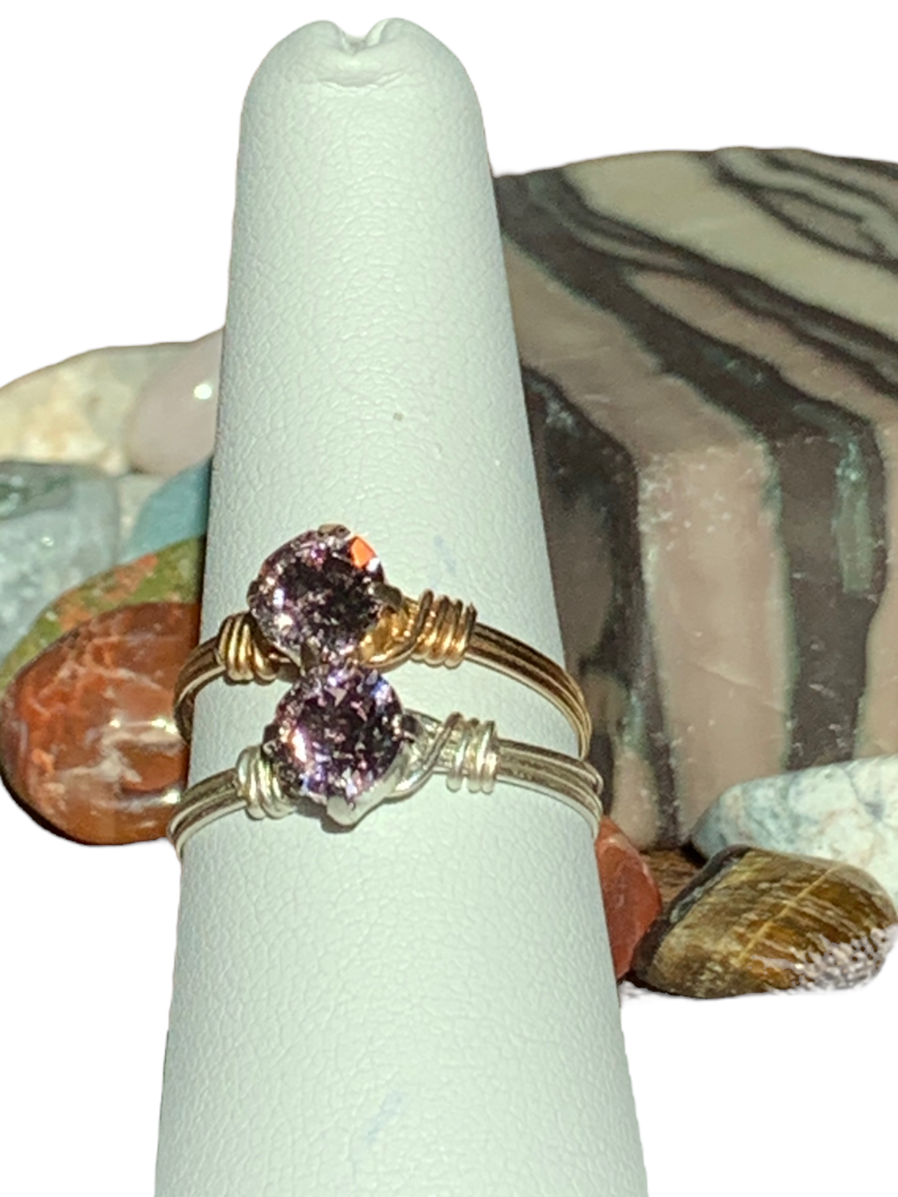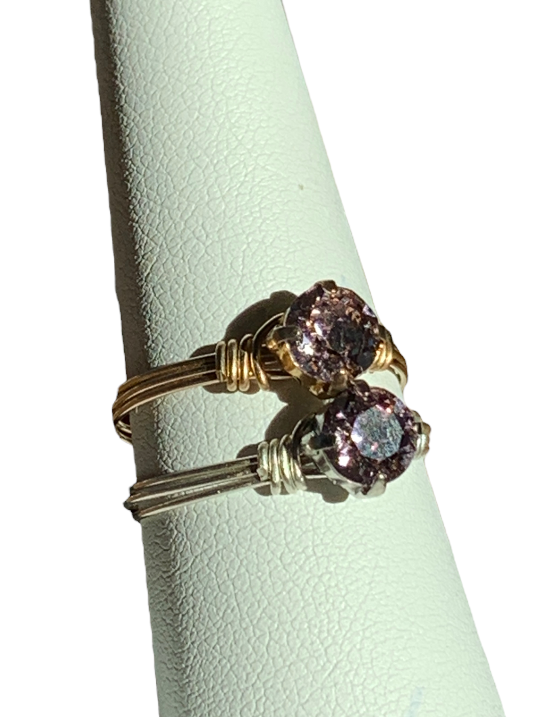 Unique hand wrapped sterling silver or 14KT gold crystal wire ring! This beautiful gemstone ring is sure to get a bunch of glances from all direction! It catches the light and it's absolutely stunning and you won't regret this purchase! Great for gift ideas, birthdays, Mother's Day, Christmas and many more occasions!