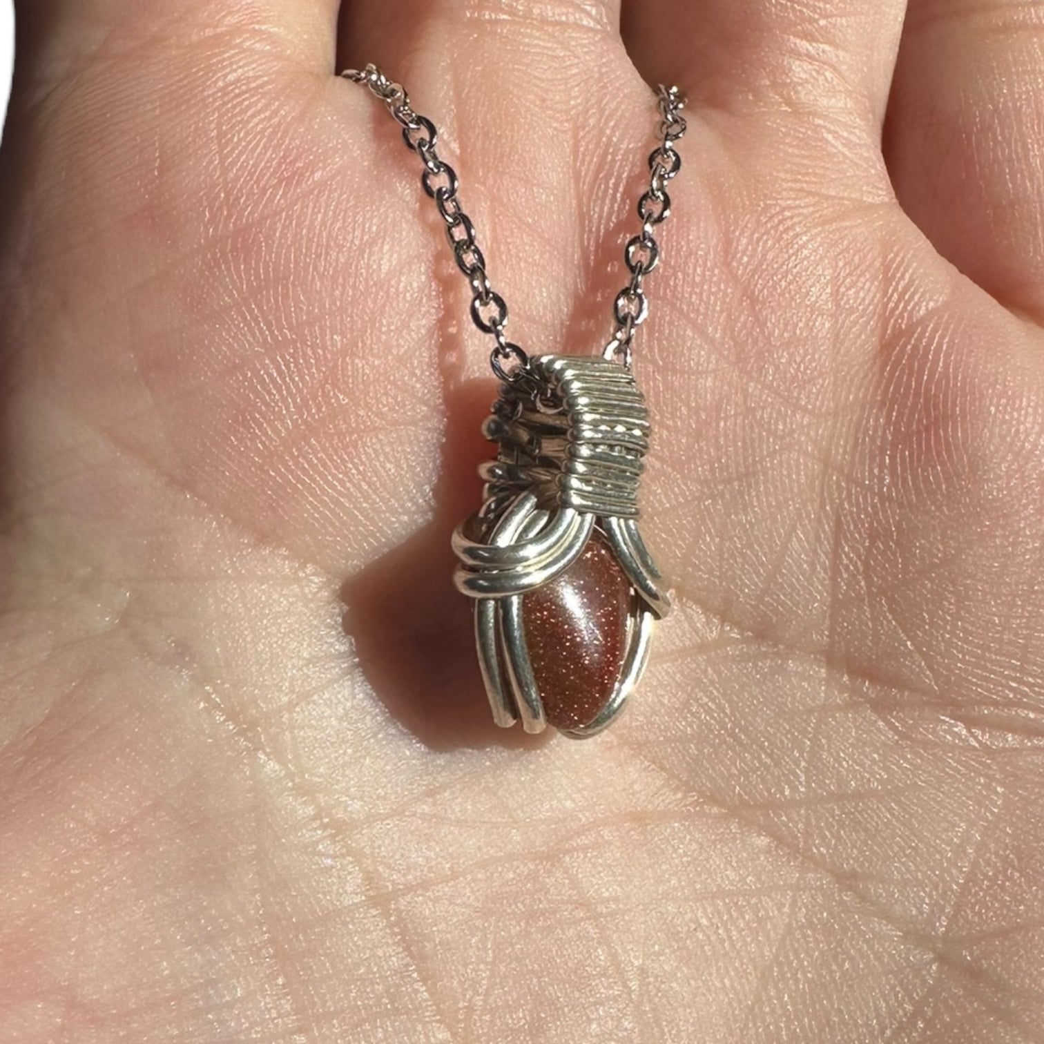Sterling Silver | 14KT Gold Filled Mini Teardrop Goldstone Wire Wrapped Wishbone 2.0 Pendant